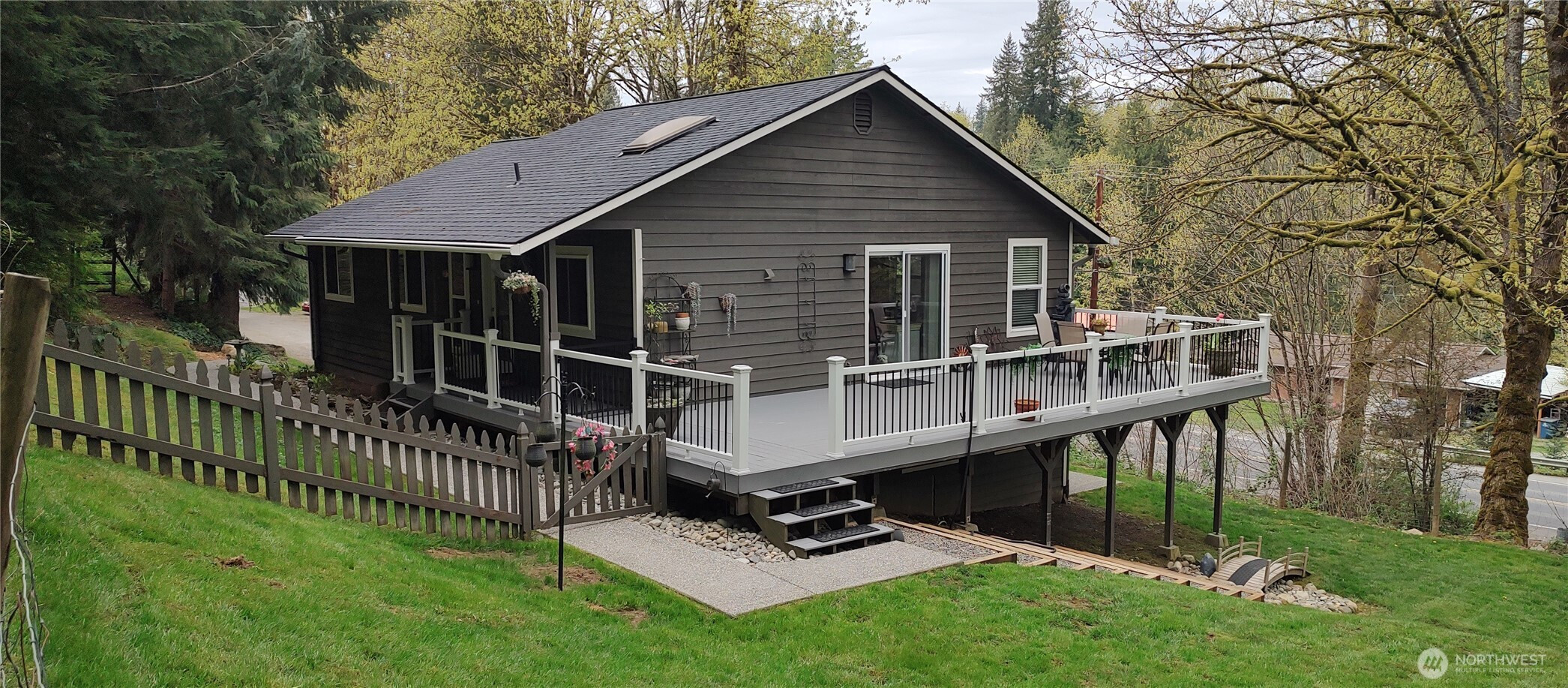 (503) 893-8874Discover this private, serene nature refuge on 2.35 acres with fully fenced backyard and partially fenced perimeter for kids and/or pets! This daylight rambler style home was recently painted inside and out, with a new roof, new water heater, and new septic pump. Interior is light & bright w/vaulted ceilings, skylight and custom blinds. Vinyl plank flooring, tile, and new Stainmaster carpeting. The kitchen has ample shaker cabinetry, quartz countertops, and SS appliances. Primary bedroom w/.75 bath and deck w/outdoor access to the patio below. The primary bathroom has a custom walk-in shower. Downstairs there is a large rec room w/half bath & utility/laundry room. New Leaf Guard gutters and aggregate concrete driveway and pathways, with covered RV parking and plenty of additional parking. Oversized 2-car garage and entertainment sized Trex deck! Situated above and bordering Woods Creek with beautiful territorial views. Sip your morning coffee while observing wildlife from your covered front porch. Only 7 minutes to town, 522 & SR2, for an easy commute.