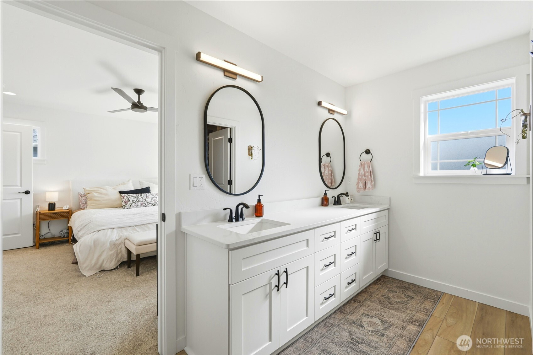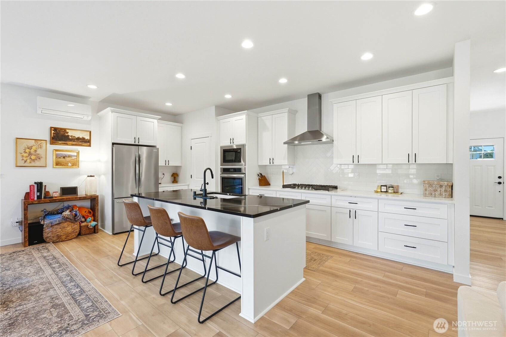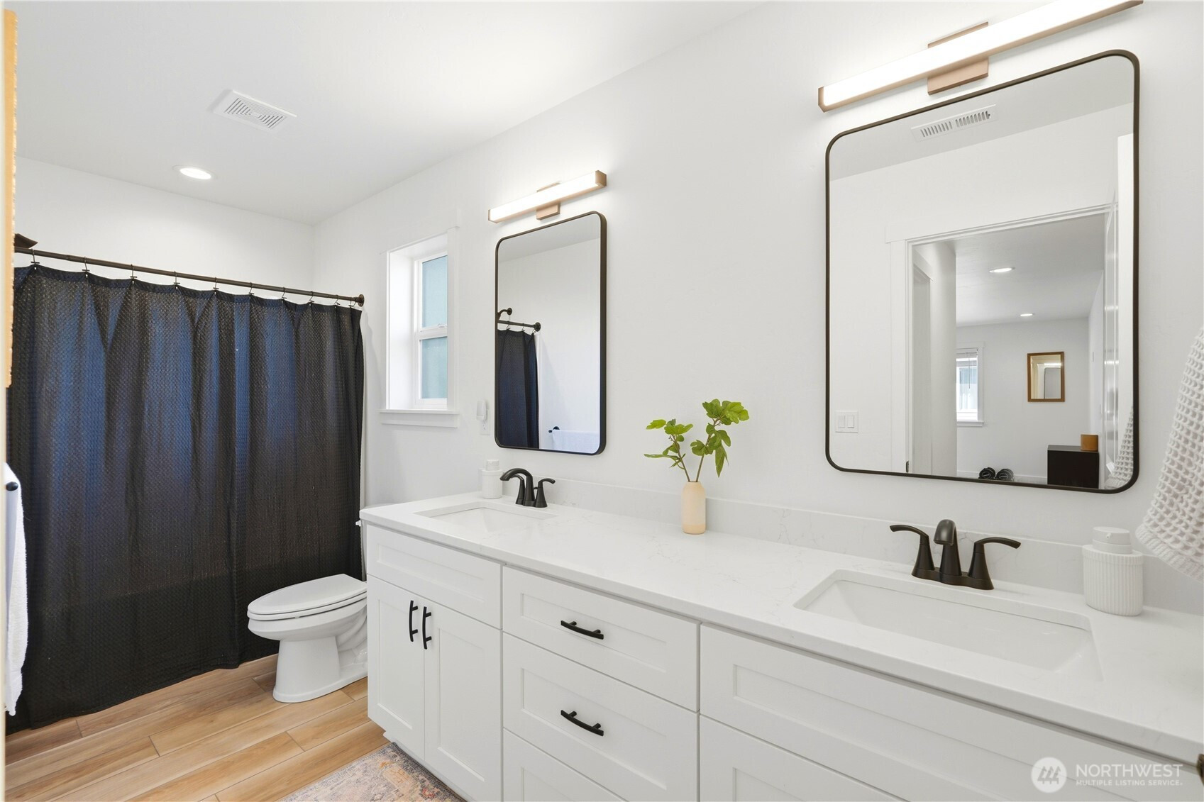 Designed for comfort and functionality, this meticulously maintained home offers a spacious primary suite featuring a walk-in shower, dual vanities, and a large closet. The thoughtfully designed layout includes a generous downstairs pantry and inviting coffee nook—perfect for everyday living. Owner-selected finishes bring a modern edge to the kitchen, complete with black quartz countertops, sleek black hardware, and stylish appliances. Enjoy the newly redone fireplace, adding warmth, character, and efficient heating, along with the added comfort of A/C. Situated on a desirable corner lot, the home also features installed shades on the back deck for enhanced privacy and sun coverage—ideal for relaxing or entertaining. Allergy-friendly pets only have occupied the home. Like-new and truly move-in ready, this home is ideally located in the inviting Tokatee neighborhood within the Lakewood School District. [Interest Rate Buy Down offered through preferred lender + Appraisal credit]