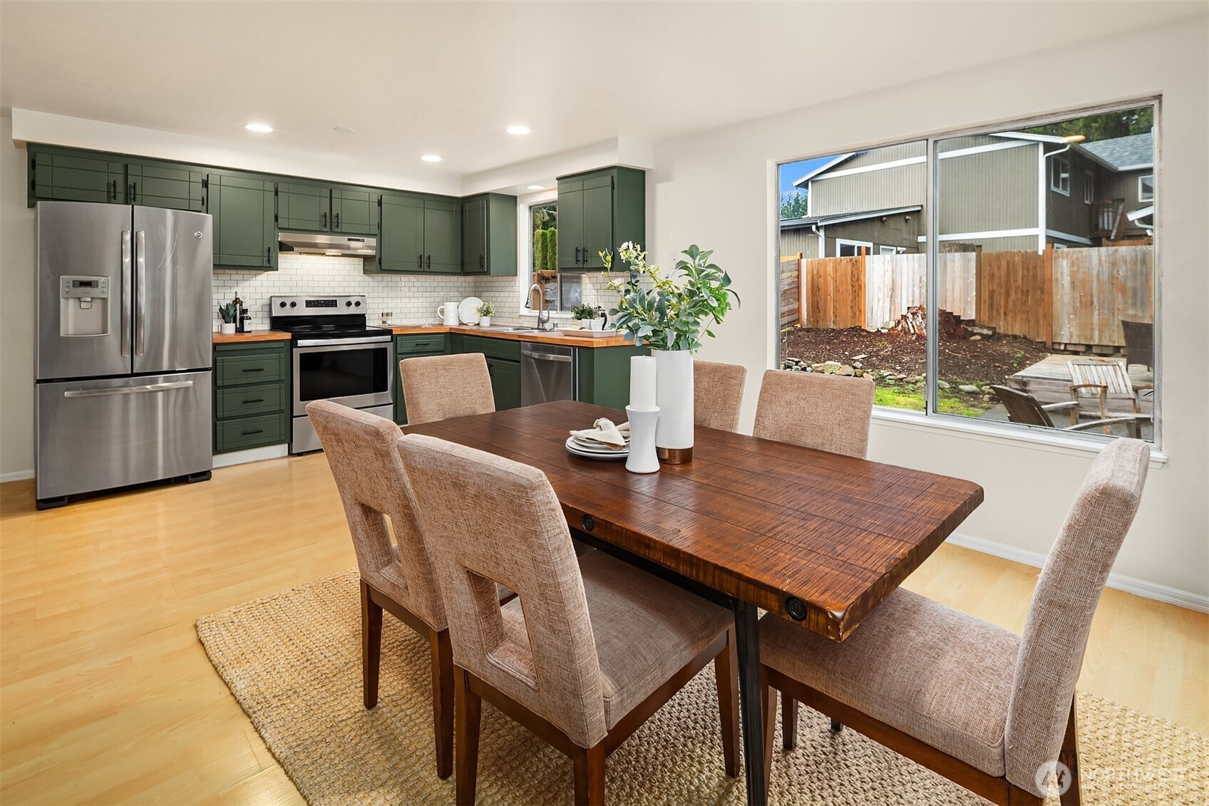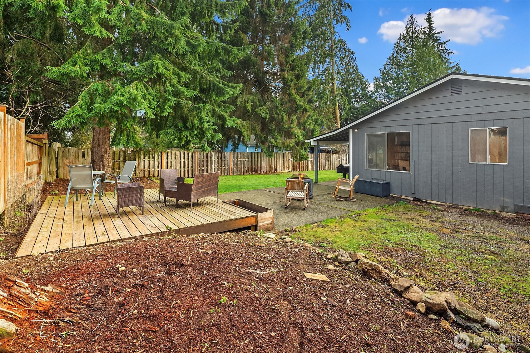 Situated on nearly a 1/4 acre lot, this 3-bedroom, 2-bathroom rambler provides space & functionality throughout. The large front yard welcomes you to the home towards a covered front entry where the living room w/wood stove flows seamlessly into the spacious kitchen, which offers ample storage & adjacent dining area. Sliding doors lead to a fully-fenced backyard w/generous outdoor space, room for garden beds, patio for entertaining, extra parking for a boat or RV, & 12ft barn door gates w/full pass through. The other side of the home boasts a bedroom wing including a primary w/ full en suite. Ideally located near several schools, downtown Lake Stevens, the Centennial Trail, & everyday amenities, this home offers both convenience & comfort.