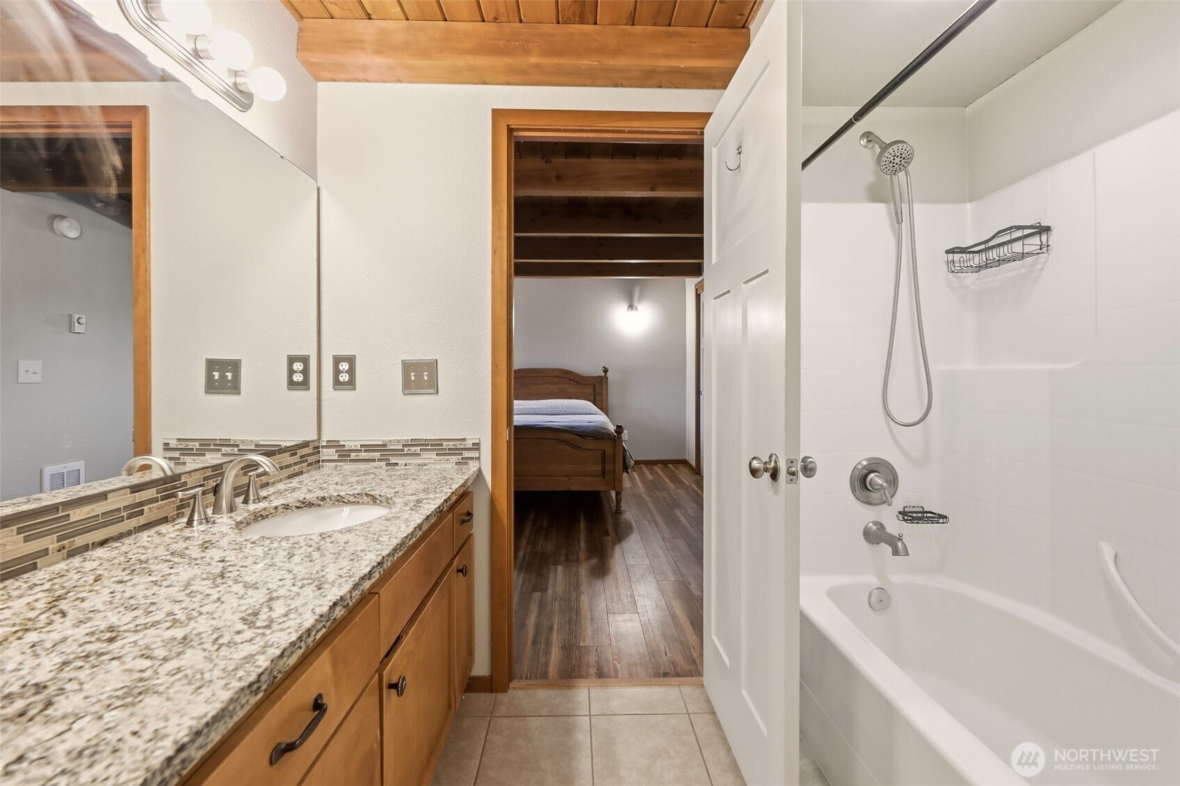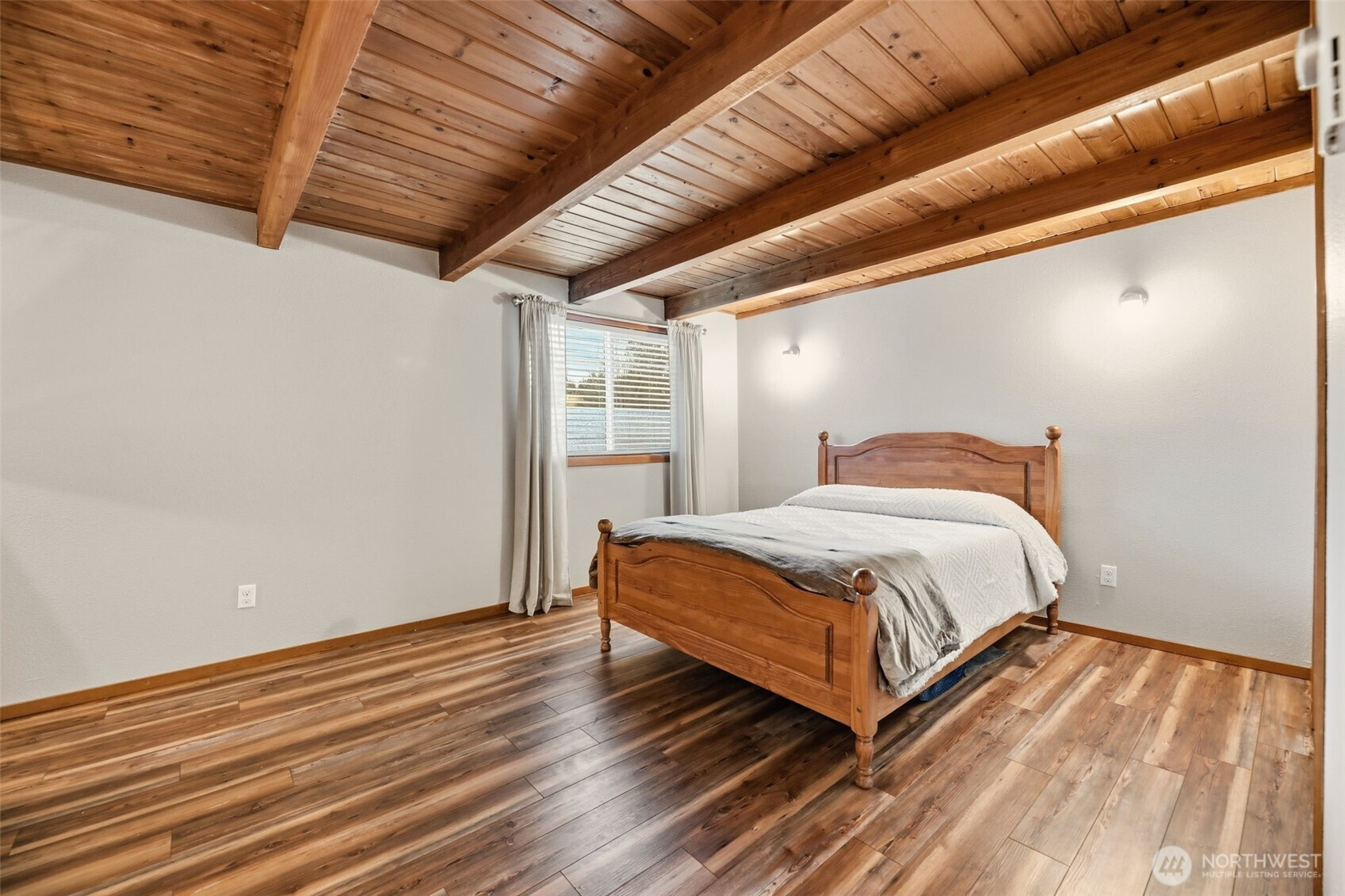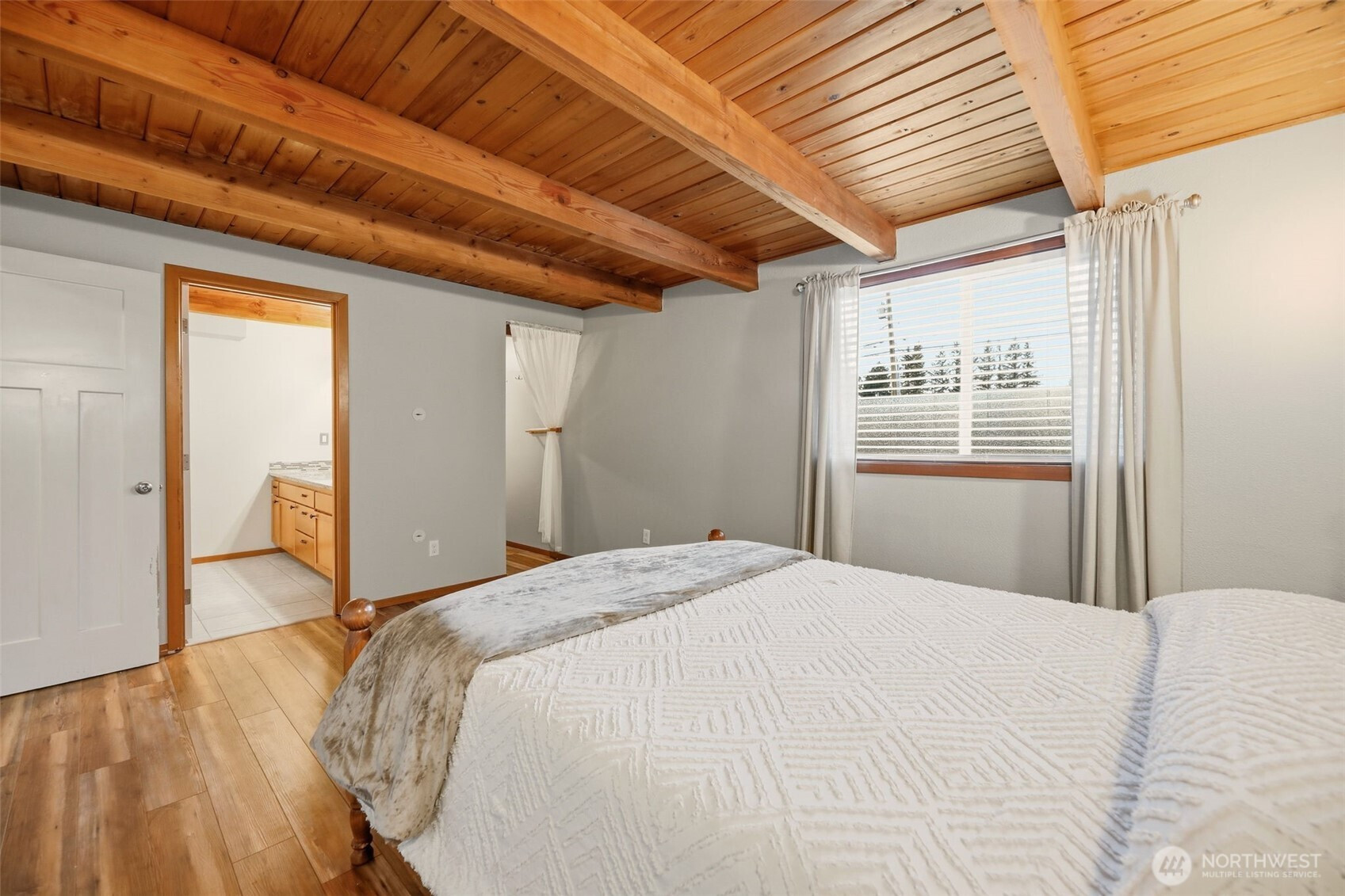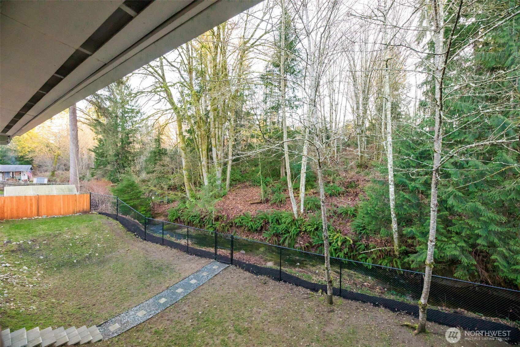 Tucked into a serene creekside setting, this beautifully updated Monroe home blends nature, privacy, and style. Vaulted ceilings, exposed beams, and abundant natural light define the open-concept great room, offering a warm mid-century modern feel with peaceful territorial and creek views. The updated kitchen features newer countertops and appliances and flows seamlessly into the main living space. The primary suite is on the main level with an ensuite bath and beam accents, while the upper-level loft provides flexible space with an attached bath. The lower level includes two additional rooms and a spacious second living area. Enjoy the sounds of the creek from multiple decks with a wrap-around porch feel, surrounded by mature trees and landscaping. A large, fenced yard, ample parking, and storage add convenience. Recent updates include a newer roof, fresh interior and exterior paint, and updated lighting and plumbing fixtures. Close to town yet feeling worlds away.