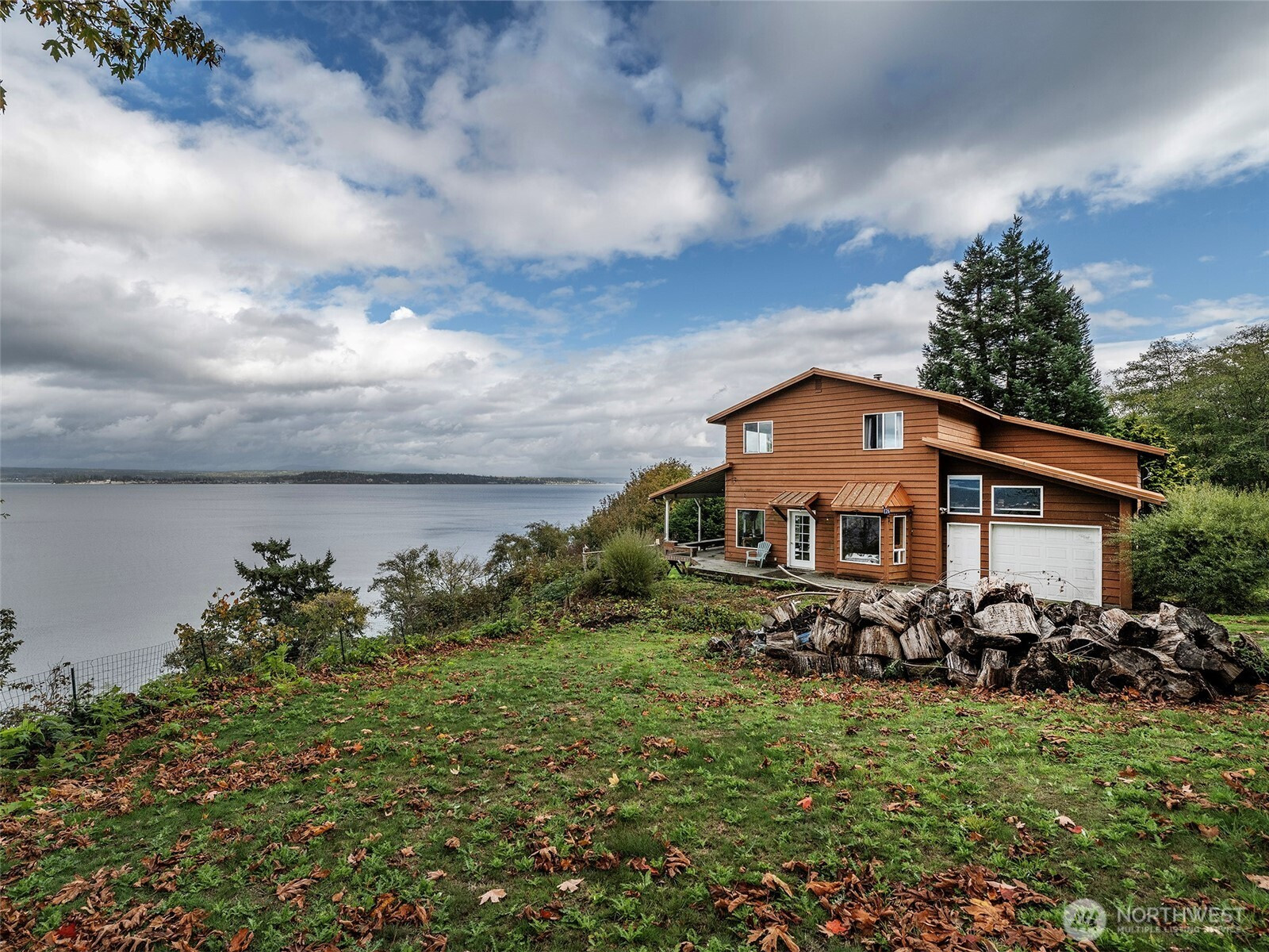 Escape to Hat Island in this 1,880 sq ft custom waterfront home with panoramic bay and Cascade views. Only 15 minutes from Everett by private ferry, this peaceful retreat offers 2 bedrooms, 2 bonus rooms, hardwood floors, and a wood-burning fireplace. Large windows, a spacious deck perfect for morning coffee or sunset dining, plus Hat Island’s amenities—golf course, marina, fishing pond, and trails—make this a rare find. Optional furnishings, boat, and car allow turnkey living, with two extra parcels available for expansion or investment. Experience privacy, comfort, and adventure just moments from Everett and Seattle