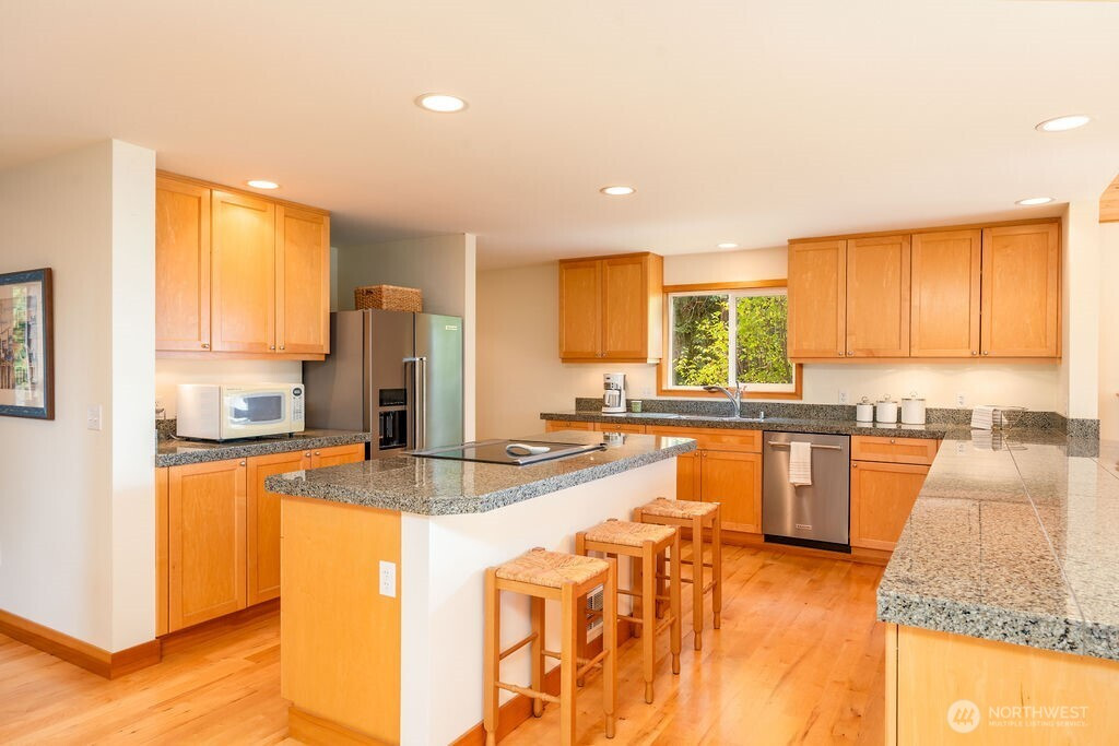 Discover your private retreat on tranquil Hat Island! This stunning south-facing bluff home offers breathtaking panoramic views of Puget Sound, Mt. Rainier, and endless sunsets. Nestled on a quiet lot, this beautifully maintained property combines island charm with modern comfort. Expansive windows flood the open-concept living space with natural light, while the spacious deck is perfect for entertaining or peaceful relaxation. The large kitchen boasts an island, bar, and new appliances. Enjoy exclusive island amenities including private beaches, a marina, golf course, and 6 day per week private ferry. Whether you're seeking a full-time residence or a weekend or summer getaway, this serene, private bluff home is a rare opportunity.
