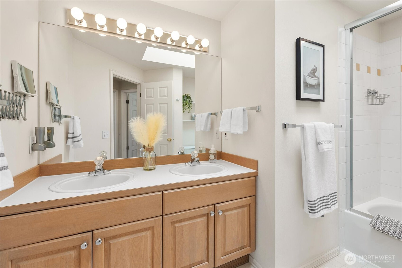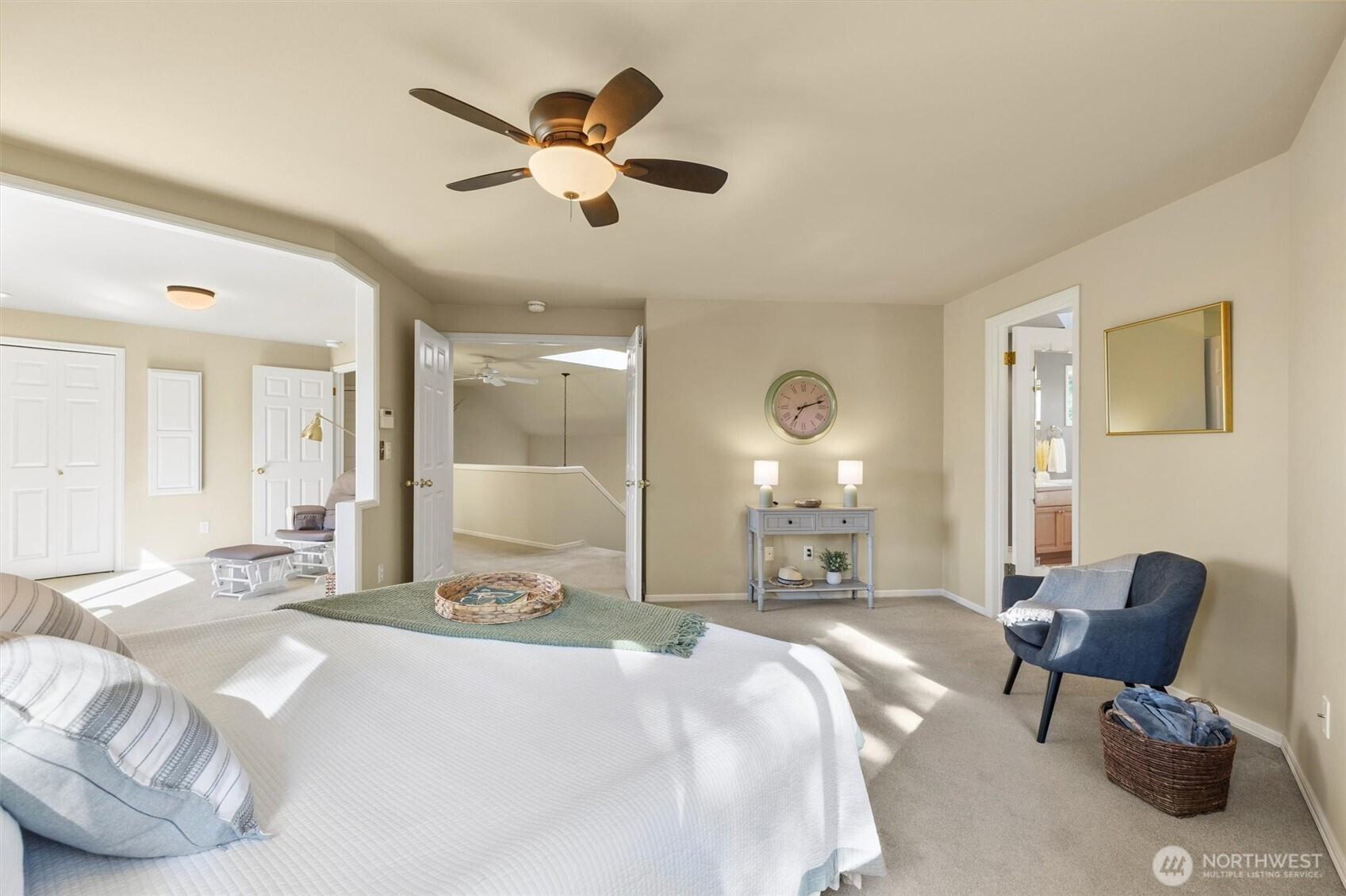Nestled in the sought-after Stratton Hill neighborhood, this stunning two-story residence offers the perfect blend of luxury, comfort, & convenience. Tucked away on a quiet cul-de-sac, the home enjoys a prime location just minutes from Boeing & the picturesque Mukilteo waterfront. Step inside to soaring ceilings & an abundance of natural light that creates an inviting & elegant atmosphere. The main level features a formal living room & dining room, ideal for both everyday living & entertaining. The spacious kitchen is a chef’s dream, boasting expansive counter space, exquisite slab granite countertops, a beautiful tile backsplash, SS appliances, & stylish pendant lighting over the breakfast bar. The kitchen seamlessly flows into the cozy family room, complete with a gas fireplace & direct access to the fully fenced backyard. Stay cool with A/C too! Designed for versatility, the home includes four generously sized bedrooms. Large main floor bedroom makes a great office too. Upstairs, the luxurious primary suite offers a private retreat with an ensuite bath & walk-in closet, accompanied by two additional bedrooms & a full bathroom. Step outside to your own private oasis—a sprawling backyard that backs to a greenbelt. Perfect for entertaining, featuring a spacious deck, built-in BBQ, hot tub & sprinkler system. Located in the award-winning Mukilteo School District, this exceptional home also includes a one-year home warranty & has been preinspected, offering peace of mind.
