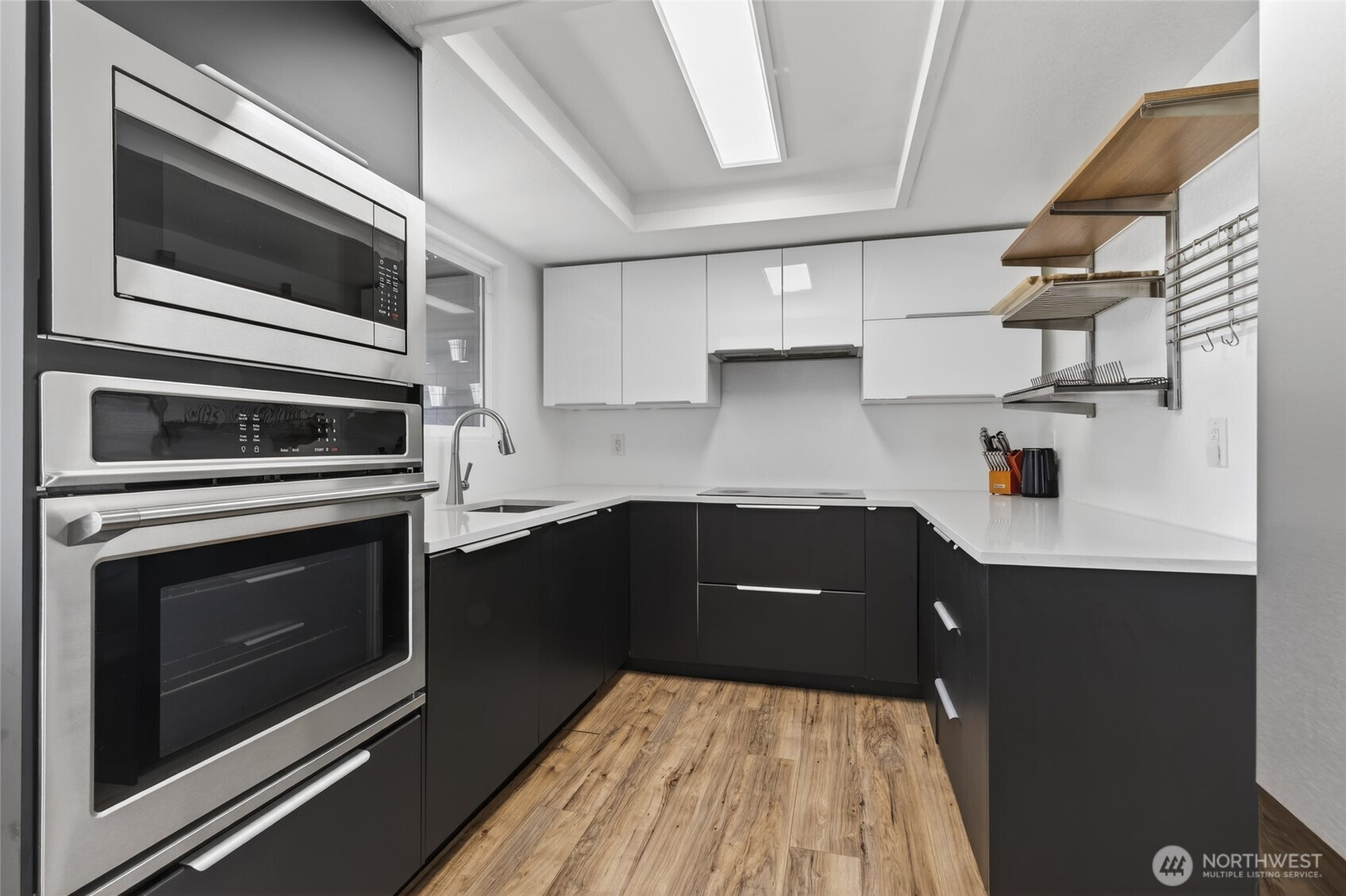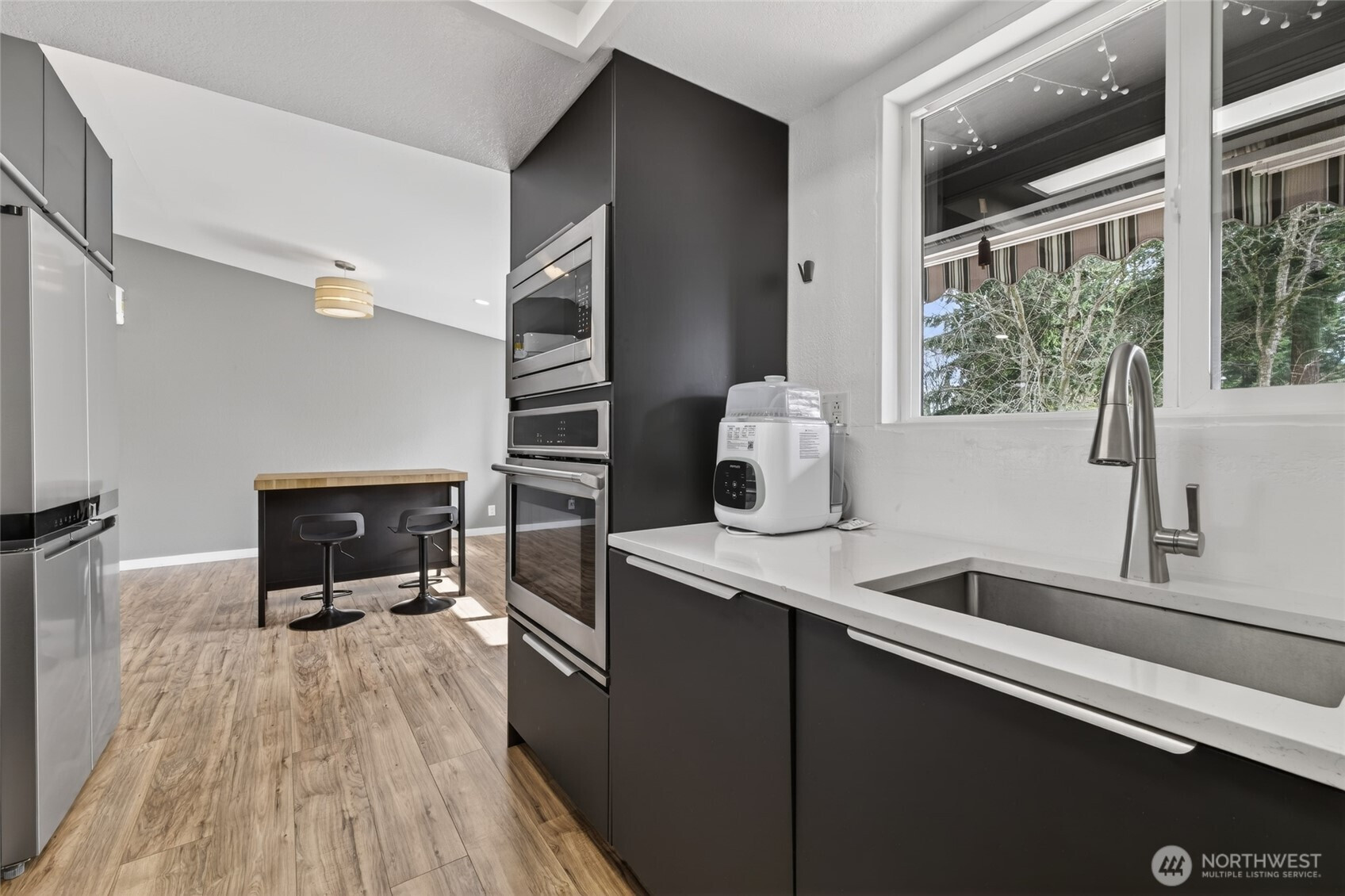 Welcome to this beautifully maintained, move-in ready split-entry home nestled in one of Bothell's most desirable neighborhoods! The bright upper level welcomes you with a spacious living room featuring a brand-new remote-controlled fireplace, fresh interior paint, new carpet, and smart Philips Hue recessed lighting to set the perfect ambiance. Large windows fill the home with natural light, creating a warm and airy feel throughout. The well-appointed kitchen boasts built-in appliances including an oven, microwave, cooktop & dishwasher — everything you need from day one. Step outside to a fully fenced backyard with a deck and retractable awning, perfect for relaxing or entertaining year-round. The 2-car garage features an EV charger, and the home is equipped with a Ring doorbell and security camera system for added peace of mind. Fresh landscaping enhances the curb appeal and makes a great first impression. Whether you're hosting guests or enjoying a quiet evening, this home delivers comfort, functionality, and modern smart home features throughout. Conveniently located minutes from top-rated schools, parks, shopping, dining, and public transit. This Bothell gem truly has it all!