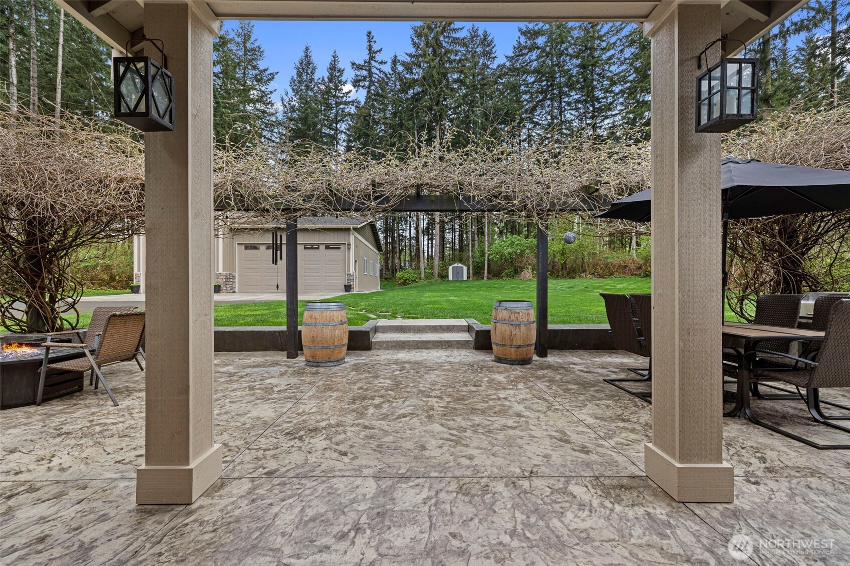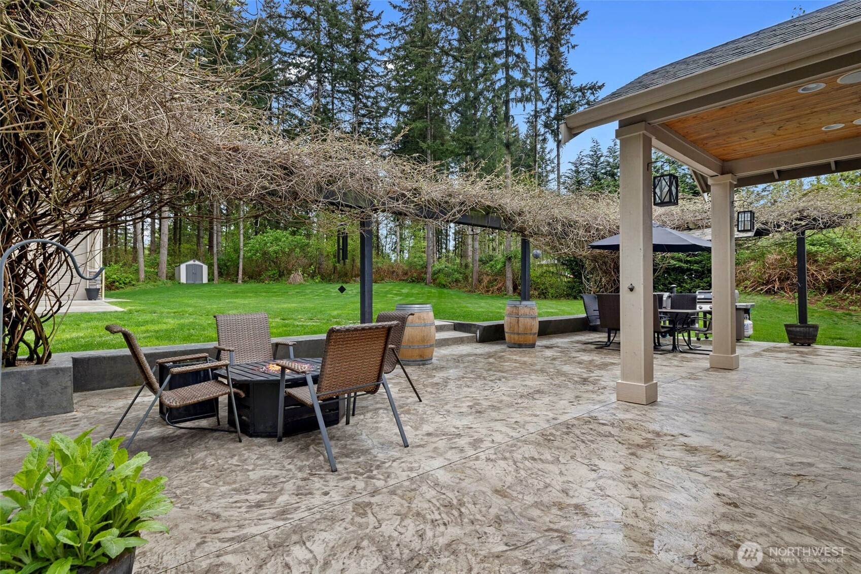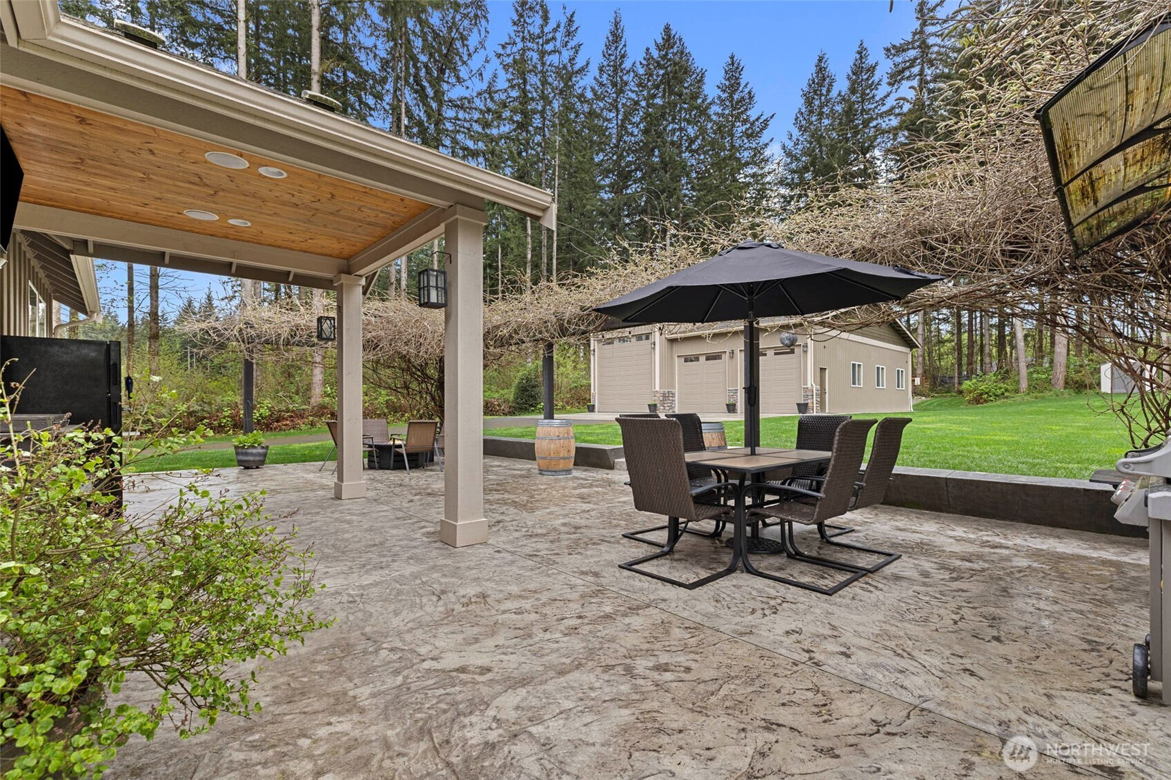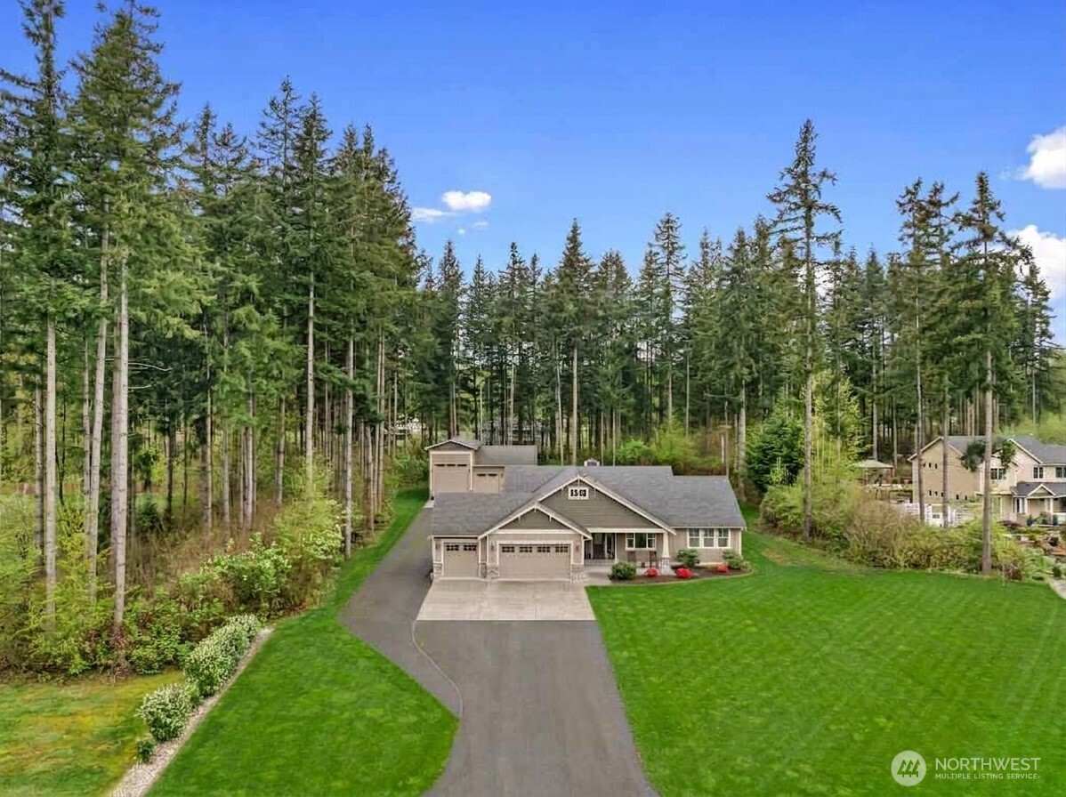 Rare opportunity in the gated Hyland Park community! This beautifully maintained rambler is a masterclass in curb appeal and functionality. The sprawling grounds feature a lush perfectly maintained yard, fruit trees, and a custom stamped patio with a wisteria-draped trellis. Car enthusiasts and travelers will love the huge shop with an RV bay and 6 total covered parking spaces. Don't miss the 3 car garage attached! Equipped for peace of mind with a generator-ready setup and SMART wired, this home is as smart as it is beautiful. The large and open kitchen is the perfect space for entertaining! New premium carpet throughout. Surround sound inside and out! Custom holiday lights for house and shop. Sprinkler system installed in front and back yard. Covered hot tub stays! Behind the shop is a cozy retreat with a fire pit. Just minutes to shopping, dining, and I-5 access.