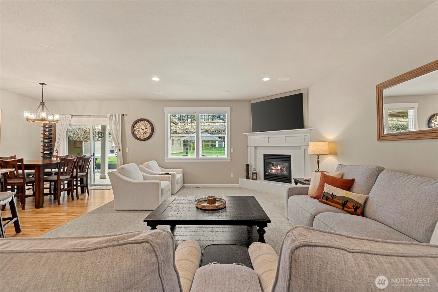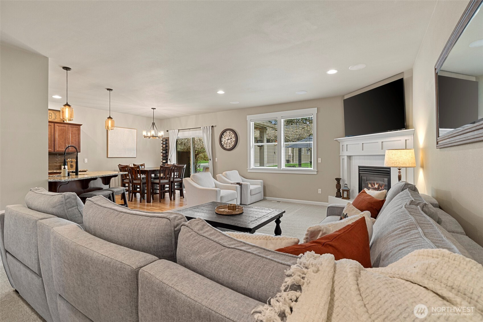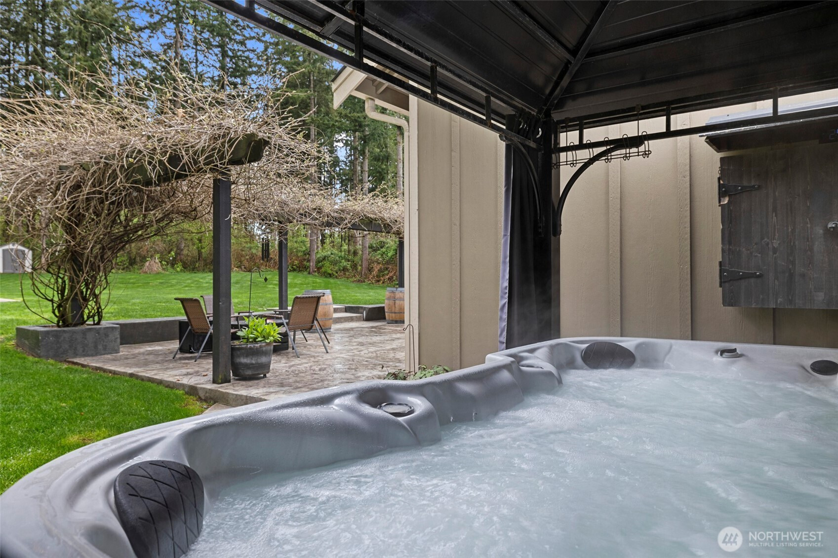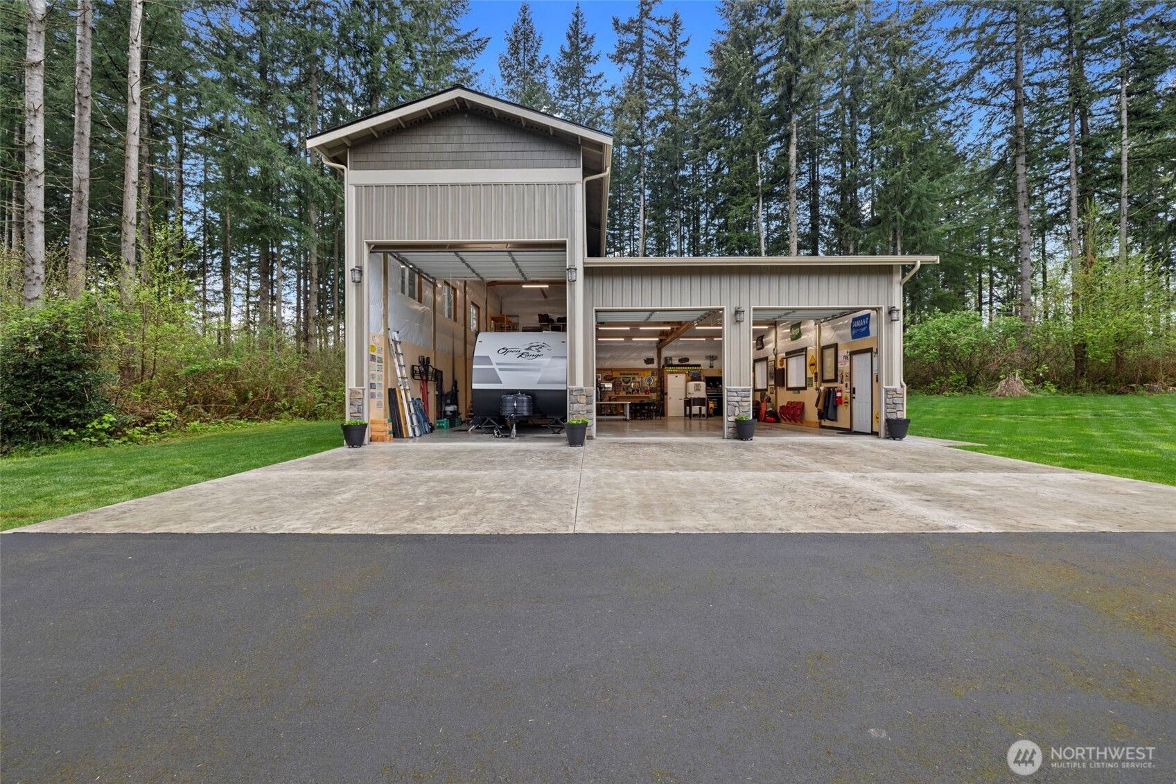 Rare opportunity in the gated Hyland Park community! This beautifully maintained rambler is a masterclass in curb appeal and functionality. The sprawling grounds feature a lush perfectly maintained yard, fruit trees, and a custom stamped patio with a wisteria-draped trellis. Car enthusiasts and travelers will love the huge shop with an RV bay and 6 total covered parking spaces. Don't miss the 3 car garage attached! Equipped for peace of mind with a generator-ready setup and SMART wired, this home is as smart as it is beautiful. The large and open kitchen is the perfect space for entertaining! New premium carpet throughout. Surround sound inside and out! Custom holiday lights for house and shop. Sprinkler system installed in front and back yard. Covered hot tub stays! Behind the shop is a cozy retreat with a fire pit. Just minutes to shopping, dining, and I-5 access.