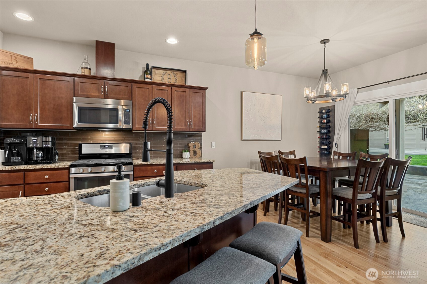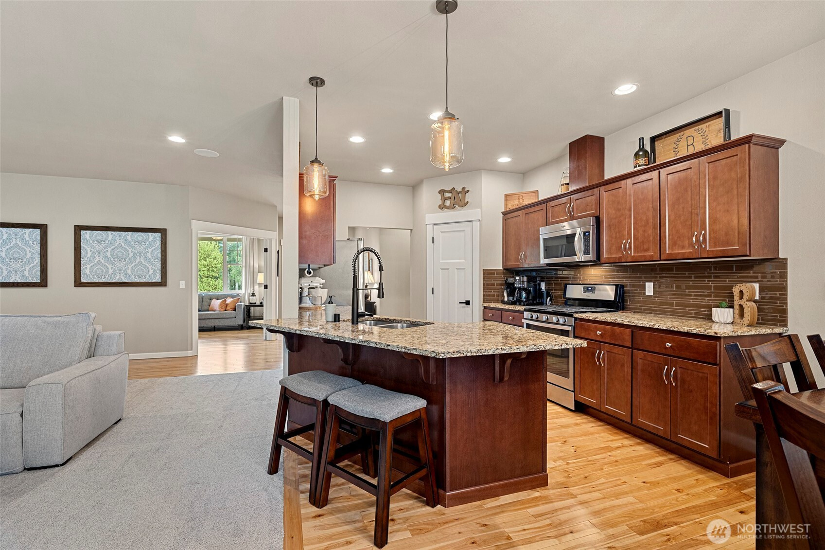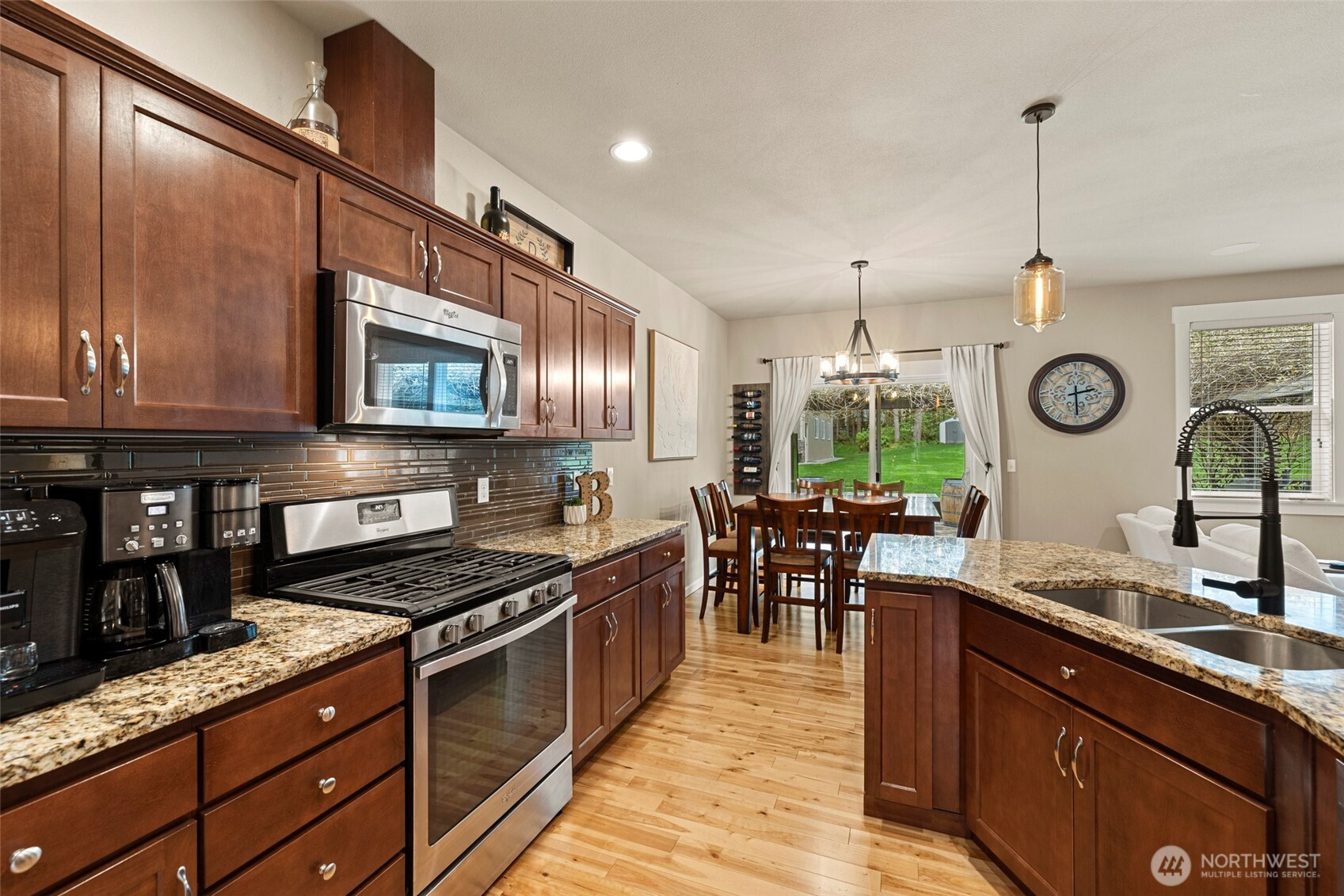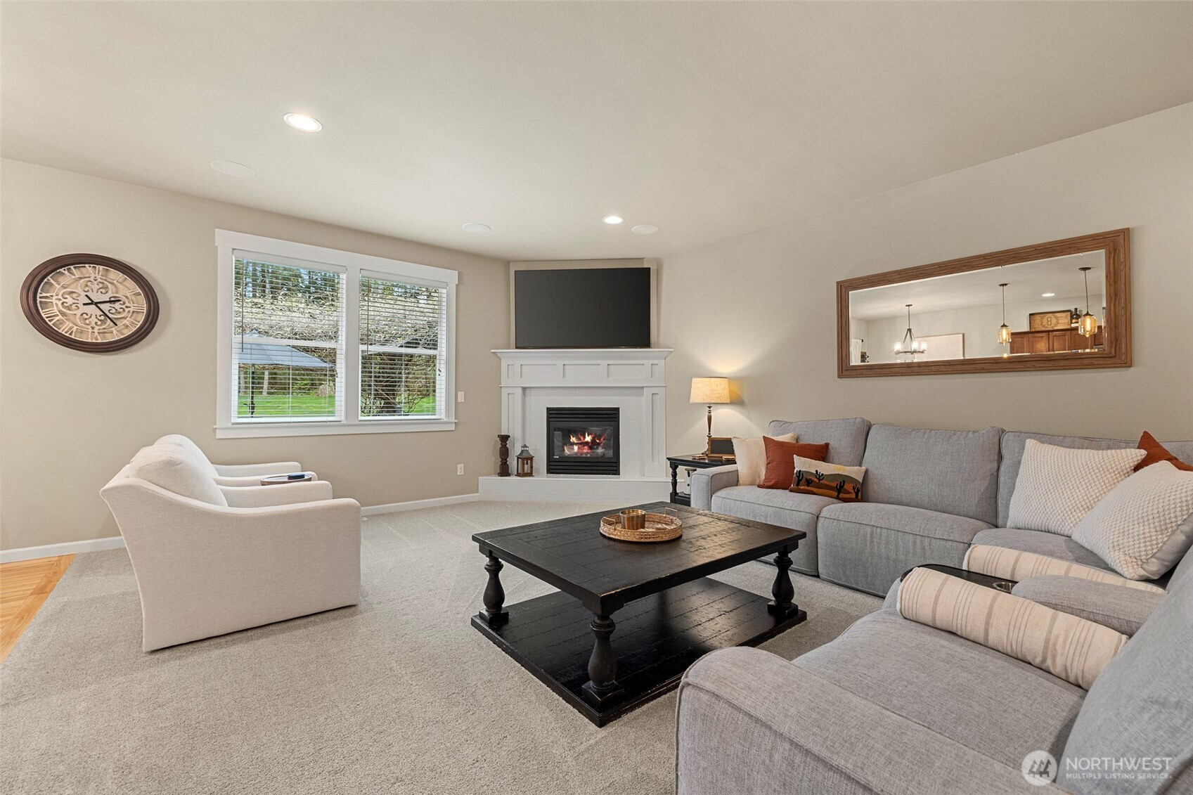 Rare opportunity in the gated Hyland Park community! This beautifully maintained rambler is a masterclass in curb appeal and functionality. The sprawling grounds feature a lush perfectly maintained yard, fruit trees, and a custom stamped patio with a wisteria-draped trellis. Car enthusiasts and travelers will love the huge shop with an RV bay and 6 total covered parking spaces. Don't miss the 3 car garage attached! Equipped for peace of mind with a generator-ready setup and SMART wired, this home is as smart as it is beautiful. The large and open kitchen is the perfect space for entertaining! New premium carpet throughout. Surround sound inside and out! Custom holiday lights for house and shop. Sprinkler system installed in front and back yard. Covered hot tub stays! Behind the shop is a cozy retreat with a fire pit. Just minutes to shopping, dining, and I-5 access.
