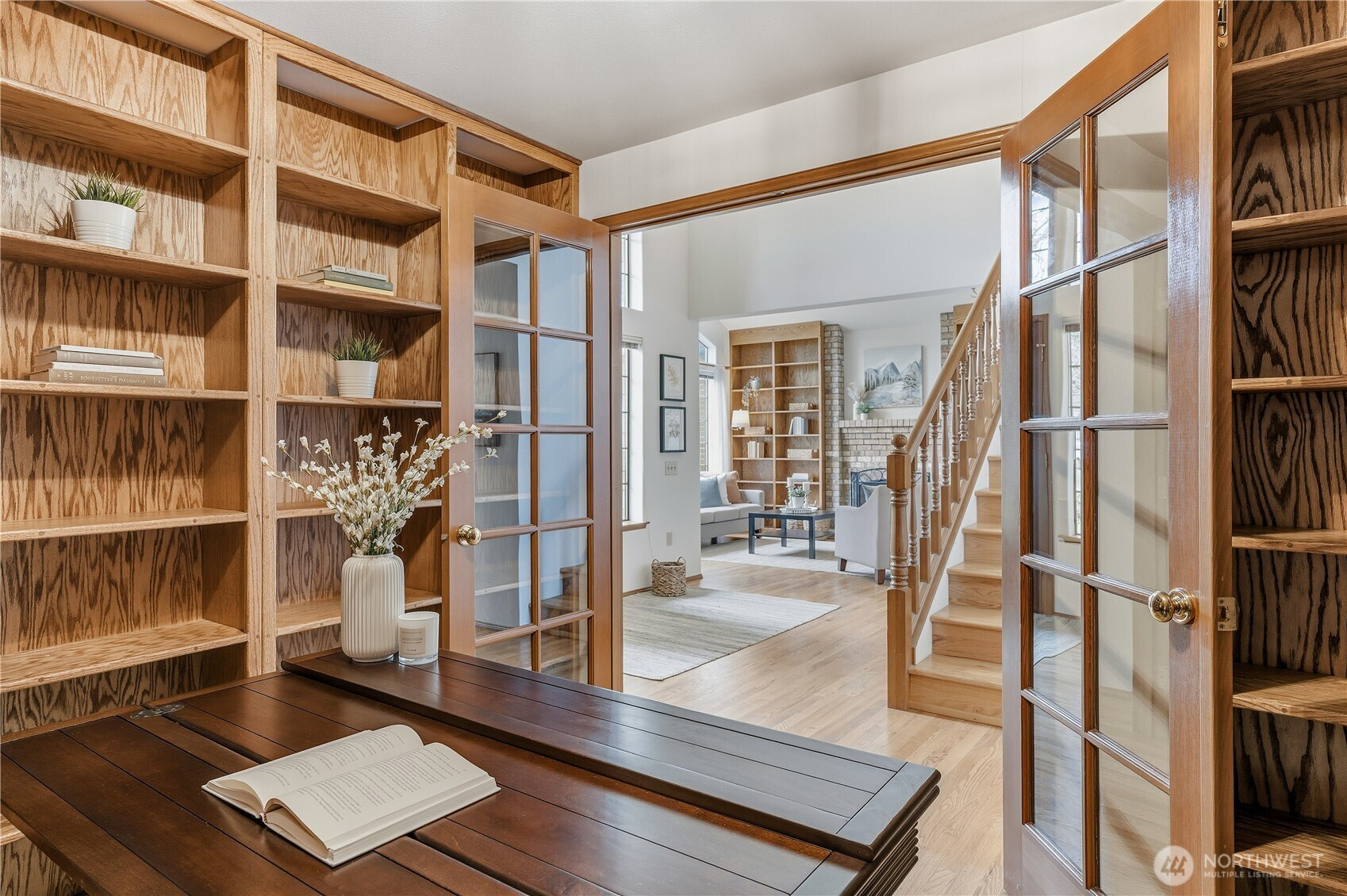 Tucked at the end of a quiet cul-de-sac in Brier, this one-owner home presents an exceptional opportunity to reimagine a solidly built property in a sought-after neighborhood. A soaring, light-filled entry opens to cathedral ceilings, hardwood floors, and a cozy fireplace in the formal living room. Circular flow supports both everyday living and easy entertaining. Four bedrooms and two baths upstairs, along with a main-floor office and formal dining room, offer flexibility. Vaulted ceilings, rounded corners, hardwoods on both levels, built-in wood shelving, and underground utilities reflect quality craftsmanship throughout. Upstairs, the primary suite provides a spacious retreat with a walk-in closet, soaking tub, and generous double vanity. Outside, an expansive deck overlooks a private yard ready for gardening, play, or future improvements. A three-car garage with adjacent laundry and mud room adds convenience. Located in the Northshore School District between I-5 and I-405 for easy access to Seattle, the Eastside, and Everett. Pre-inspection and sewer scope available through Buyer’s Agent. Bring your vision, build equity, and unlock this home’s full potential.