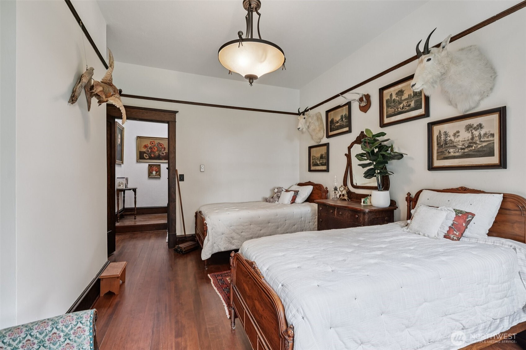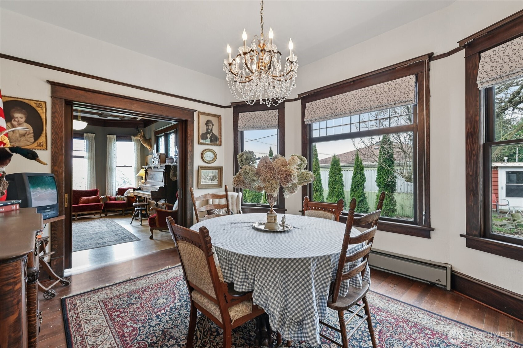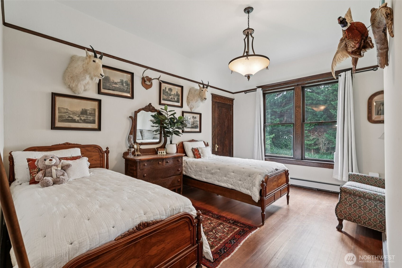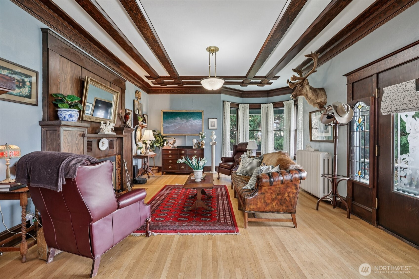 Perched gracefully on the hill, this 1918 historic manor tells a story of craftsmanship, care, and timeless elegance. From the moment you arrive, the wraparound porch invites slow mornings with coffee and sweeping territorial views. Inside, original fir floors, rich wood trim, and built-in cabinetry reflect over a century of thoughtful design. Sunlight filters through 100-year-old beveled windows, illuminating rare Steuben Glass light fixtures and preserved period details throughout. With four bedrooms and two baths, the home blends livability with legacy. Immaculately maintained and celebrated as a 2019 Stanwood newspaper cover feature, this is a rare opportunity to own a piece of history—beautifully lived in and lovingly preserved.