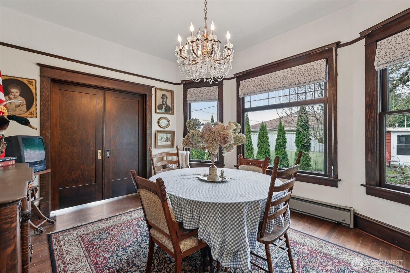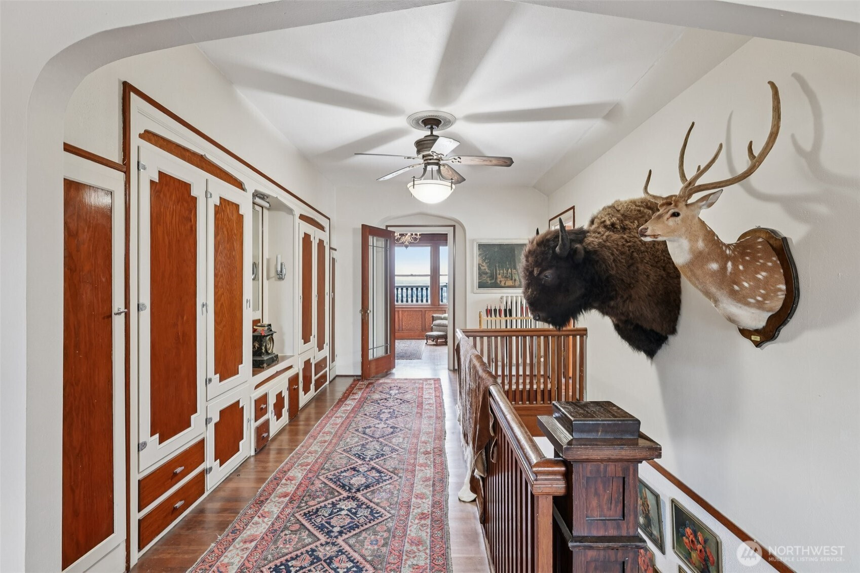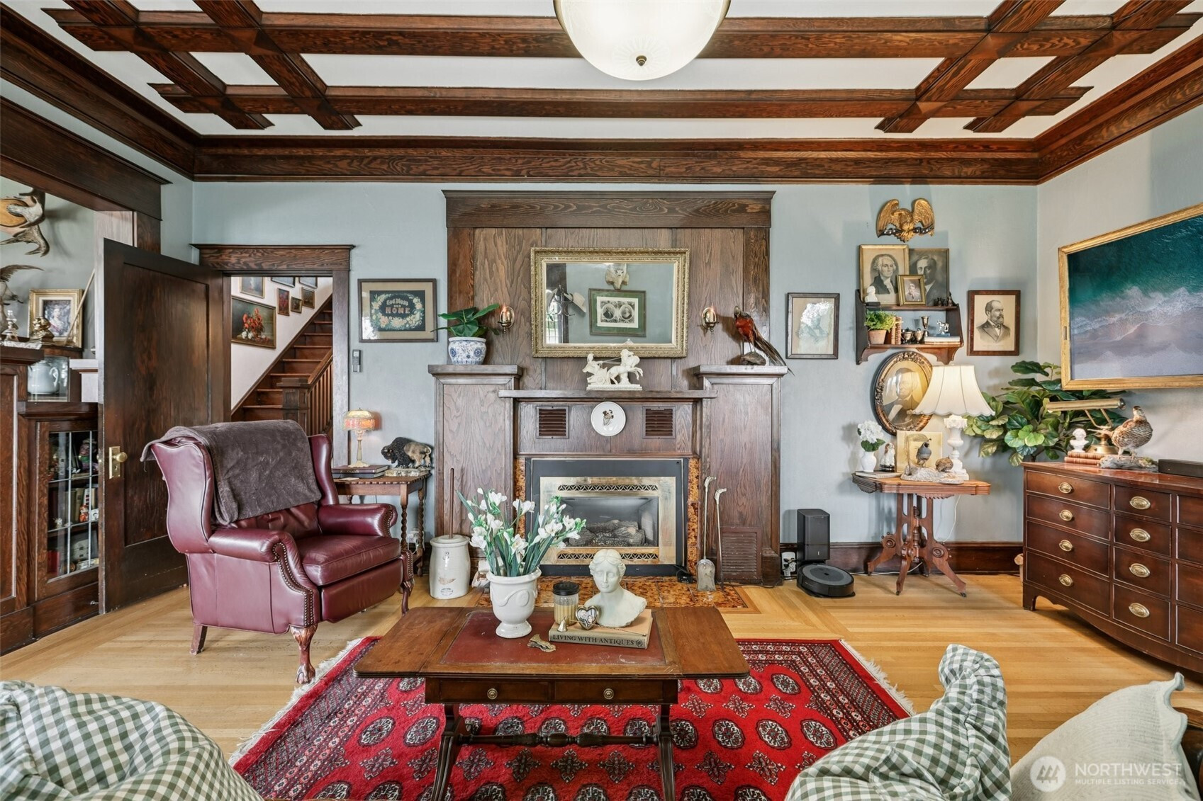 Perched gracefully on the hill, this 1918 historic manor tells a story of craftsmanship, care, and timeless elegance. From the moment you arrive, the wraparound porch invites slow mornings with coffee and sweeping territorial views. Inside, original fir floors, rich wood trim, and built-in cabinetry reflect over a century of thoughtful design. Sunlight filters through 100-year-old beveled windows, illuminating rare Steuben Glass light fixtures and preserved period details throughout. With four bedrooms and two baths, the home blends livability with legacy. Immaculately maintained and celebrated as a 2019 Stanwood newspaper cover feature, this is a rare opportunity to own a piece of history—beautifully lived in and lovingly preserved.