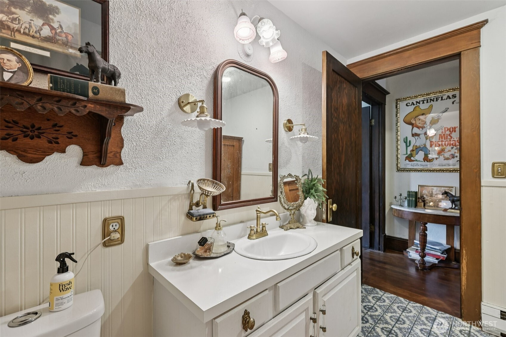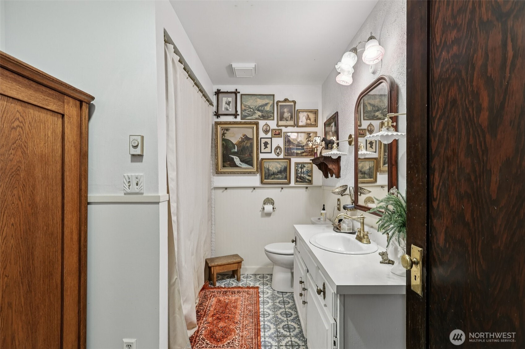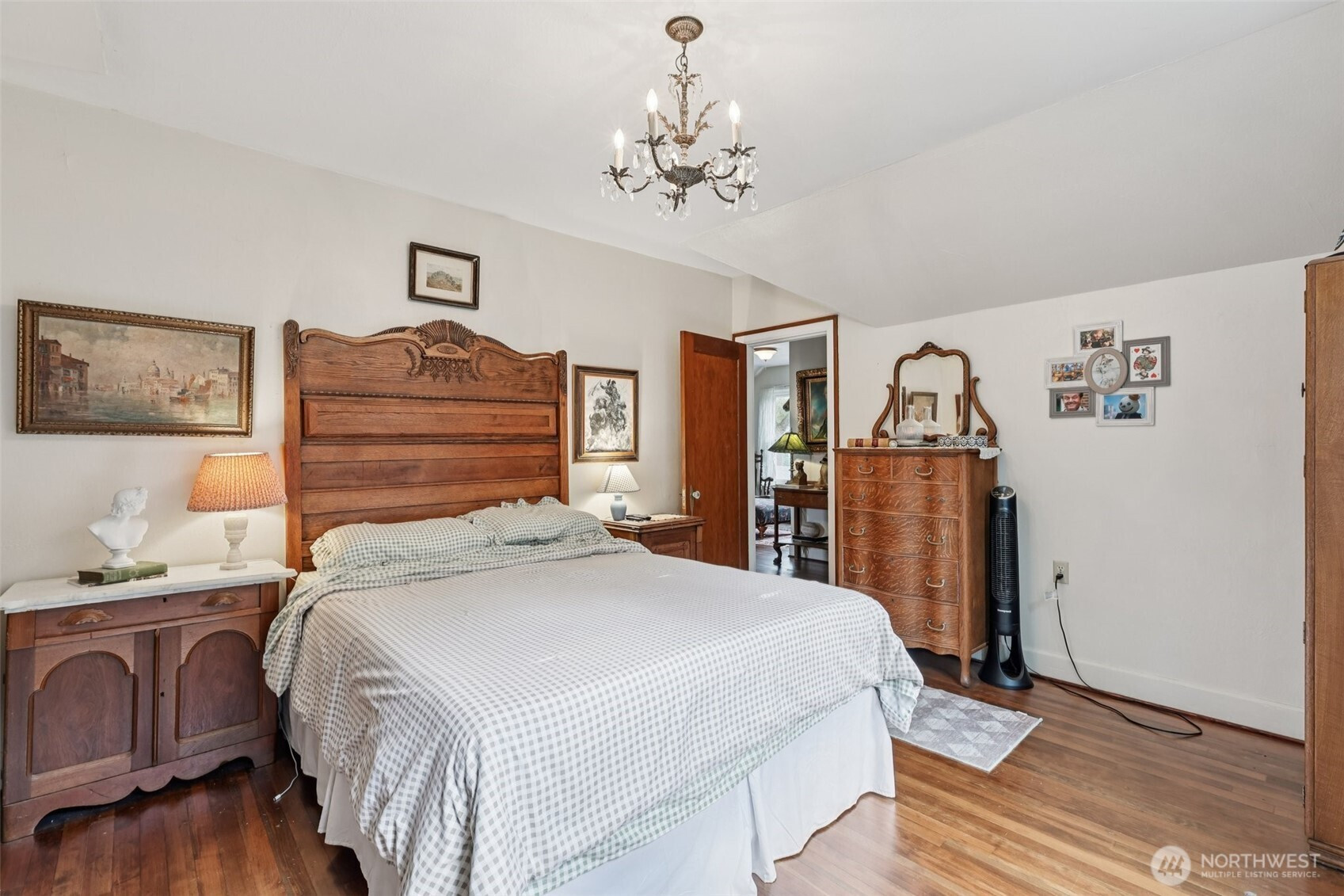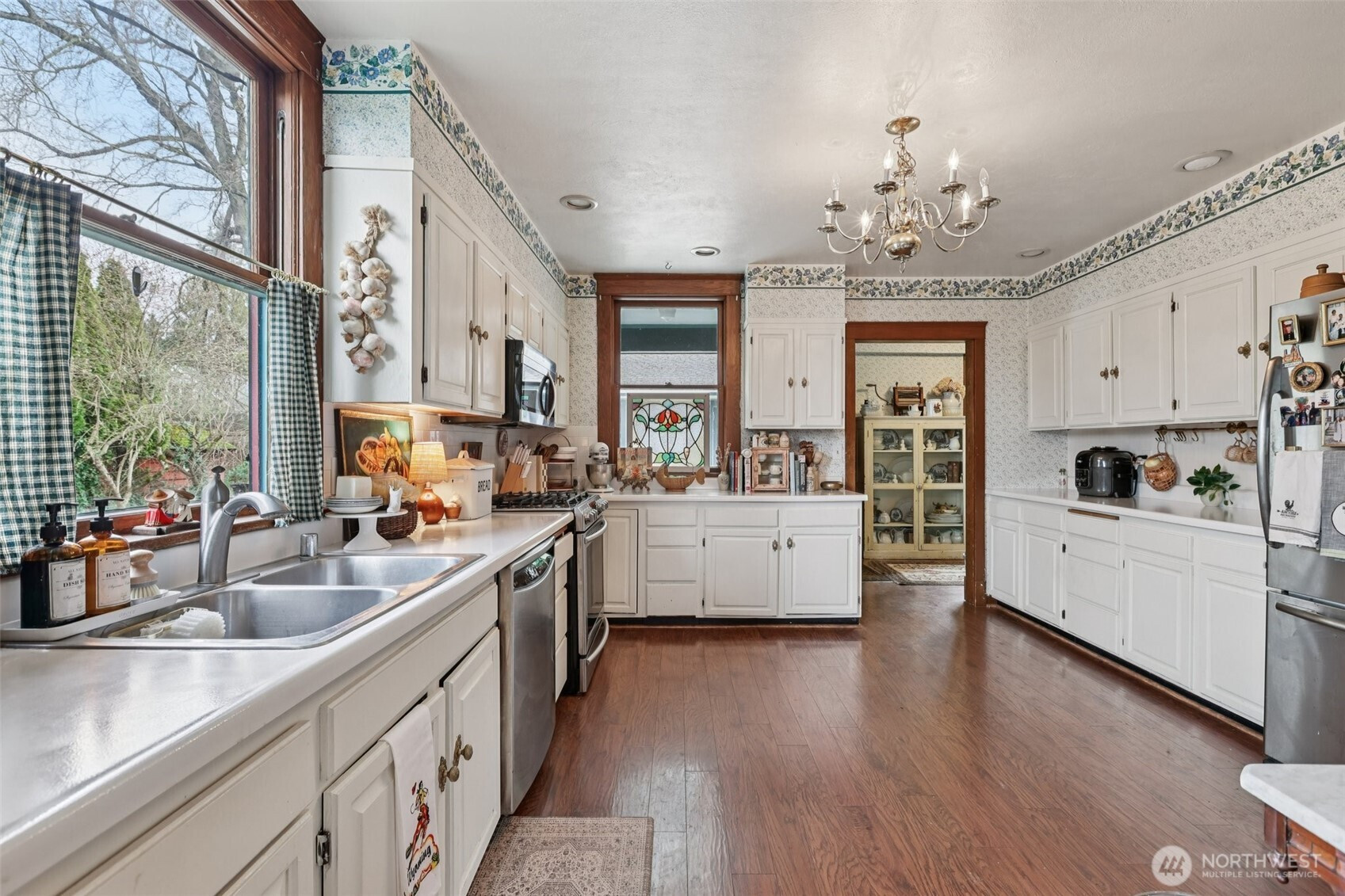 Perched gracefully on the hill, this 1918 historic manor tells a story of craftsmanship, care, and timeless elegance. From the moment you arrive, the wraparound porch invites slow mornings with coffee and sweeping territorial views. Inside, original fir floors, rich wood trim, and built-in cabinetry reflect over a century of thoughtful design. Sunlight filters through 100-year-old beveled windows, illuminating rare Steuben Glass light fixtures and preserved period details throughout. With four bedrooms and two baths, the home blends livability with legacy. Immaculately maintained and celebrated as a 2019 Stanwood newspaper cover feature, this is a rare opportunity to own a piece of history—beautifully lived in and lovingly preserved.