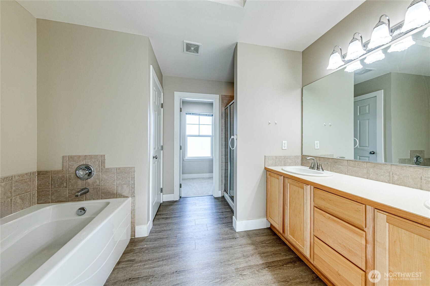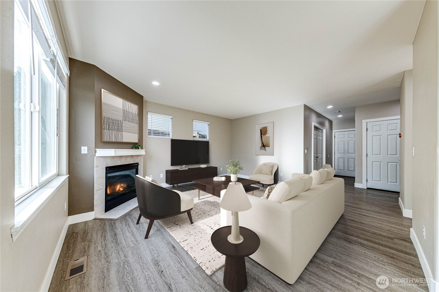 Welcome home to this beautifully updated Lynnwood charmer in ideal location! Pride of ownership shows in this one-owner home with tons of upgrades and outstanding condition throughout. Kitchen fully remodeled in 2025, complete with Cambria quartz counters, subway tile backsplash, and new appliances. Sleek LVP flooring, cozy gas fireplace, and updated bath on main level. New HVAC with central A/C, installed in 2023! Spacious floorplan featuring bedroom (or your work from home office?) on main, three more spacious bedrooms upstairs, and enormous family room up as well! Luxuriate in your spacious primary suite with vaulted ceilings, walk in closet, and huge private bath. Relax with a glass of wine on the back deck overlooking clean patio & level grass area. Don’t miss the EV charger in the garage, installed in 2024! Quiet Red Oaks neighborhood with three community parks in ideal Lynnwood location. Close to shops, restaurants, light rail, park & ride, great schools, and all commuter routes! Pre-inspection attached.