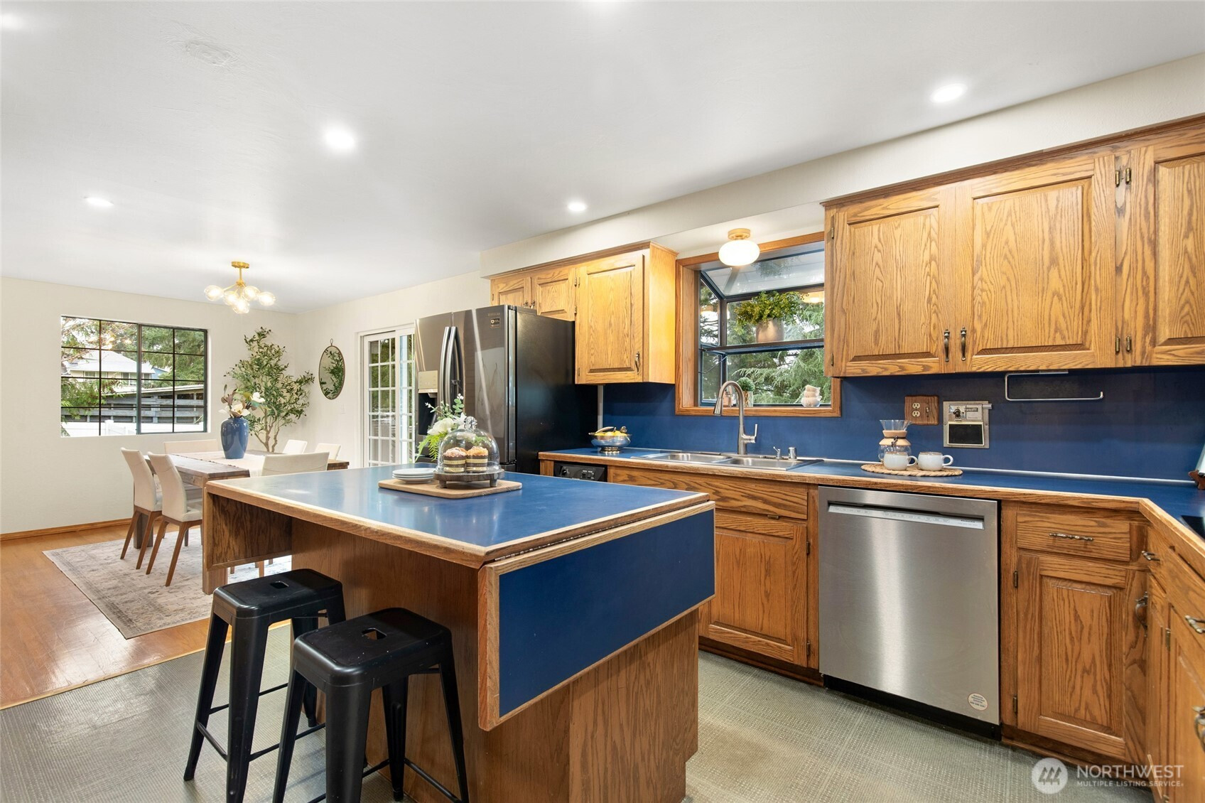 Available for the first time since it was built in 1961, this lovingly maintained home with rare detached 3-CAR GARAGE sits on an expansive 1/3-acre lot in desirable Silver Lake. Sun-filled interiors showcase hardwood floors, large windows, and a striking brick statement fireplace anchoring the main living area. The south-facing orientation fills the home with natural light, while the thoughtful layout offers three bedrooms on the main level and generous living spaces throughout. The lower level provides exceptional flexibility with two spacious rec rooms, a dedicated office/den, and an updated bathroom—ideal for guests, hobbies, or working from home. Storage is plentiful throughout the home. Step outside to a massive deck overlooking the fully fenced backyard with ample room for play, gardening, or even a basketball hoop. A 3-car garage with bonus room offers ample parking plus space for a studio/workshop. Recent updates include brand-new roofs, updated electrical, new flooring downstairs, and fresh interior paint. Ideally located just one block from highly rated Jefferson Elementary, this special property offers space, privacy, and versatility in one of Everett’s most convenient neighborhoods.