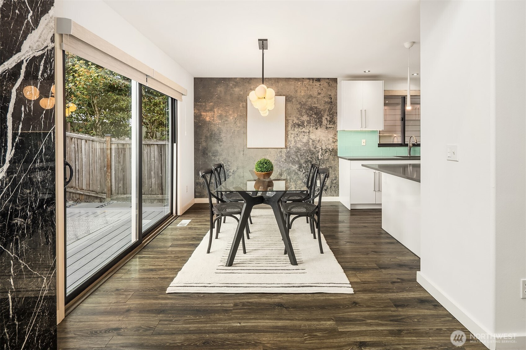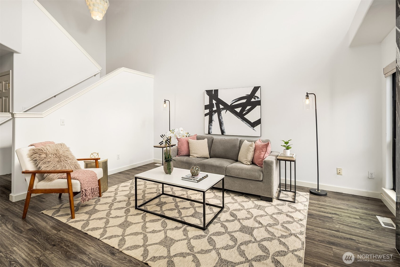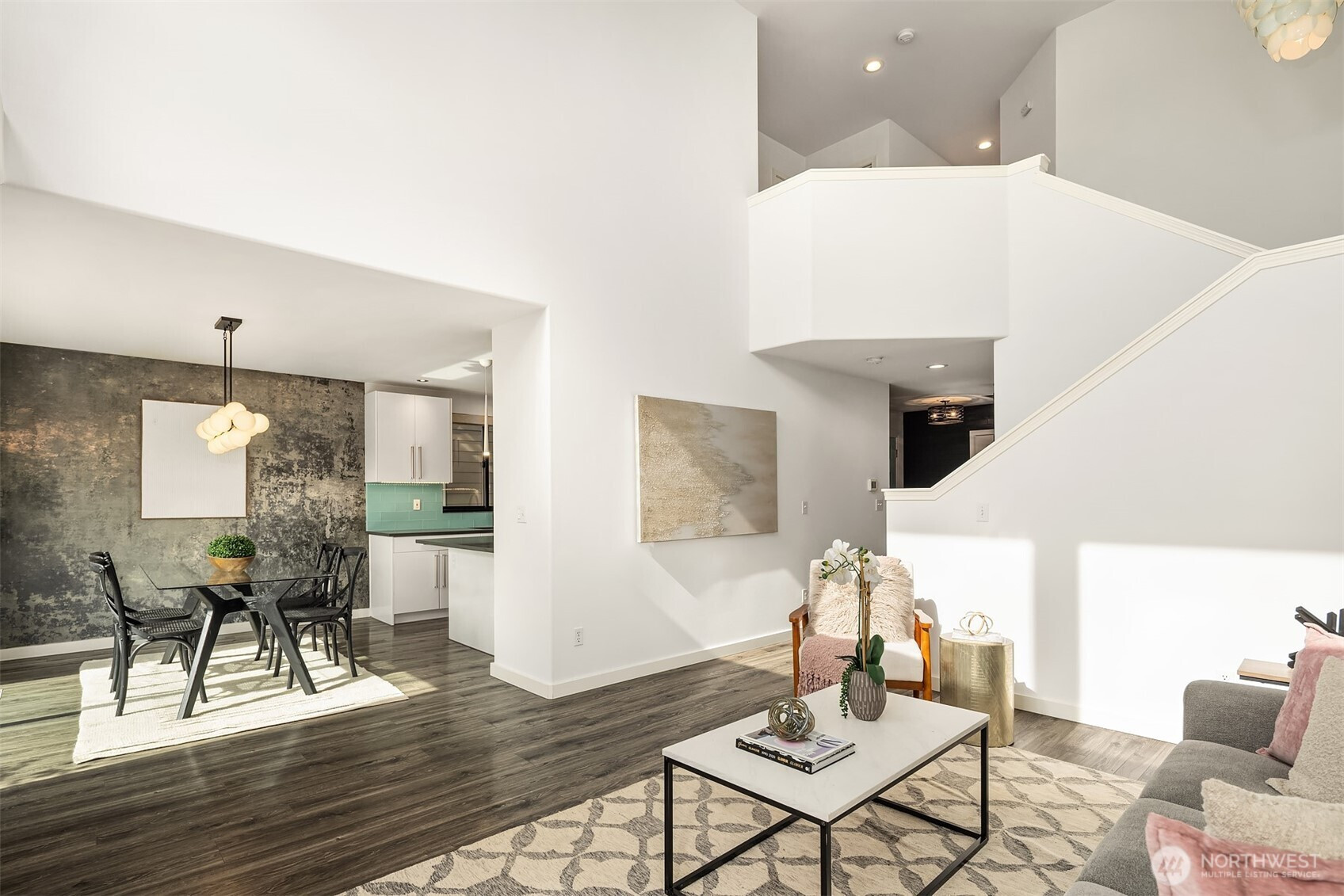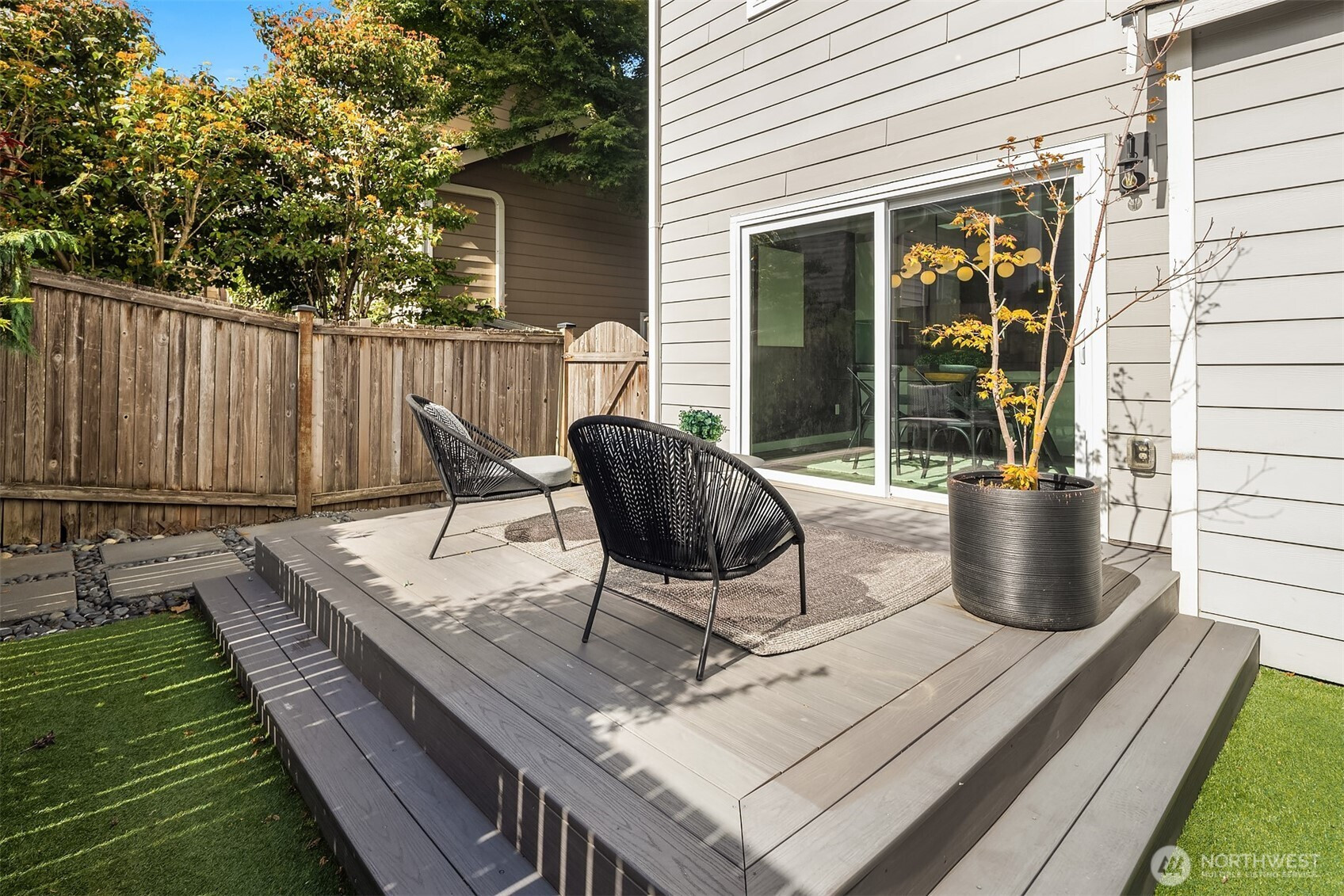 Step into this reimagined Rosemount townhouse where style, comfort, and convenience meet. The main level features soaring vaulted ceilings, a cozy gas fireplace, and abundant natural light from south-facing windows. A chef’s kitchen with quartz counters, high-end stainless appliances, and generous storage opens seamlessly to a formal dining area, deck, and fully fenced yard with low-maintenance astroturf—ideal for entertaining. A powder room and full laundry complete the level. Upstairs, the luxurious primary suite boasts a spa-like 5-piece bath and walk-in closet, joined by two spacious bedrooms and full bath. With a 2-car garage, central heating/cooling, and prime I-5 access, this home blends elegance with everyday ease.
