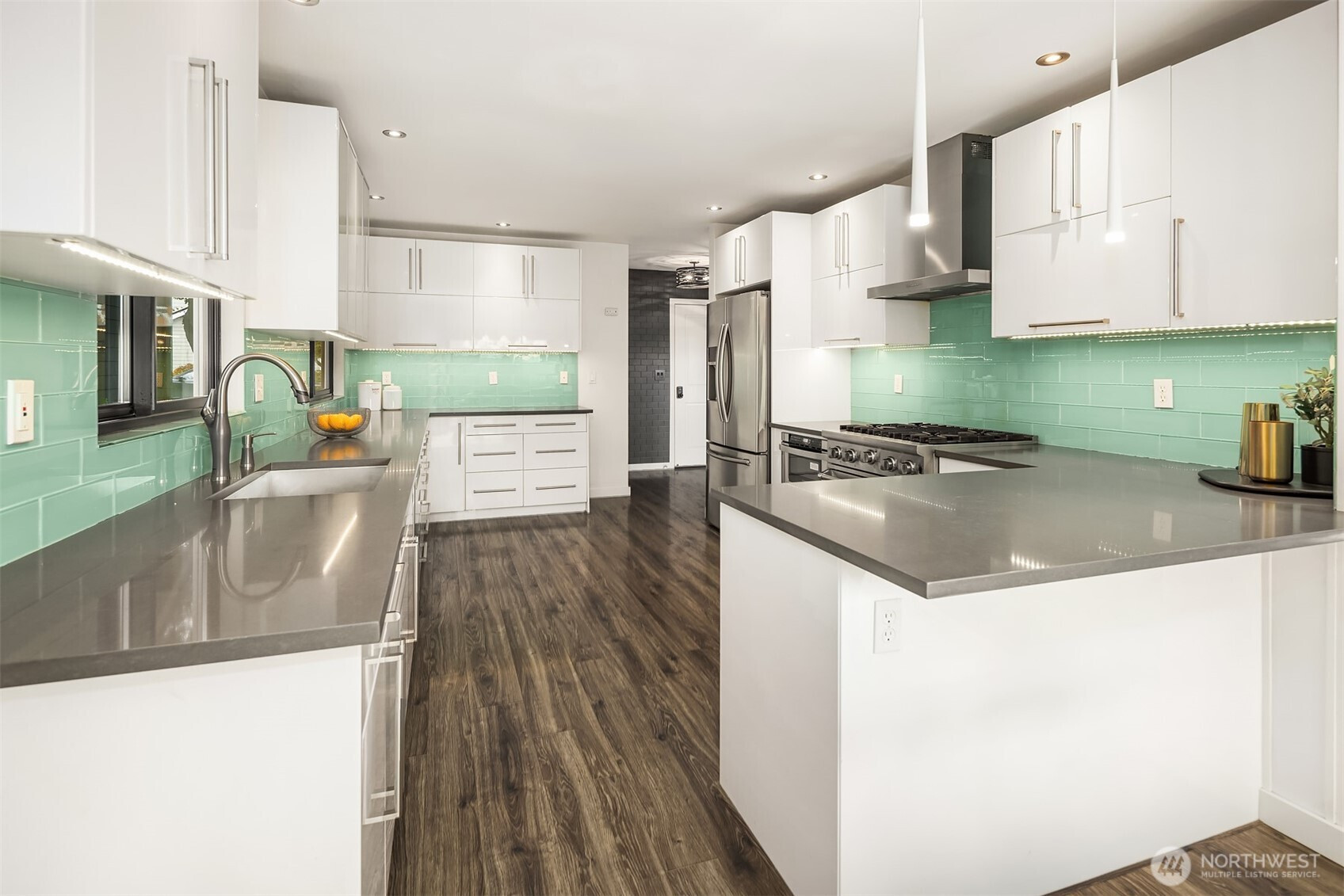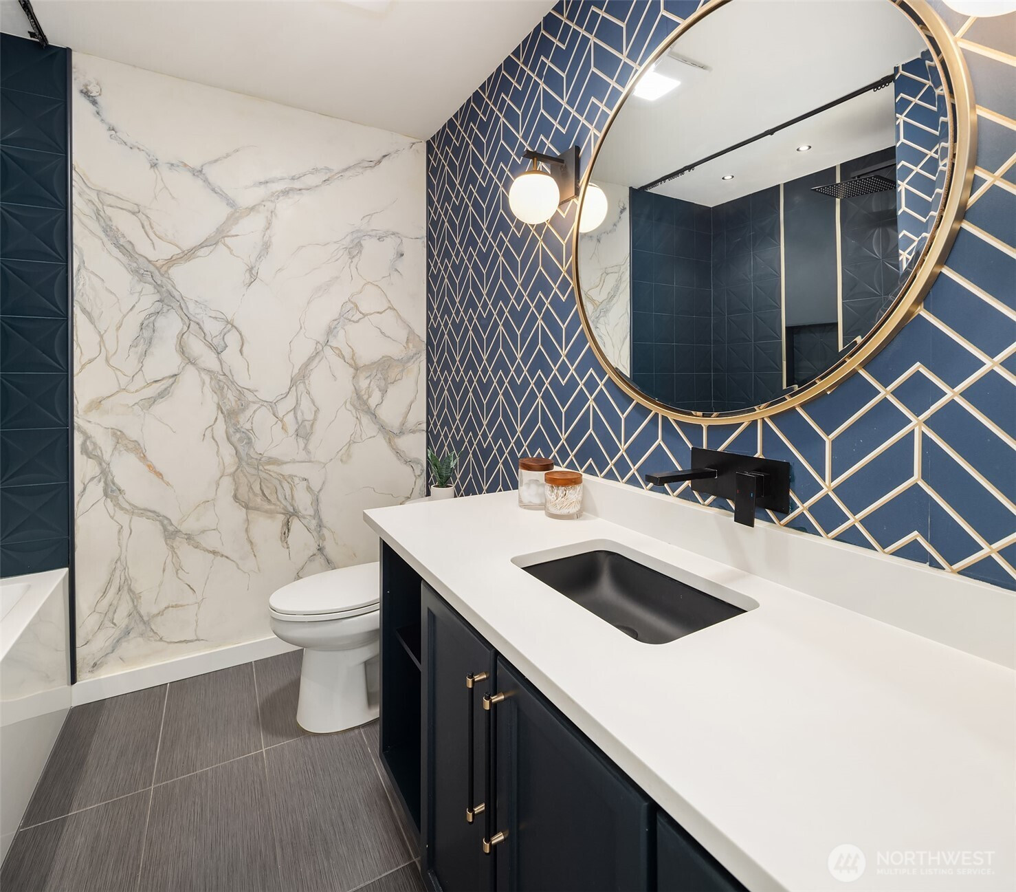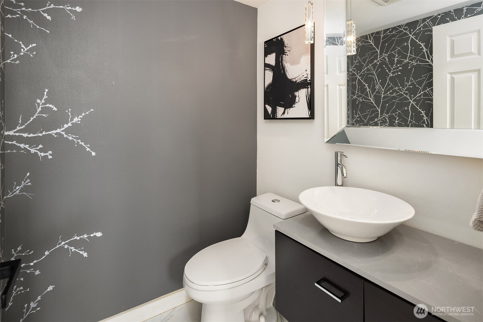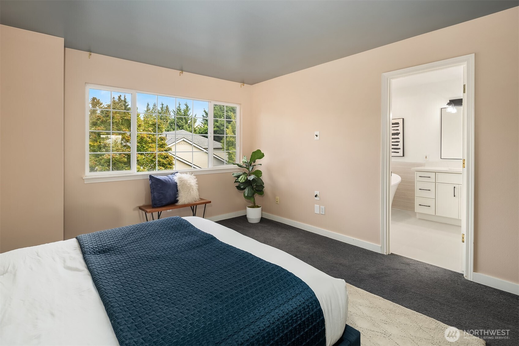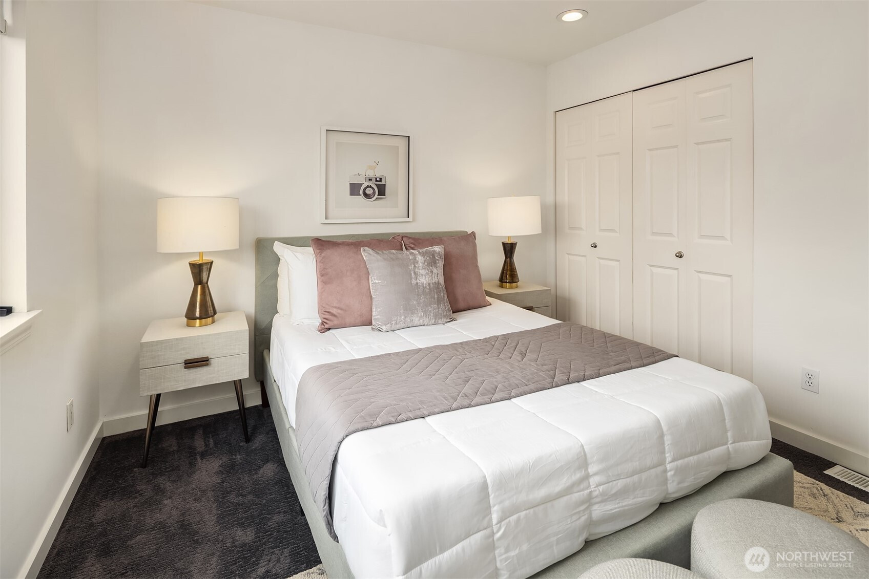 Step into this reimagined Rosemount townhouse where style, comfort, and convenience meet. The main level features soaring vaulted ceilings, a cozy gas fireplace, and abundant natural light from south-facing windows. A chef’s kitchen with quartz counters, high-end stainless appliances, and generous storage opens seamlessly to a formal dining area, deck, and fully fenced yard with low-maintenance astroturf—ideal for entertaining. A powder room and full laundry complete the level. Upstairs, the luxurious primary suite boasts a spa-like 5-piece bath and walk-in closet, joined by two spacious bedrooms and full bath. With a 2-car garage, central heating/cooling, and prime I-5 access, this home blends elegance with everyday ease.