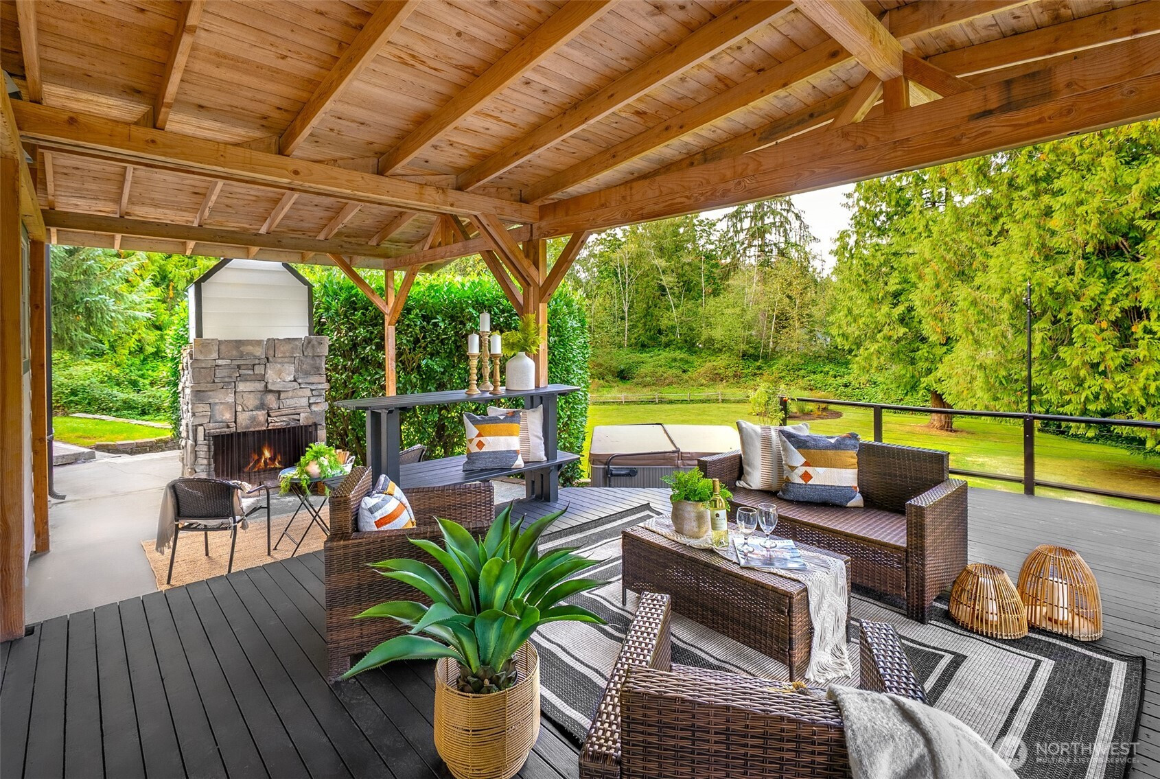 Tucked away near Lake Bosworth, this stunning Snohomish is a retreat! Fresh exterior paint and a new roof create a bright, welcoming first impression. Inside, the light-filled living spaces are designed for everyday comfort & style. The kitchen is a chef’s dream, featuring stamped concrete countertops & SS appliances. Step outside to the expansive back deck for year-round enjoyment, complete w/ an outdoor fireplace; all set on nearly two acres. Upstairs, the oversized primary suite offers a chic ensuite. Three additional bedrooms & hall bath provide space for everyone. Above the three-car garage, an oversized bonus room w/ a bedroom & ¾ bath awaits. Surrounded by lush PNW greenery, lakes, & scenic trails, you’ll enjoy this serene lifestyle!