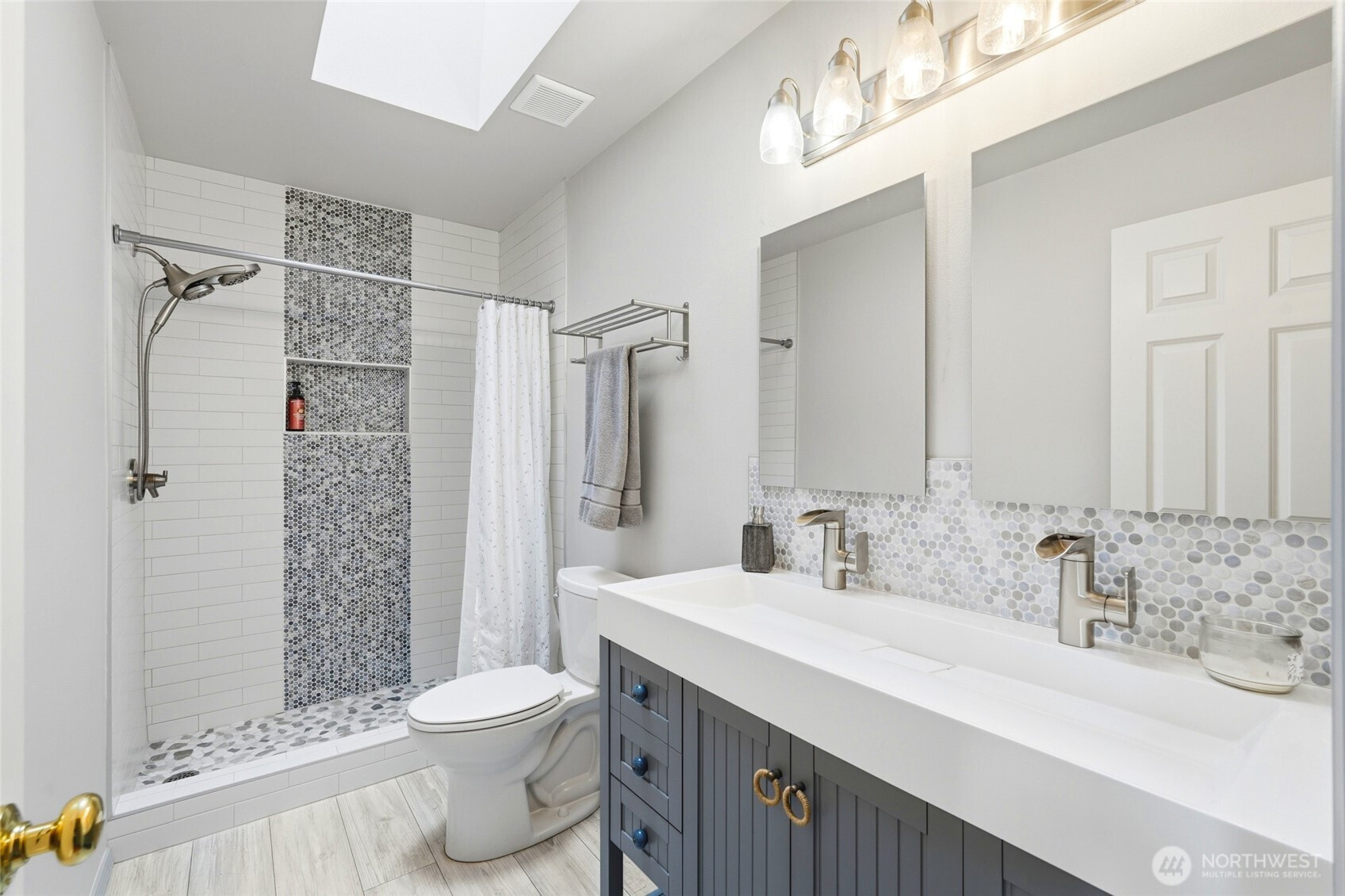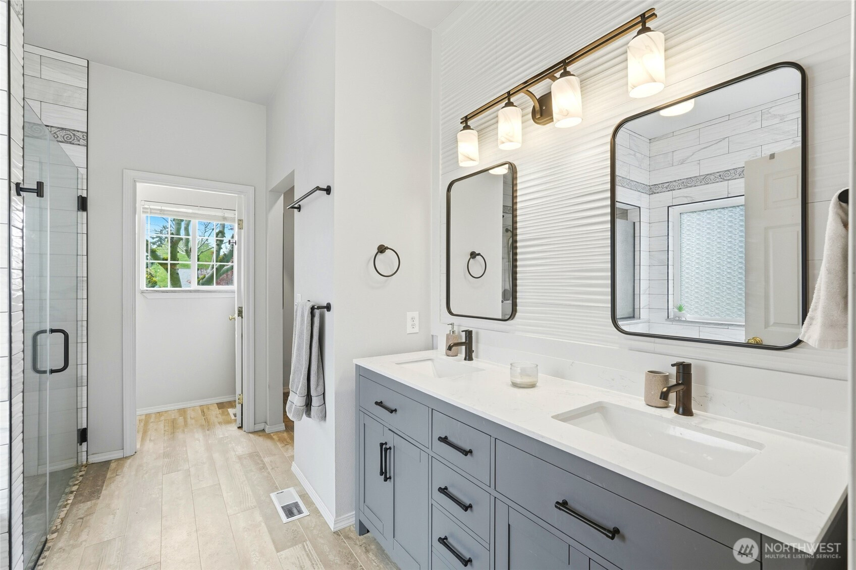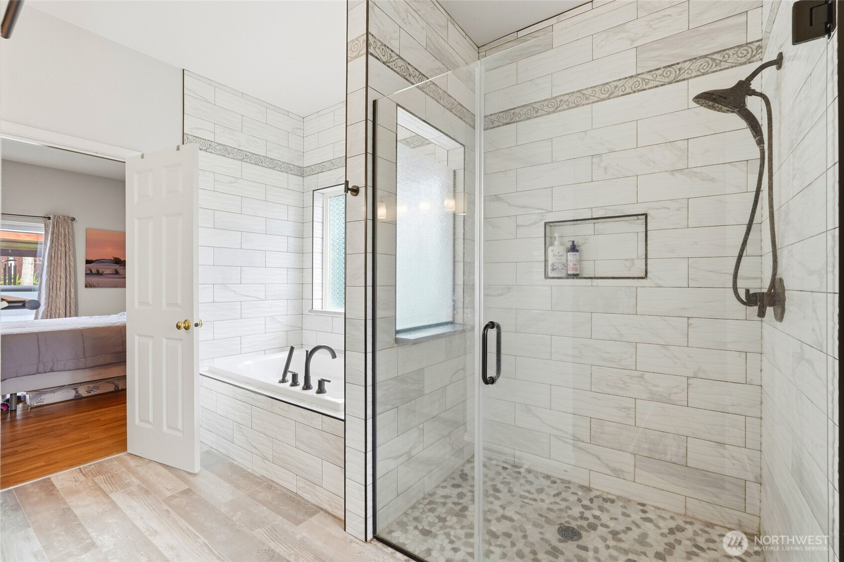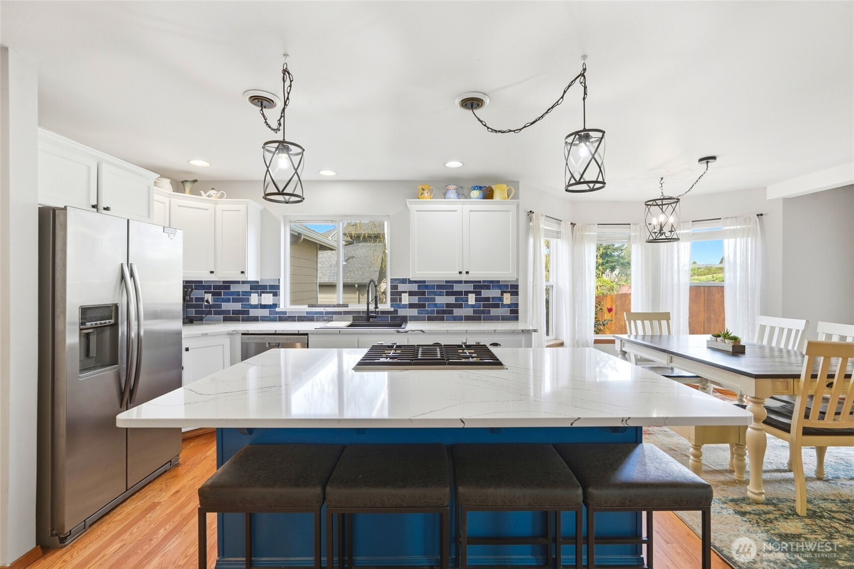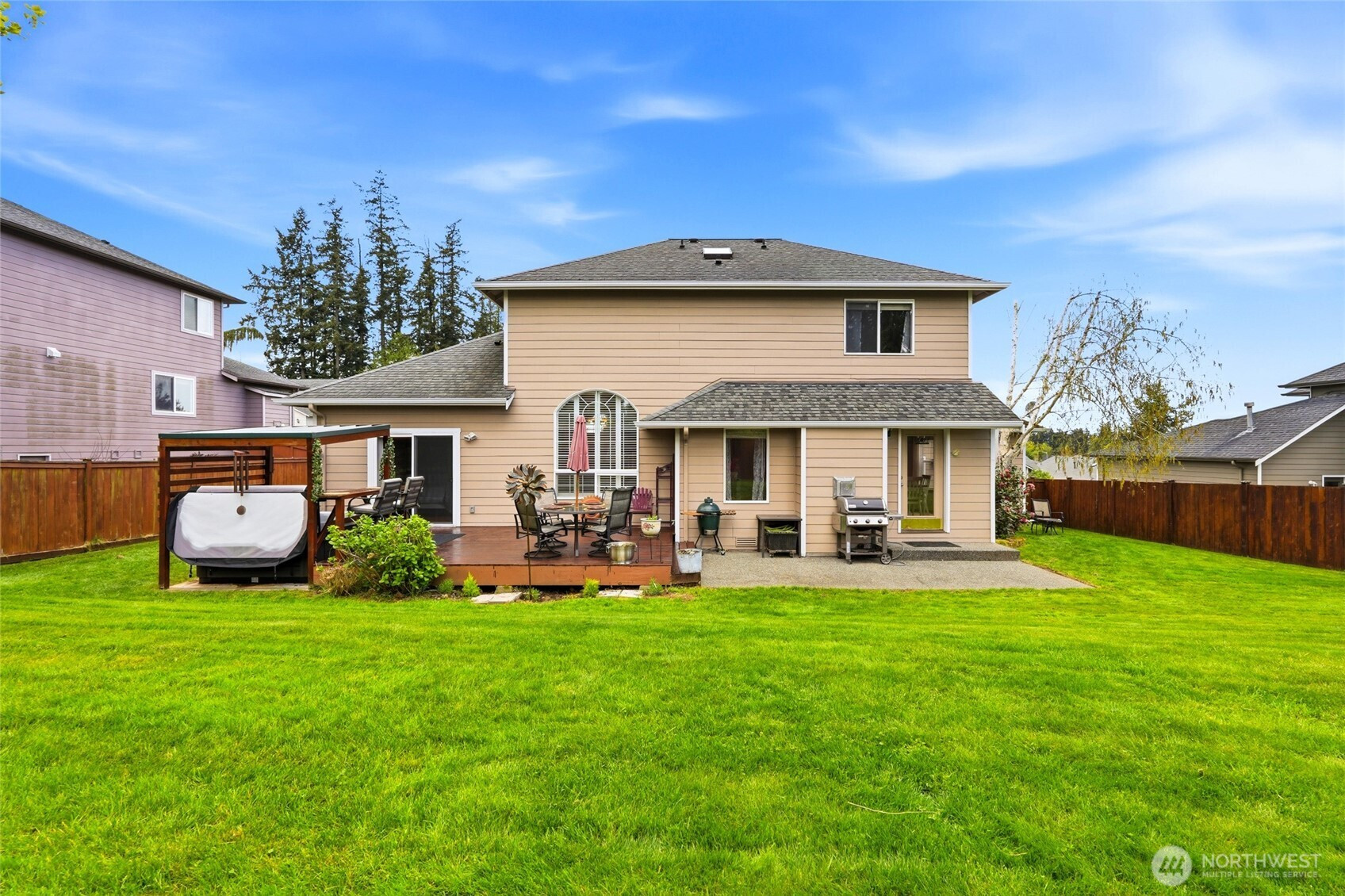Welcome home! This one checks the boxes… and then some. And to make it even better, our preferred lender is offering a 1% temporary buy down to help reduce your monthly payment. Step inside to a grand entry with vaulted ceilings and a layout that just flows — open, easy, and comfortable. 4 beds, 2.5 bath and a main floor den. The kitchen has been beautifully updated with sleek cabinetry, Cambria quartz countertops, and stainless steel appliances — perfect for everyday living or entertaining. The main floor primary suite is a standout, featuring a fully remodeled bathroom, custom tile, and private access to the hot tub… yes, please. Upstairs, you’ll find spacious bedrooms and a shared bath with custom finishes and subtle coastal vibes. Out back, the fully fenced yard gets great sunlight and offers plenty of space to relax, BBQ, or host — with a gas hookup right off the back deck, so you’re ready to go. You’ll also notice the updated exterior trim and front door — adding great curb appeal right from the start. Enjoy year-round comfort with central A/C and a heat pump, plus a 3-car garage with ample storage and an EV charger. Newer water heater and furnace, with a new roof coming soon. Located in the heart of Stanwood with easy commuting access, close to shops and restaurants, this home truly offers the full package. Pre-inspected and ready to go — are you ready to call this home?