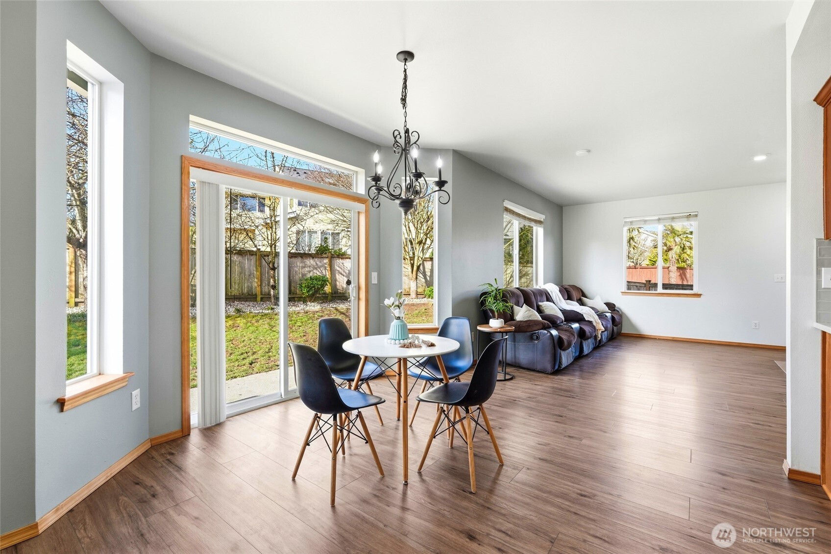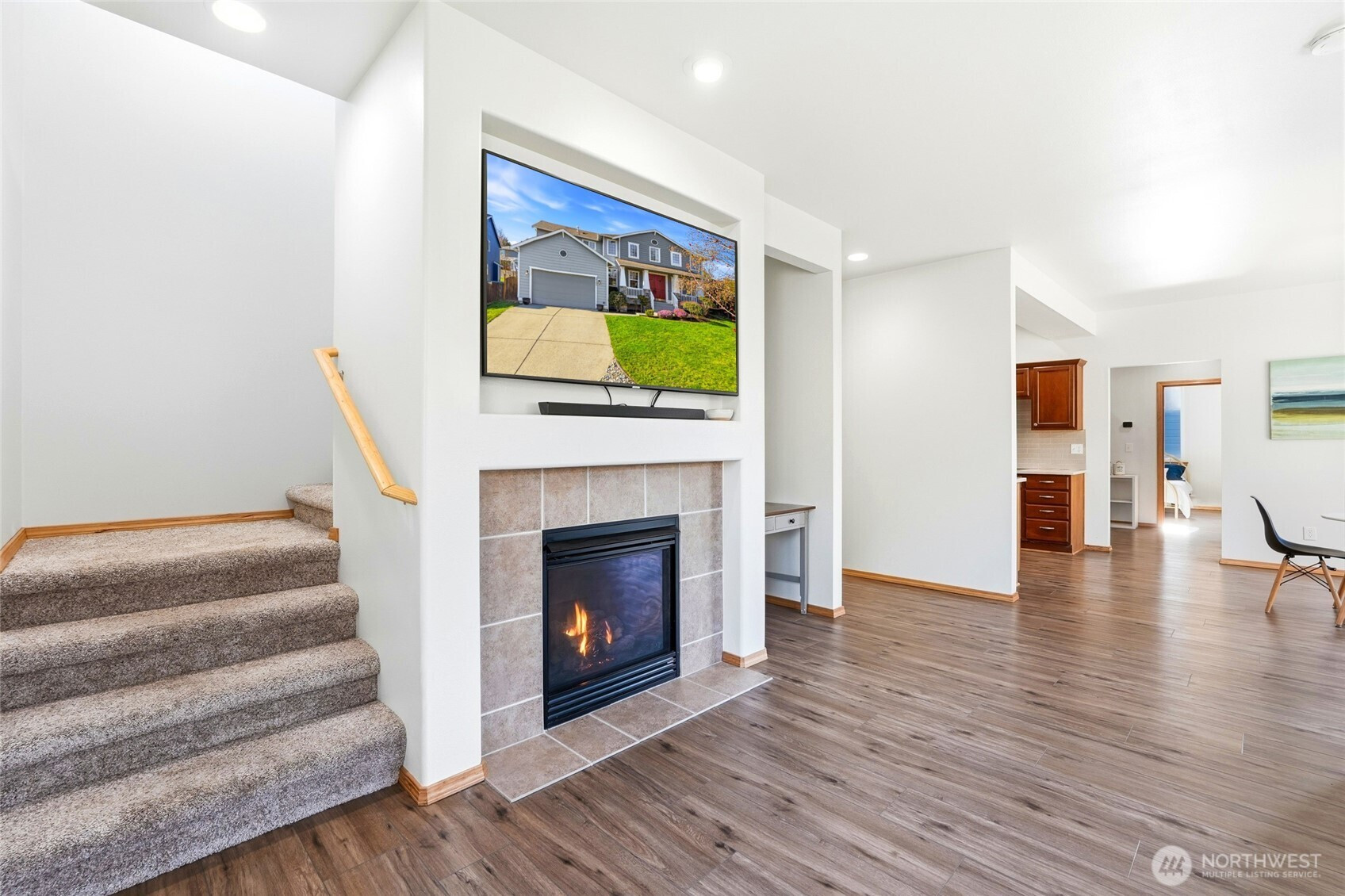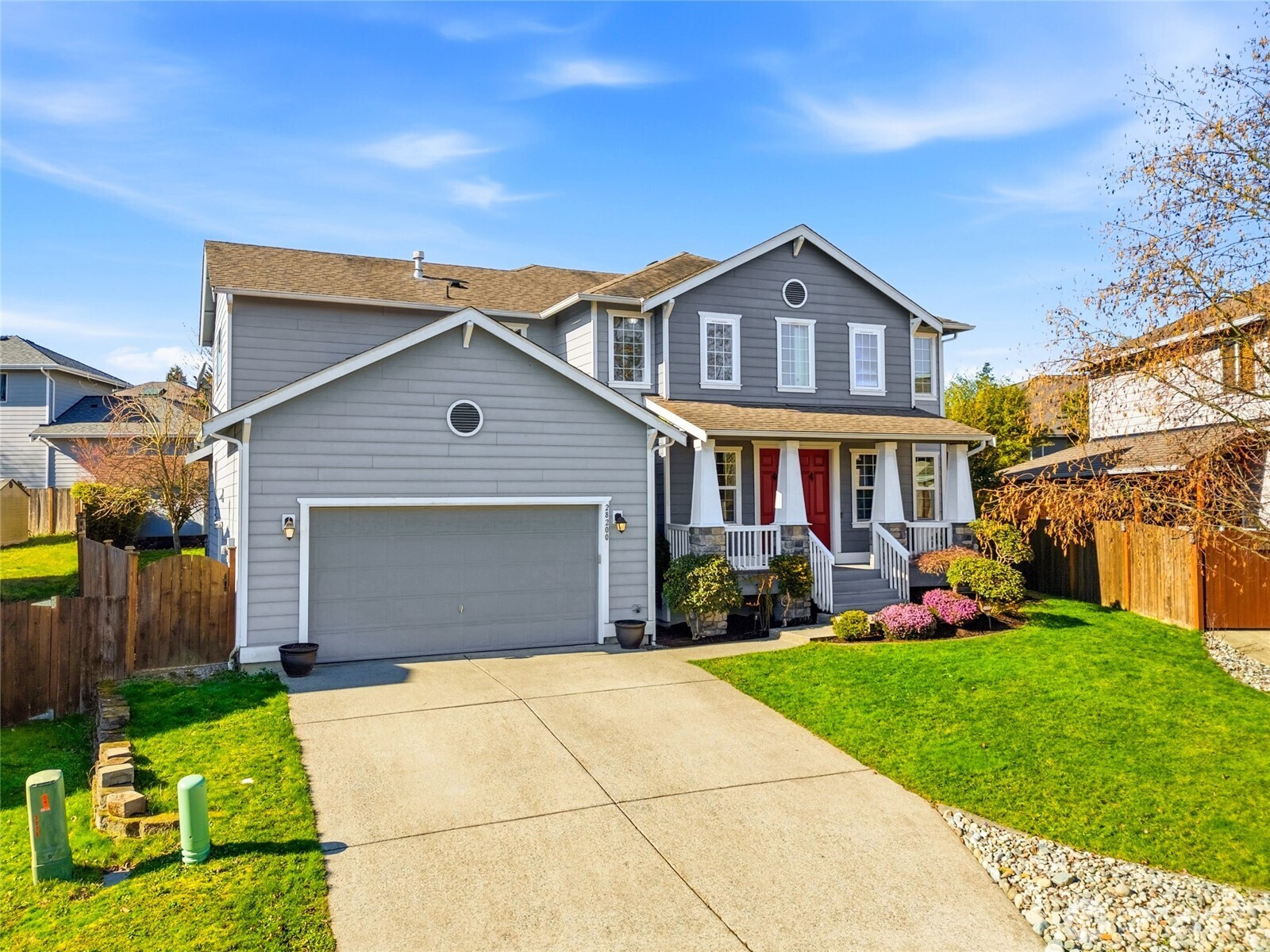 Welcome to this Stanwood stunner where everyday living feels a little more elevated. A charming covered porch sets the tone, inviting you to slow down & stay awhile. Inside, formal living & dining spaces shine with gorgeous new LVP flooring, plush carpet, & fresh paint throughout—crisp, clean, & move-in ready. The heart of the home is the beautifully updated kitchen, featuring sleek new countertops, stylish backsplash, & sunny breakfast nook made for early-morning coffee or afternoon homework sessions. The adjoining family room is warm & welcoming with natural light, cozy gas fireplace, & new smart thermostat to keep comfort dialed in year-round. A spacious mudroom with built-in bench seating & storage just off the 2-car garage keeps backpacks, cleats, & daily chaos tucked away. The main-level bedroom & full bath offer flexibility for guests, multi-gen living, or private home office. Upstairs, retreat to a generous primary suite with a massive en-suite bath—your own end-of-day escape. Two additional bedrooms & extra storage space provide room to grow. And then there’s the showstopper: a dedicated movie room with built-in projector & certified 7.2 THX surround sound. This isn’t just movie night—this is an experience. Outside, refreshed landscaping & fully fenced yard create space to play, garden, or unwind. Located minutes from amenities & walking distance to Stanwood schools—no bus ride to Camano required! This is more than a house, it's where you can start your next chapter.