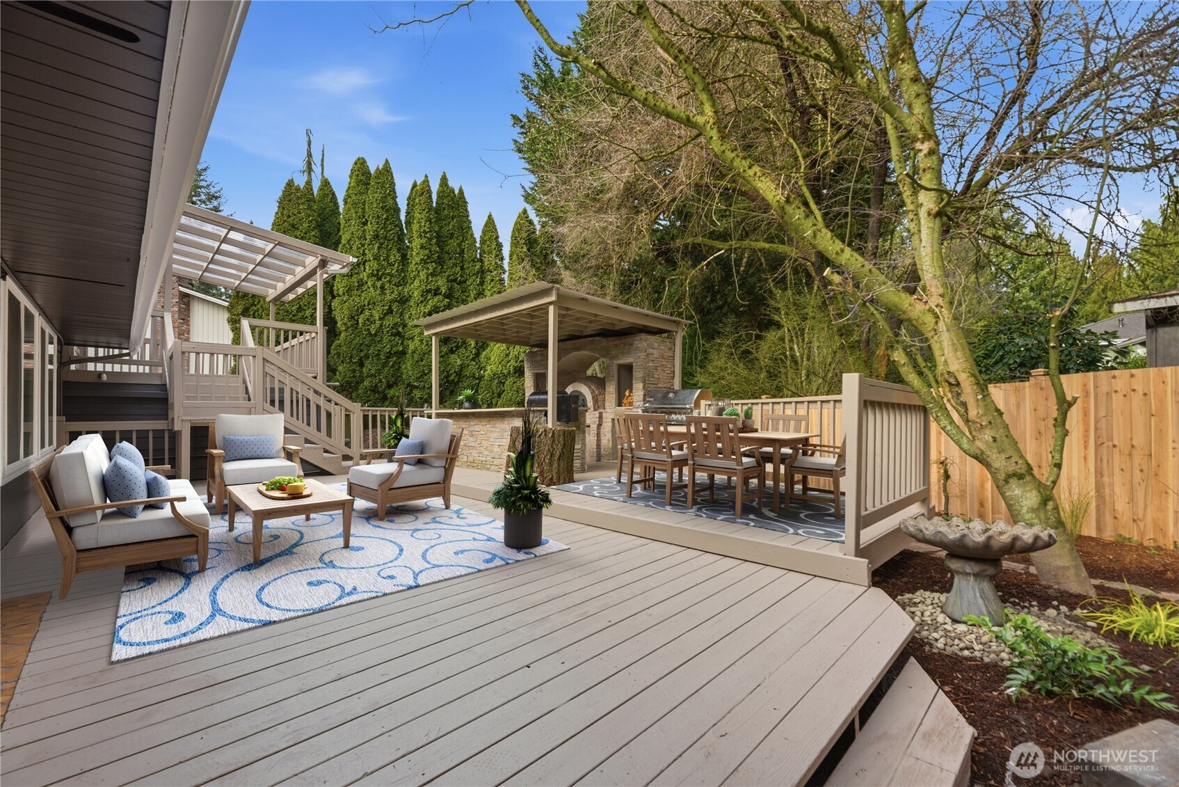 Mill Creek CC Stunner! Completely Refinished & Upgraded, Top to Bottom! Tri-level home blends indoor/outdooor Lifestyle. Circular driveway! In Cul de sac! Large Picture windows thru out. Main floor- Living room, Dining room and Eat in Kitchen. French doors out to Magnificent Deck complete w/Real Pizza Oven, BBQ, Smoker, 2 drawer Refrigerator and Sink. All Built in, surrounded by huge Granite Bar top! Inside- walk down 5 steps to versatile Rec room/2nd Living room w/wet bar, Full bath, Bedroom & Large Untility room. Upstairs-Primary Ensuite w/WalkIn Closet, French doors to Private Deck. 2 more Bedrooms & Full bath w/jacuzzi tub and large linen closet. List of New: Roof (2022), HVAC (1/2025), Foundation footing gaps concrete filled (1/2026) , Paint inside and out (1/2026), Wide Plank Flooring, Window Coverings. All Appliances inside and out, Lighting, Doors, Hardware, Trim, Chimney flashing, Meticulous Epoxy finished Garage w/dual outdoor key pads. Award winning landscape, just wait til you see it Spring thru Fall! Transport yourself, relax in Zen Gardens w/Babbling Brook or Eat outdoors and Party on the deck enjoying the masterfully crafted outdoor Kitchen, it's Youtube worthy, start a Food Channel!! Home sits in beautiful Community which offers fantastic trails & Parks. Close to shopping. top rated schools..Must See! Seller Offering $25,000 Closing Credit!
