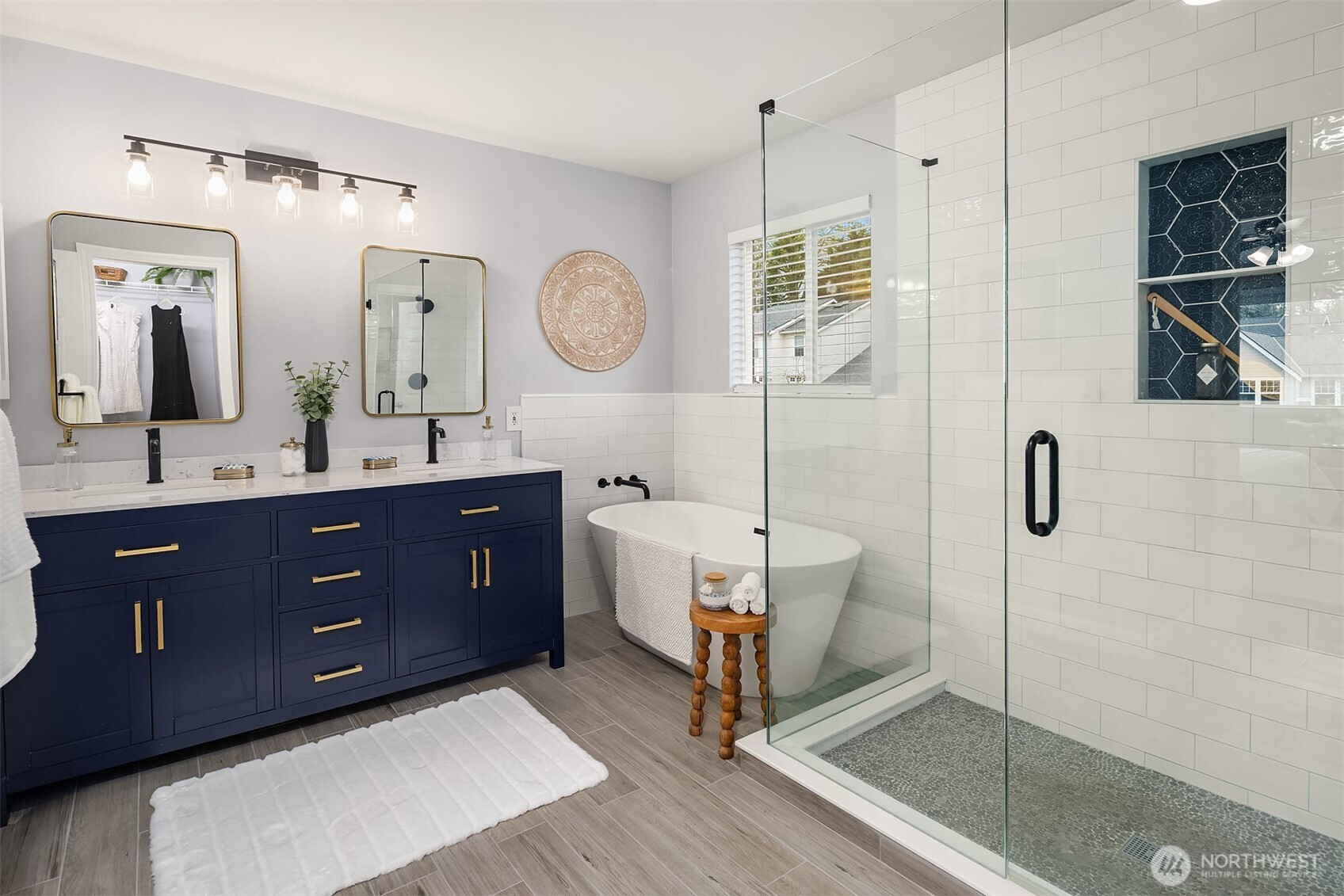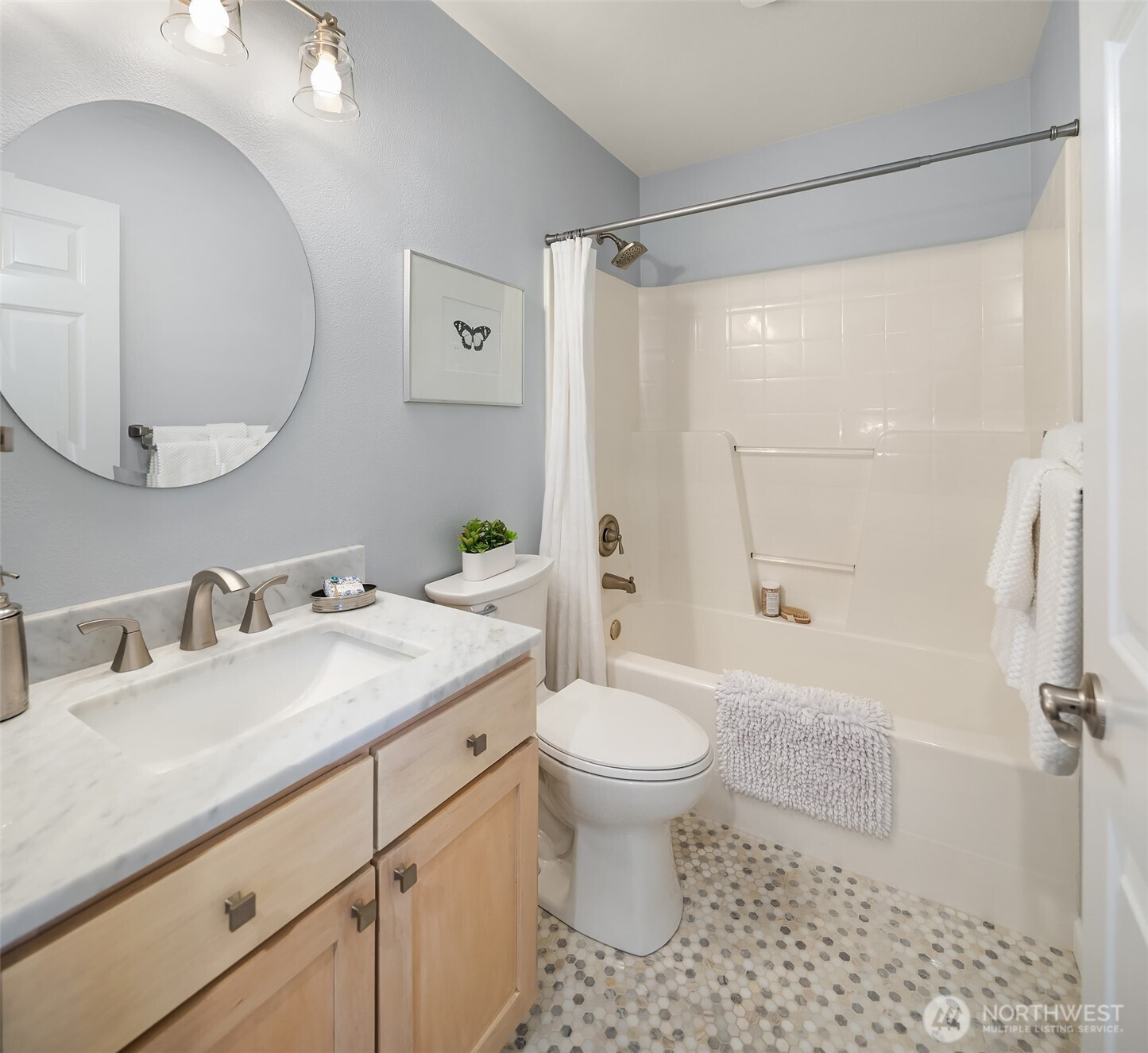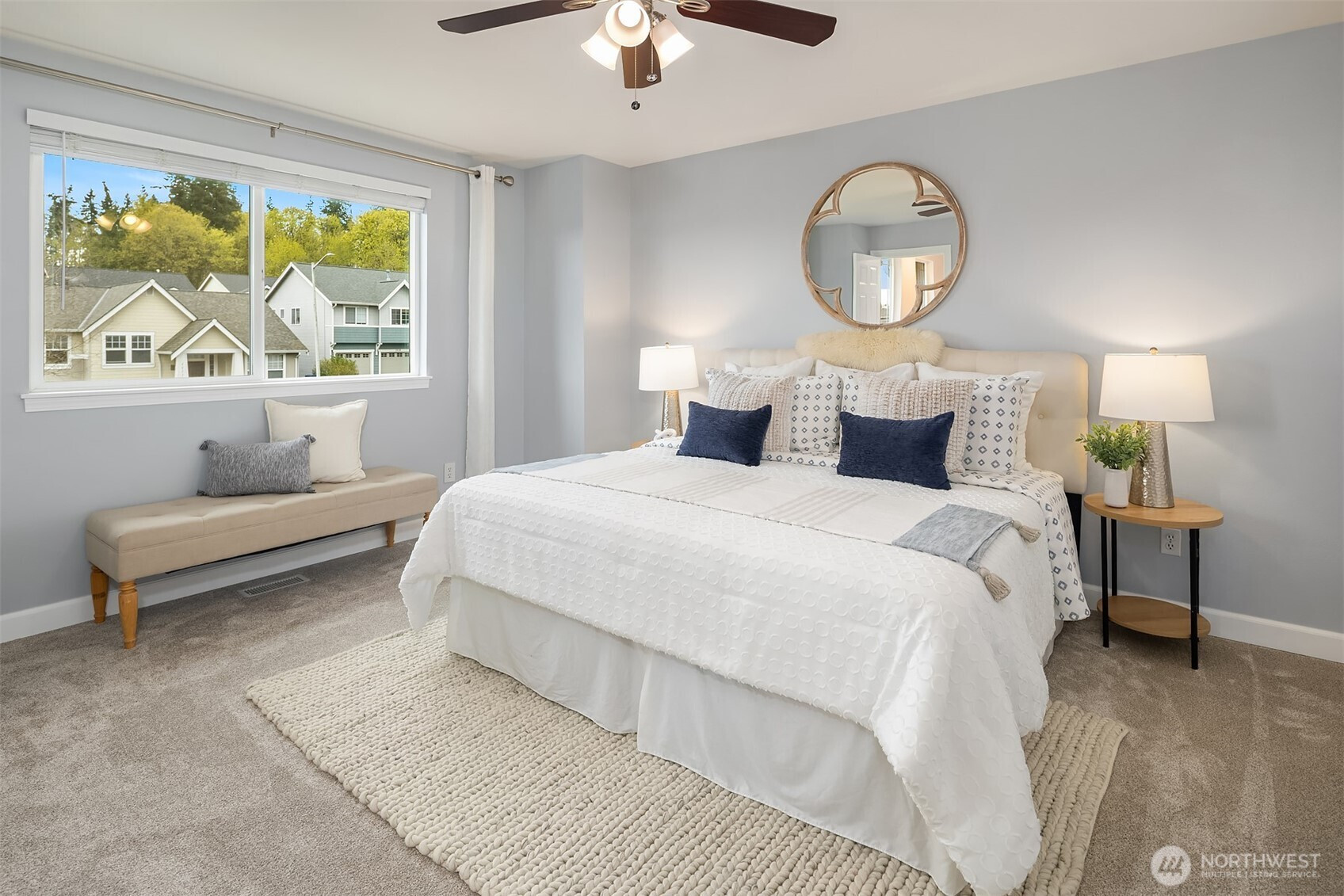 Nestled on a quiet cul-de-sac in the highly desirable Red Oaks neighborhood, this beautifully updated two-story home offers comfort, style, and everyday ease. Recent upgrades include a new roof and gutters, fresh interior paint, new flooring throughout, a fully renovated five-piece primary bath, and an updated kitchen with new counters, appliances, and instant hot water—creating a truly move-in ready experience.The main level features a circular floor plan with open, connected living spaces, along with a versatile flex room ideal for a home office, guest space, or additional bedroom. Upstairs, you’ll find three spacious bedrooms, including a well-appointed primary suite with a luxurious five-piece bath, as well as a conveniently located laundry room. The thoughtful layout and generous living areas provide flexibility to suit a variety of needs.Step outside to a private, fully fenced backyard with a large patio and expansive yard—perfect for entertaining, outdoor dining, or simply relaxing at home. A neighborhood playground just next door offers even more ways to enjoy the outdoors.A spacious two-car garage provides ample storage, and the prime location offers easy access to major freeways, Lynnwood light rail, shopping, dining, Alderwood Mall, and well-regarded schools.