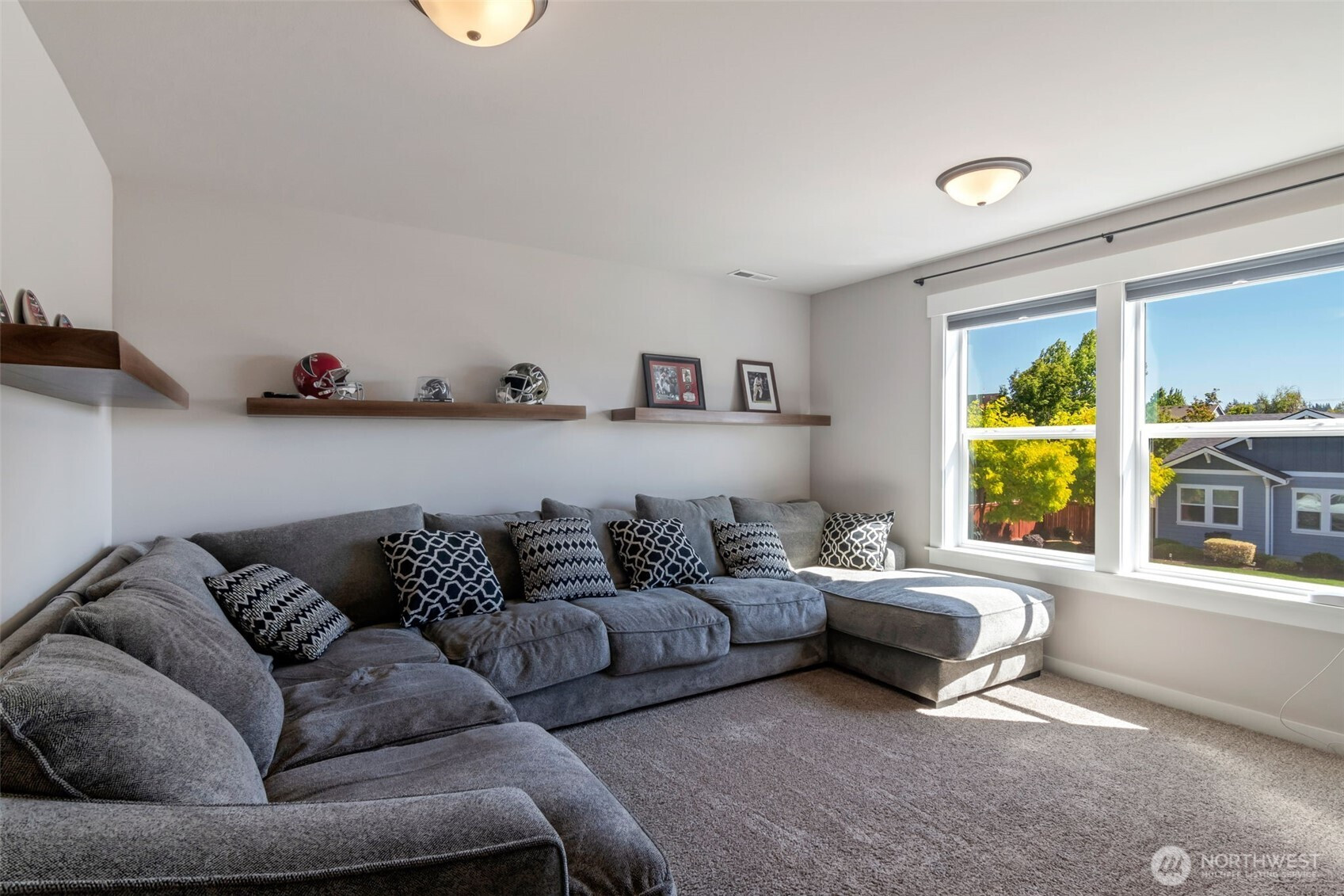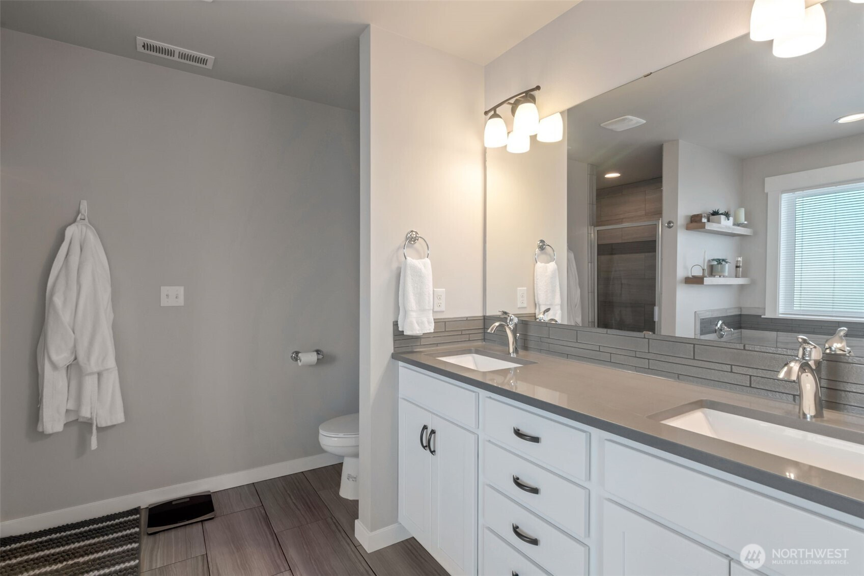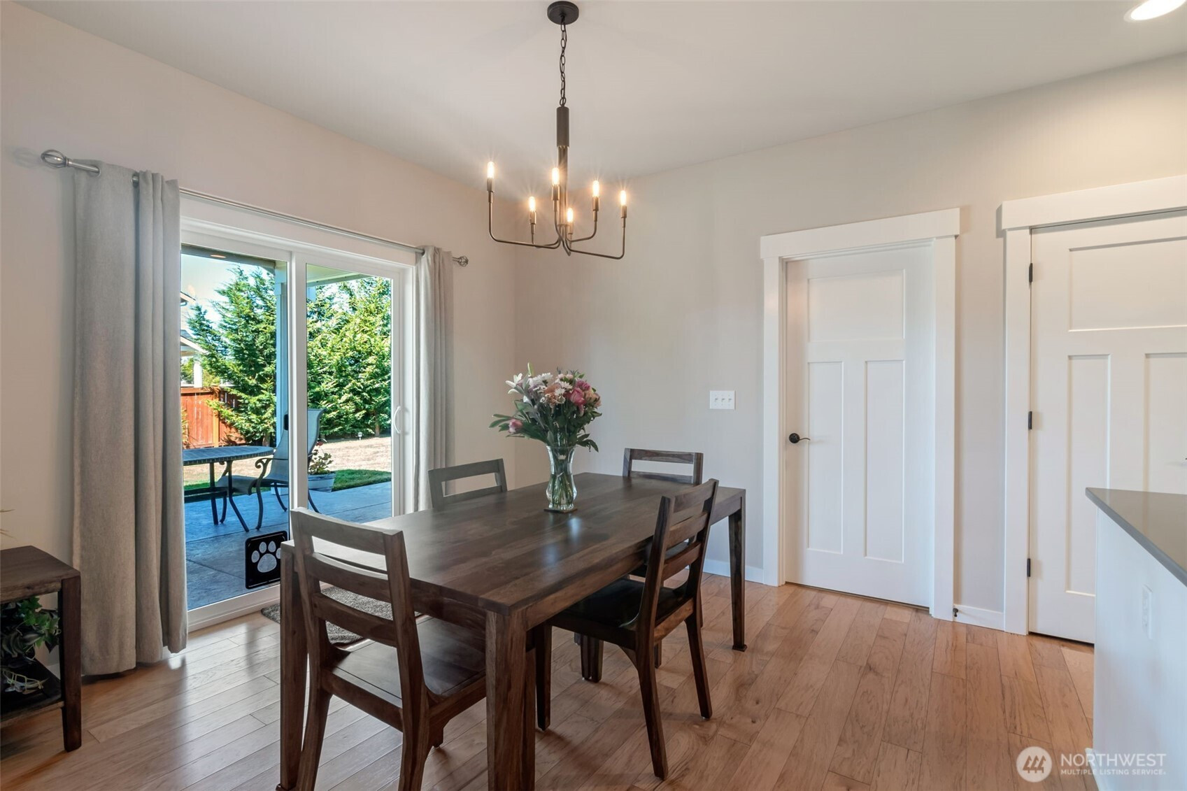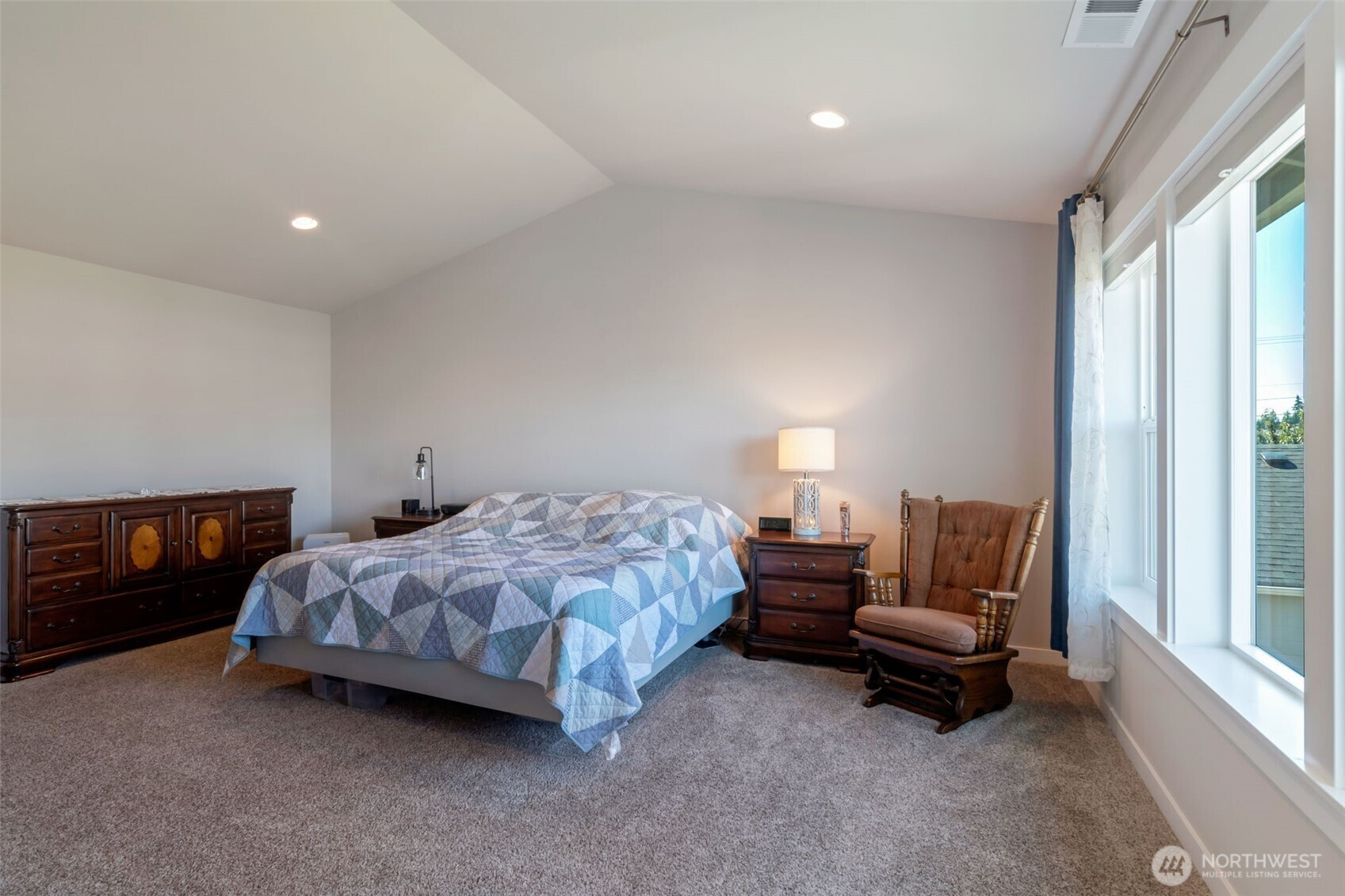 Welcome home to this beautifully appointed craftsman in Stanwood, where thoughtful design meets everyday comfort. The open-concept main level impresses from the moment you step inside, with rich hardwood floors flowing from the welcoming entryway through the spacious living room — anchored by a cozy fireplace — into the chef's kitchen and dining area. The kitchen shines with white cabinetry, a gas range with statement hood, granite counters, a large island with bar seating, and stainless appliances. A main-level office (easily used as a 5th bedroom) adds versatility, while the oversized mudroom and laundry room off the garage keep daily life organized. A full guest bath completes the main floor. Upstairs, the primary suite is a true retreat — vaulted ceilings, a generous walk-in closet, and a luxurious en suite bath with dual vanities, a soaking tub, and a separate shower. Three additional bedrooms, a massive bonus room, and a second full bath with his-and-hers sinks and a private shower/toilet room round out the upper level. Outside, enjoy a covered patio perfect for year-round entertaining, a spacious and private backyard, and a generous side yard — all framed by mature landscaping. The attached two-car garage and wide driveway offer ample parking. This is the one you've been waiting for — space, style, and functionality all in one.