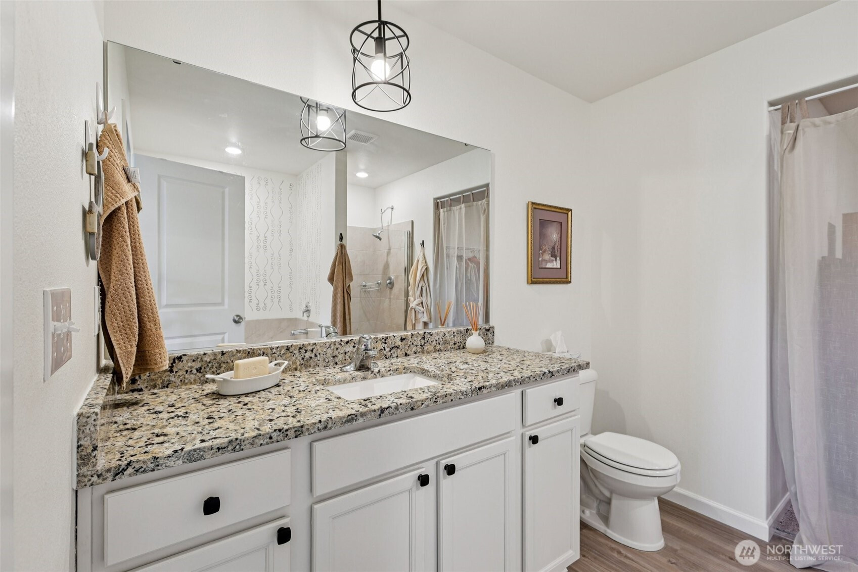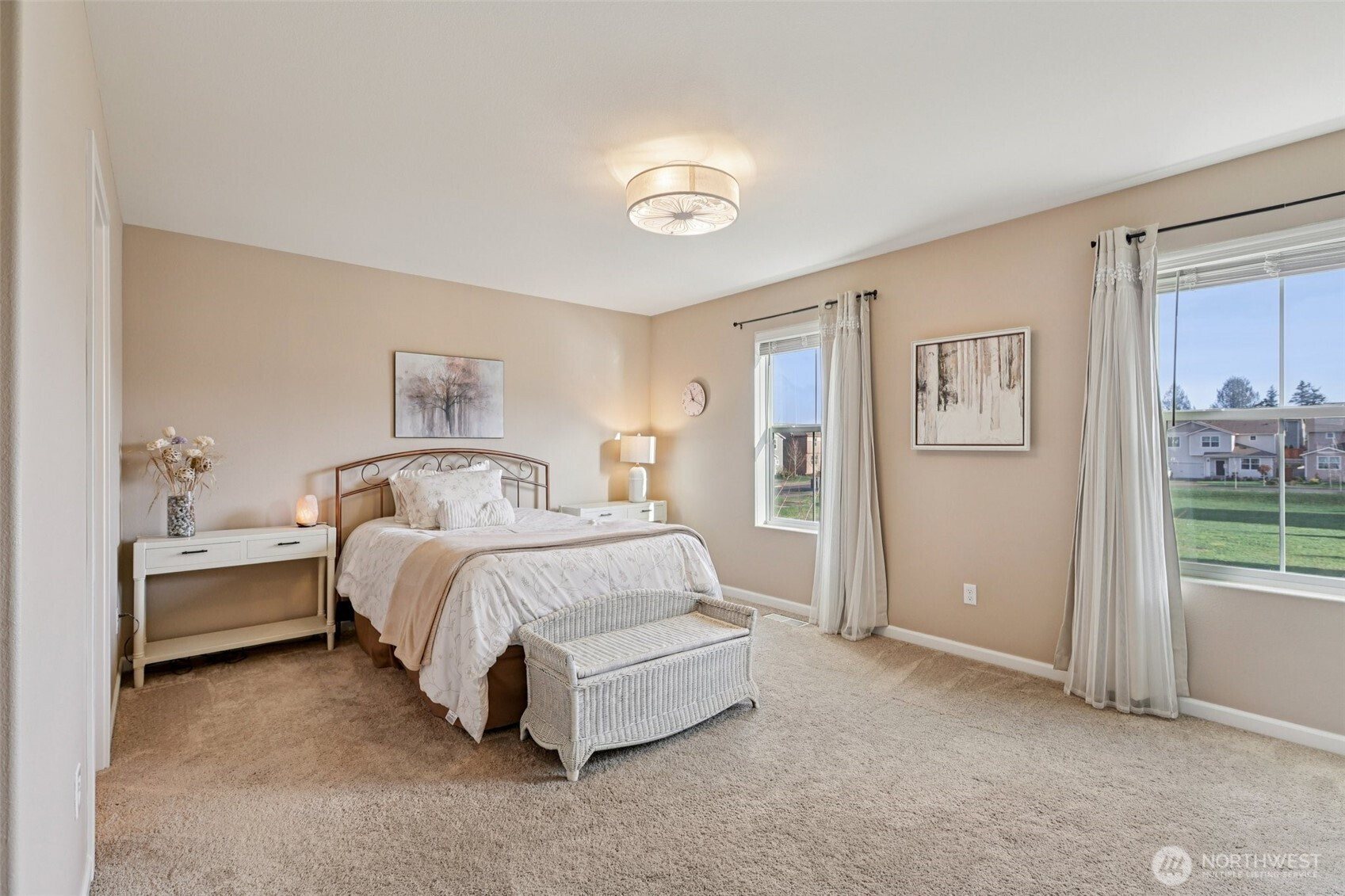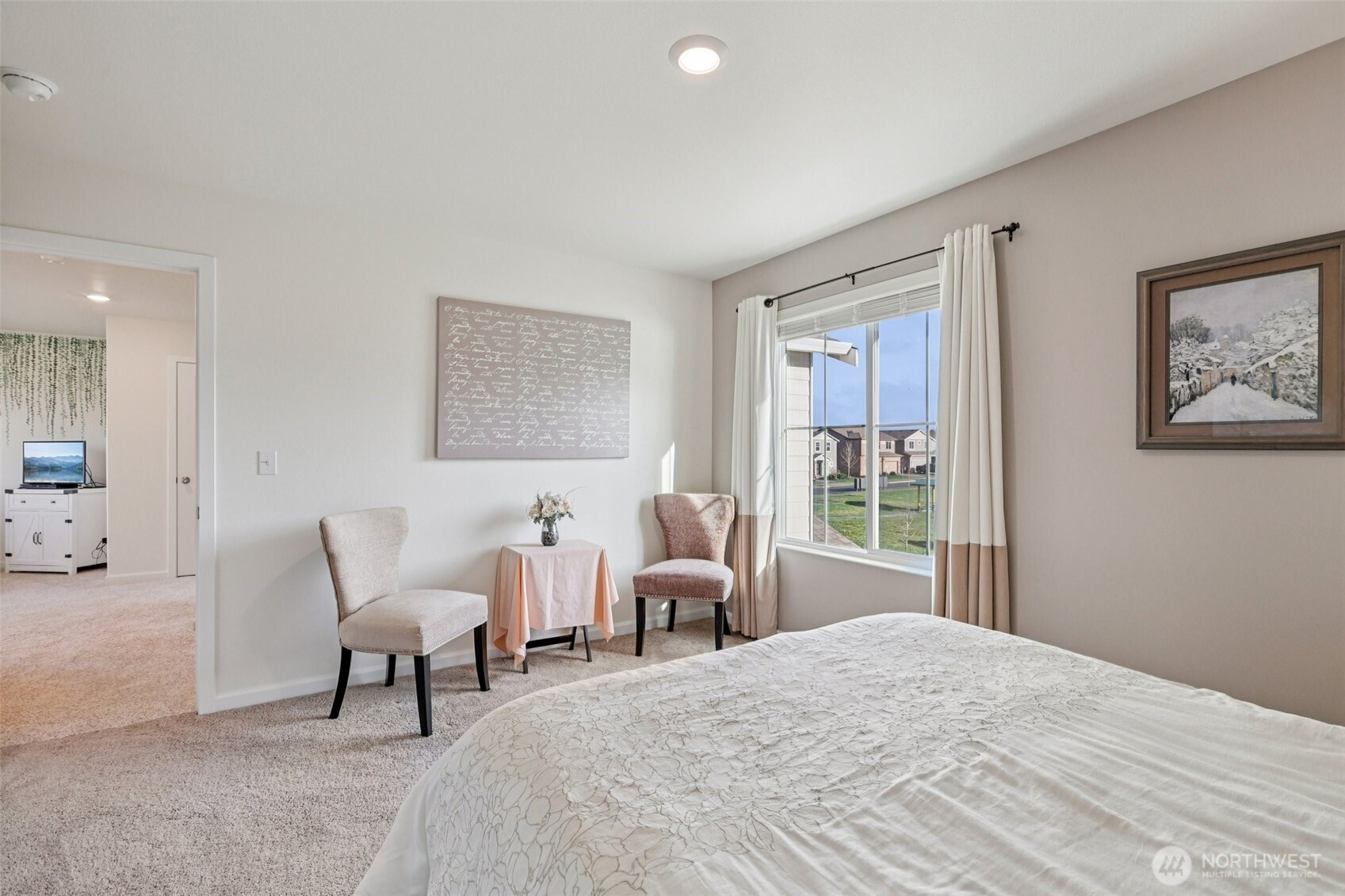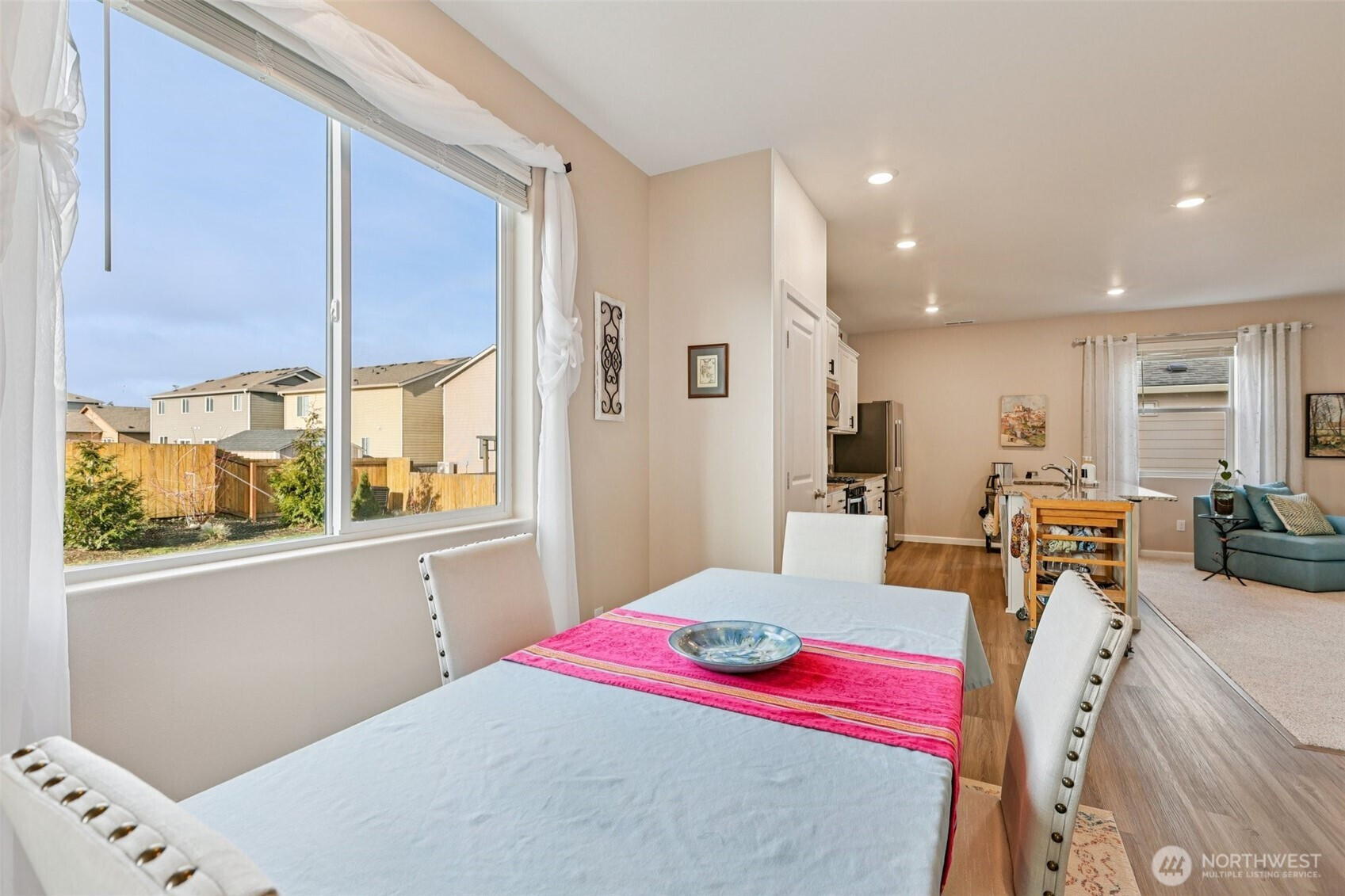 Welcome to this beautifully maintained home, just three years old and thoughtfully cared for by its original owner. The inviting layout includes a comfortable separate dining room and a kitchen with gas cooking and a convenient pantry. Custom shelving in the under-stairs closet adds smart storage, while upgraded carpet enhances the living room, stairs, and loft. The loft offers a flexible space for many uses. The spacious primary bedroom features a generous nook, a large bathroom with soaking tub and new light fixture, plus an oversized walk-in closet. Air conditioning, new ceiling fans, and established front and back landscaping complete this peaceful setting.