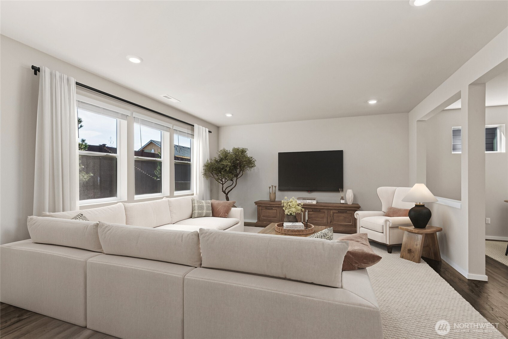 Meadow Hawk in Stanwood. Welcome to the Ballard plan by D.R. Horton at Meadow Hawk. This new home Stanwood community features parks, playgrounds, picnic tables, streetlights & tree lined sidewalks. The Ballard has all of the components that make this floorplan large enough to spread out but also defined & useable. This home has light painted cabinets and laminate flooring on the main. The desirable main floor bedroom and ¾ bath adds great value to this home. Step out the back slider onto the patio with an expansive view of the huge community park and trails. Home includes A/C, 240Volt outlet in the garage, home automation package & timeless kitchen appointments such as island, stainless appliances, slab quartz counters & more. 1-2-10 year warranty. Buyers must register their broker on site at first visit, including open houses.