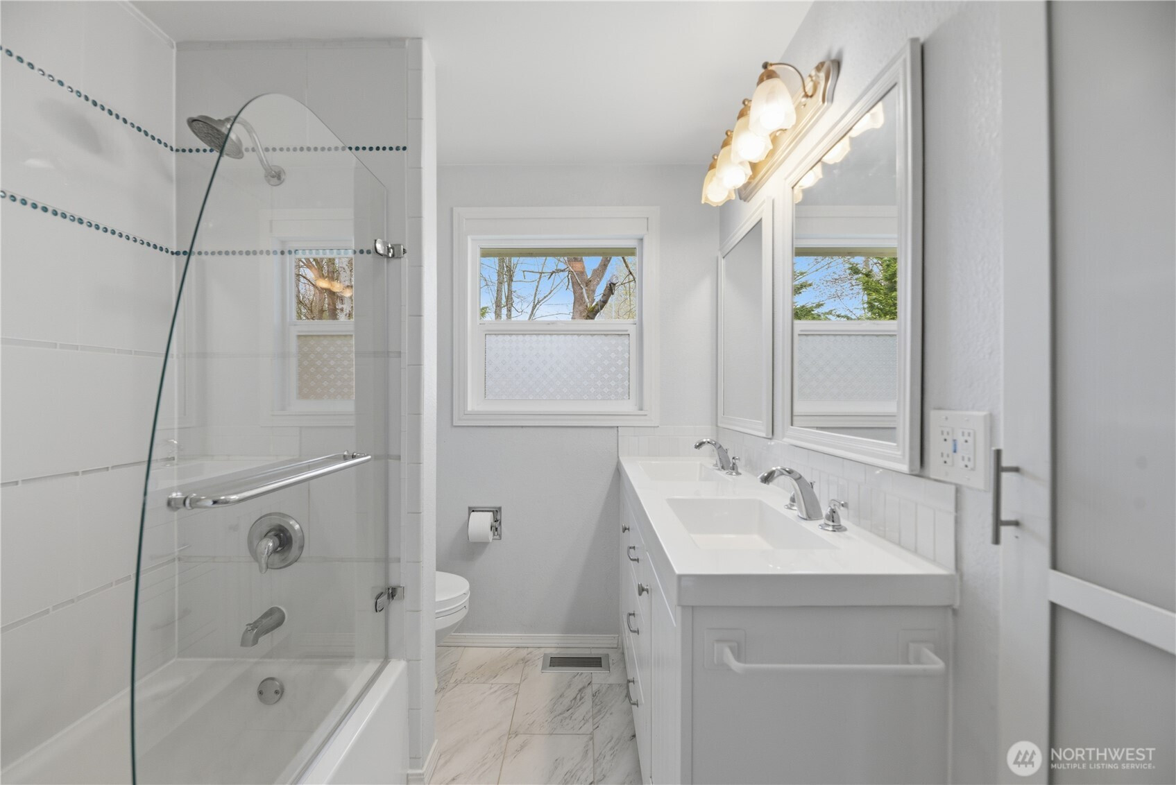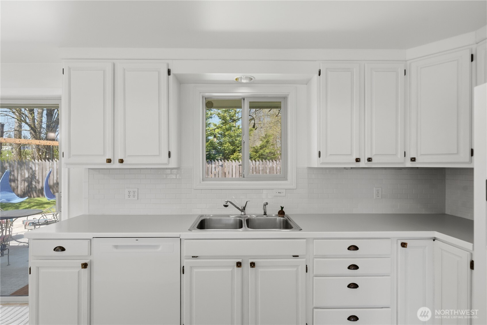 Tucked away on a quiet cul-de-sac in an established neighborhood and set back from the street, this refreshed 3-bedroom rambler offers privacy, natural light, and a surprisingly spacious feel. Backing to Shelton View Forest, the home enjoys a peaceful setting with mature trees and miles of nearby walking trails—with no HOA. Filled with warm natural light, the interior feels bright, inviting, and truly like home. Open living areas feature large updated windows and a seamless connection to the backyard. A beautiful brick fireplace with gas insert creates a cozy focal point perfect for relaxing evenings.The light and airy kitchen offers ample storage, a tile backsplash, and a spacious eating area, with sliding glass doors that open to the backyard for easy indoor-outdoor living and entertaining. A private gate provides direct access to Shelton View Forest’s 40+ acres of trails and natural habitat.The home features a spacious primary bedroom, a well-appointed bath with double vanity, air conditioning for year-round comfort, and a new roof (March 2026).Exceptional parking includes a garage, double driveway, and space for multiple vehicles, RV, or trailer made even better with no HOA. An oversized shed and versatile side yard offer added flexibility for storage, hobbies, or future use. Located in the highly regarded Northshore Schools and near Shelton View Elementary. Enjoy single-level living, a private yard, and the freedom of owning your own space.