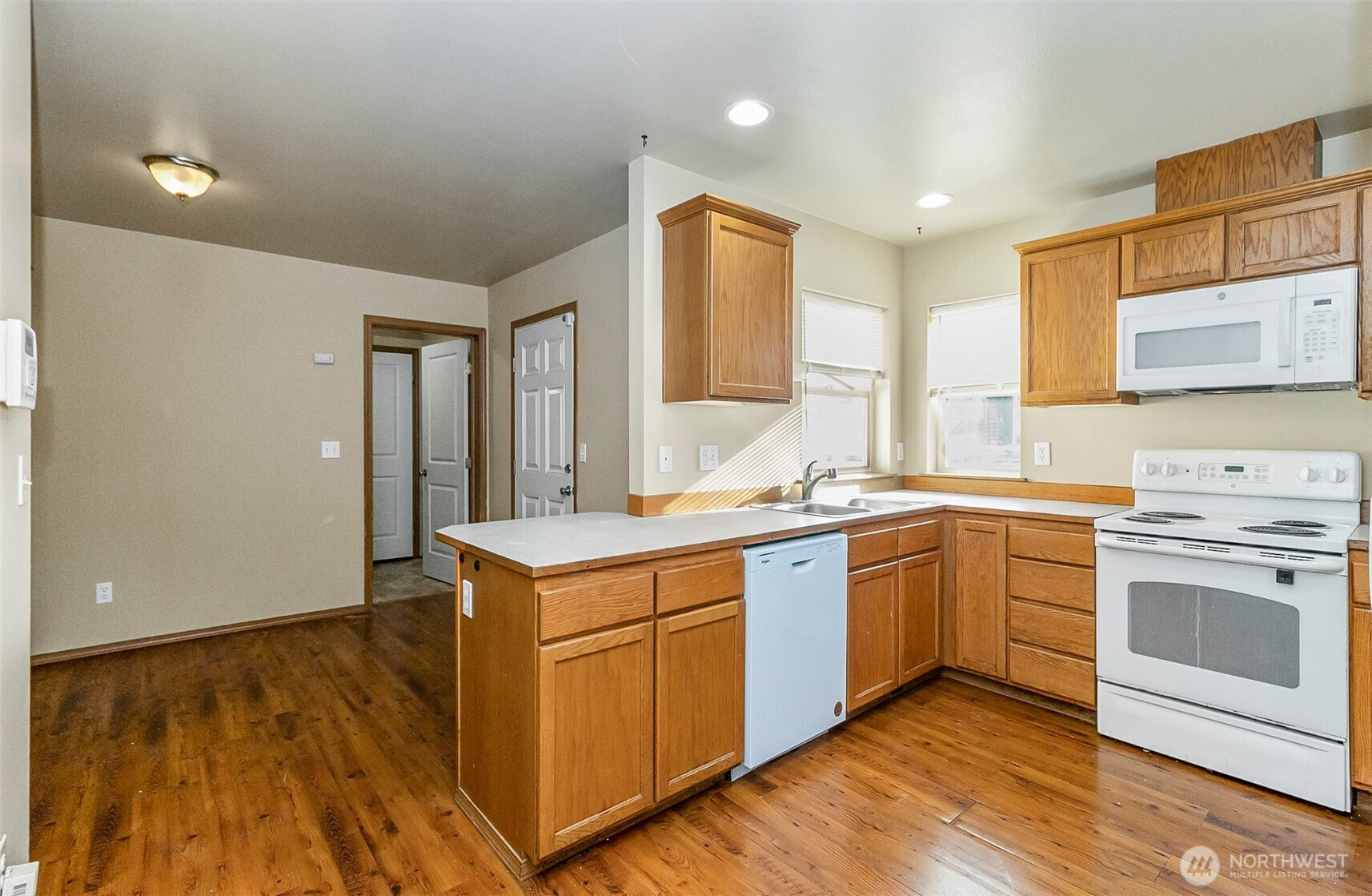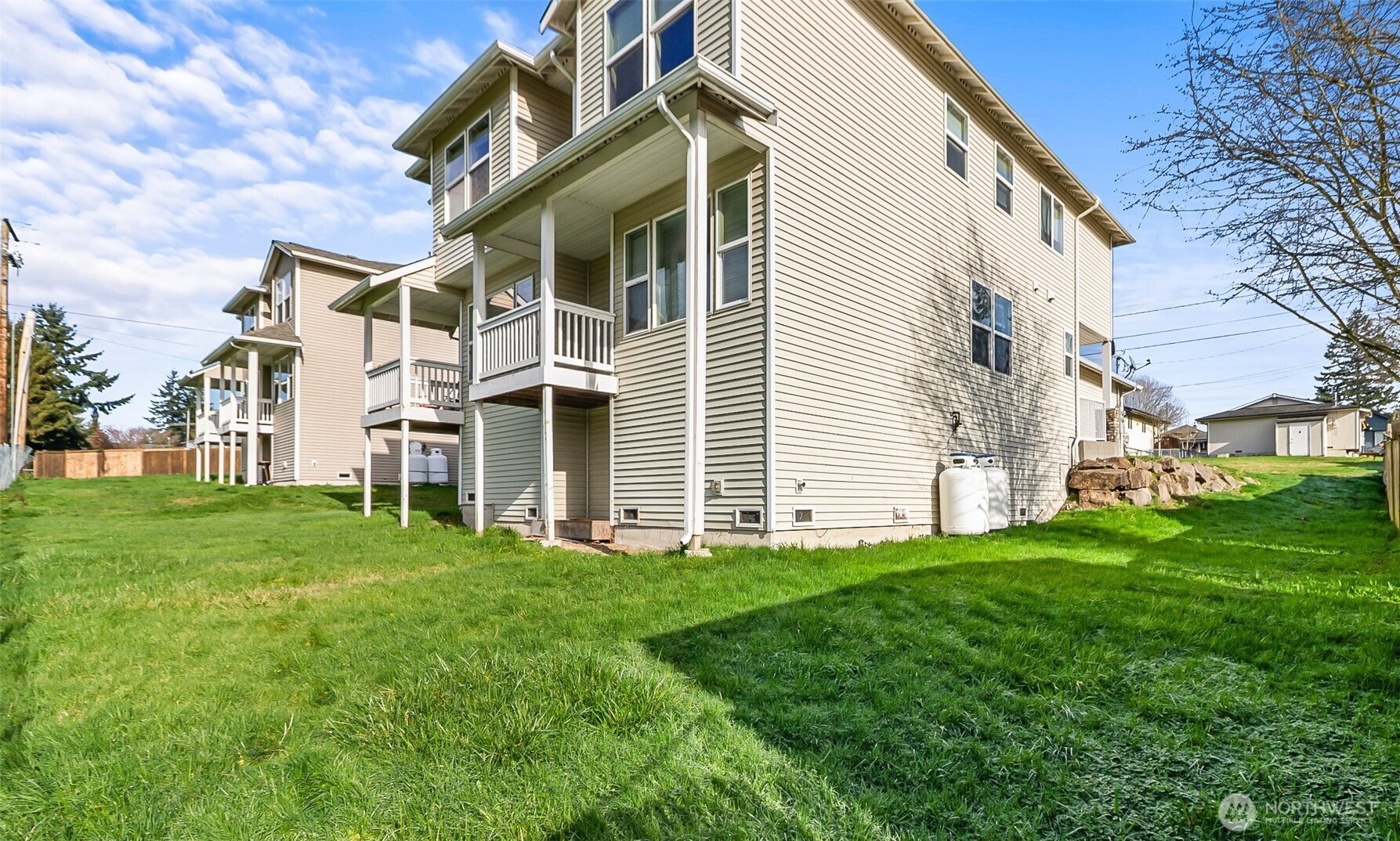 Corner unit with the comfort and feel of a standalone home. The open-concept main level offers a spacious kitchen, dining area, and living room, along with a full-size washer and dryer in a dedicated laundry space and a well-appointed powder room. The upper level includes a generous primary bedroom, two additional bedrooms, and a full guest bath. Ideally situated near I-5, shopping, and everyday conveniences. Wiggums Hollow Park sits just beyond the backyard, providing a peaceful natural backdrop and easy outdoor enjoyment. No HOA.