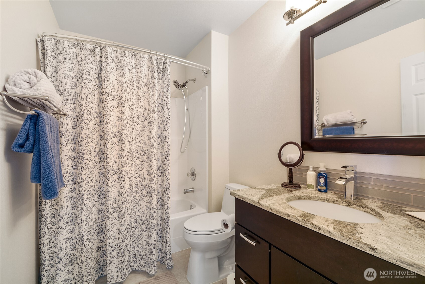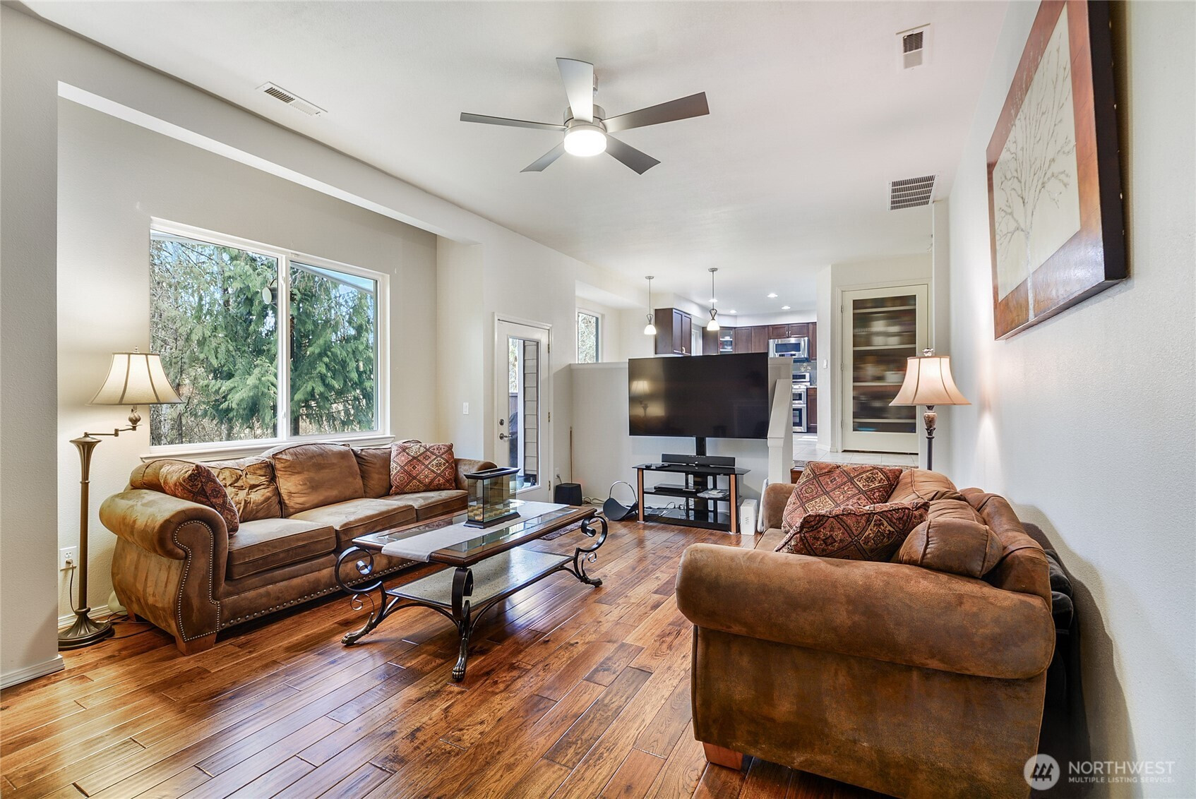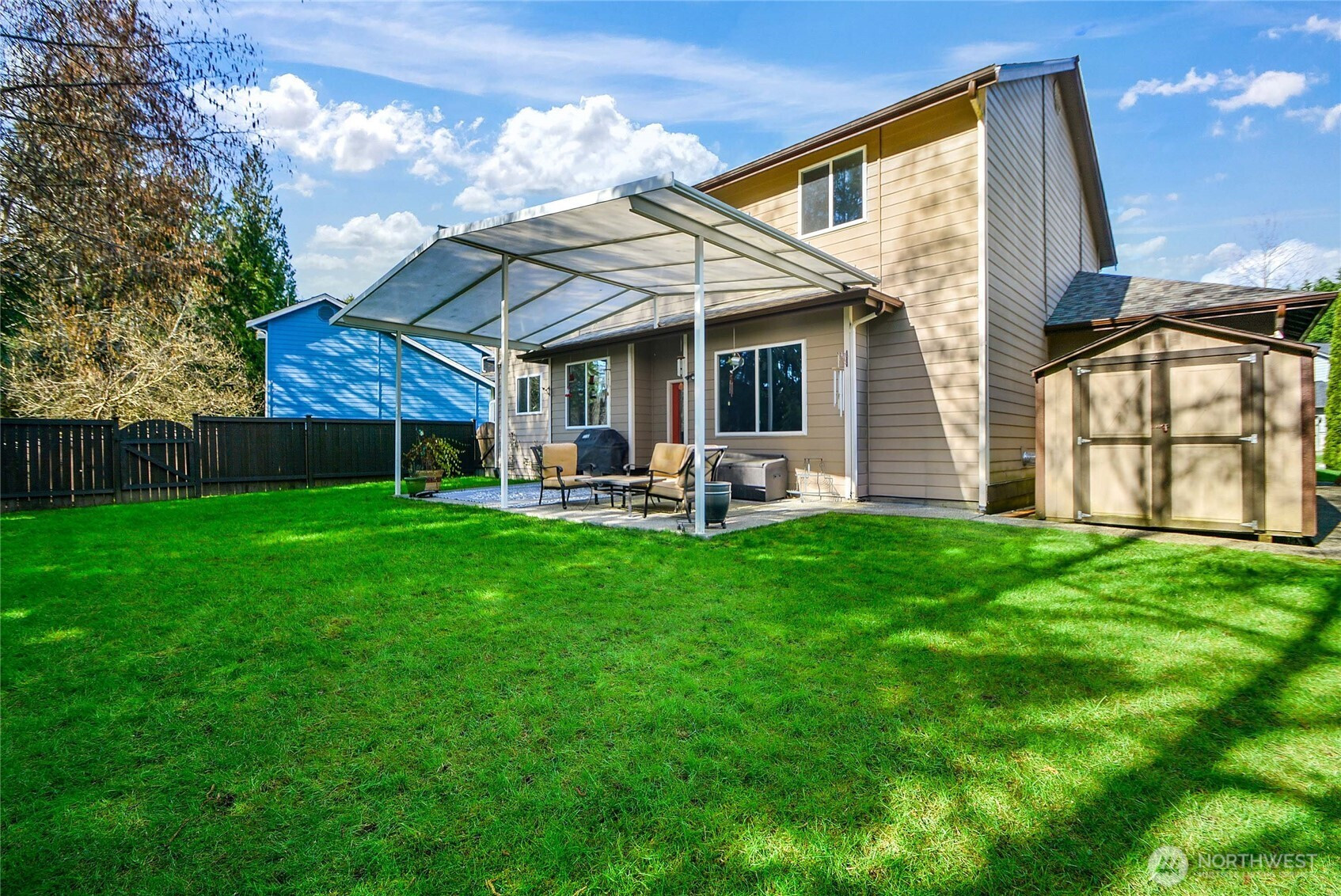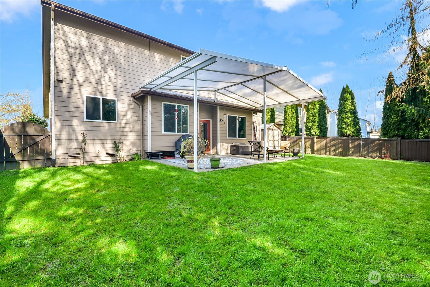 This welcoming 2 story home offer the perfect balance of comfort, space and everyday convenance with 4 bedrooms and 2.5 baths. The layout features primary bath with heated floor and towel racks and walk in shower. Ceiling fan in primary bedroom. Kitchen has soft close cabinets, granite counter and sink, double electric ovens with gas range and tile floor opening onto family room with gas fire place and engineered wood floor. Out back is a 12 foot by 28 foot gabled patio cover with green house affect opening onto large open space. 3 car garage has outside parking for 6 cars. The roof was redone August 2025, windows installed June of 2023 and hot water heater 2020. The established neighborhood offer a peaceful feel with walking trails minutes to parks shopping dining and bus routs all within the Lake Stevens school district. Schedule showing and experience it for yourselfd.