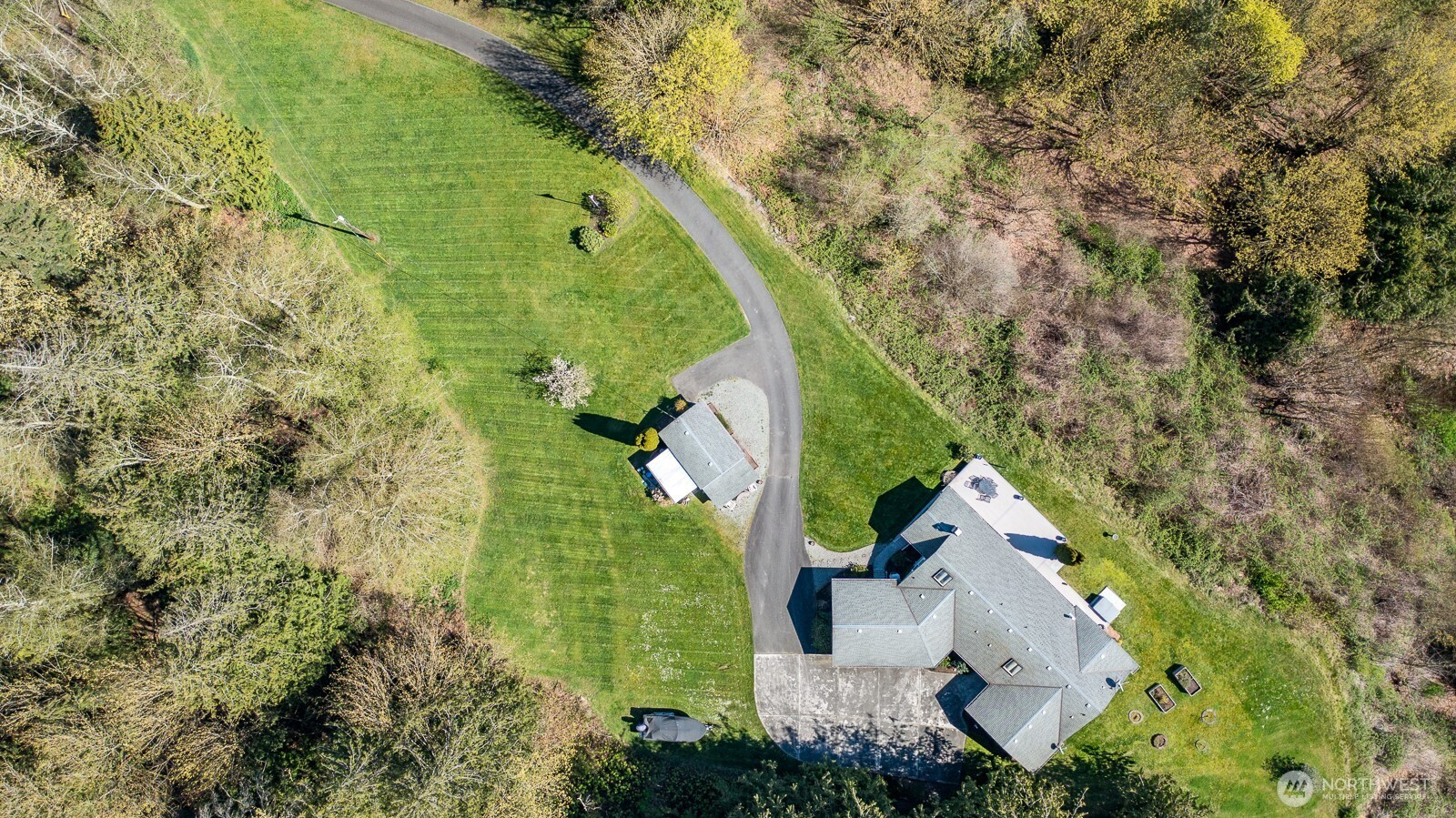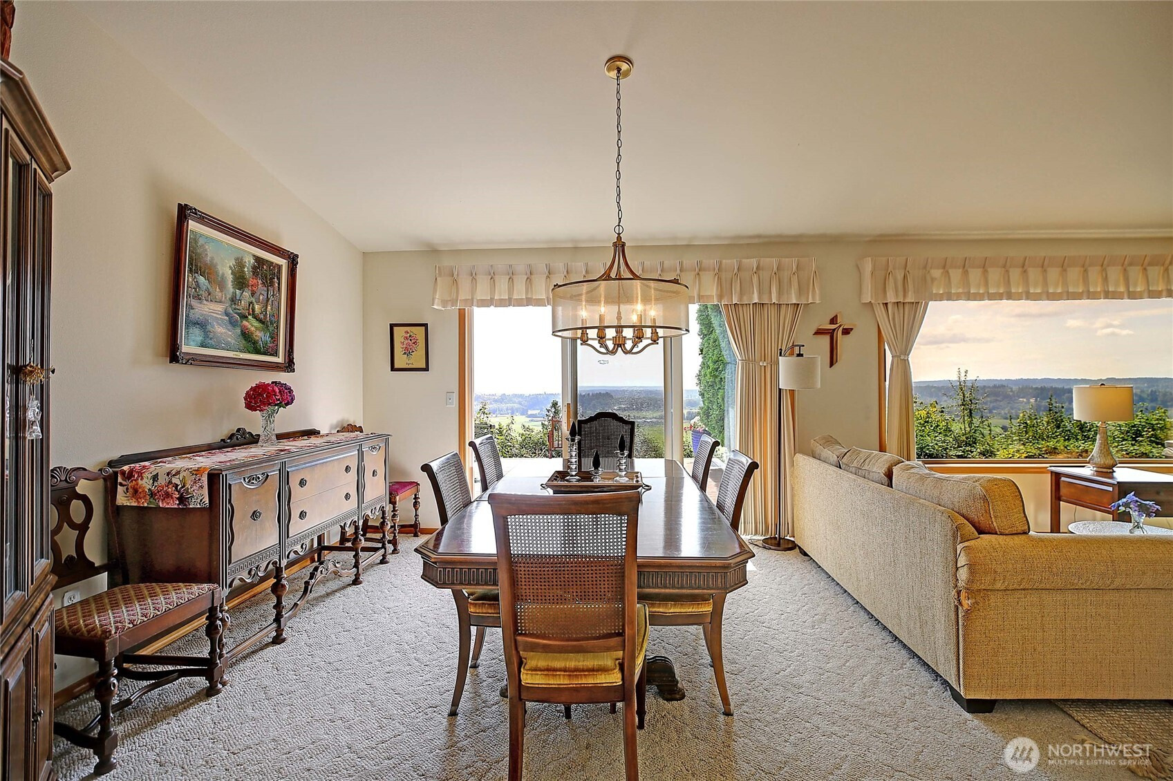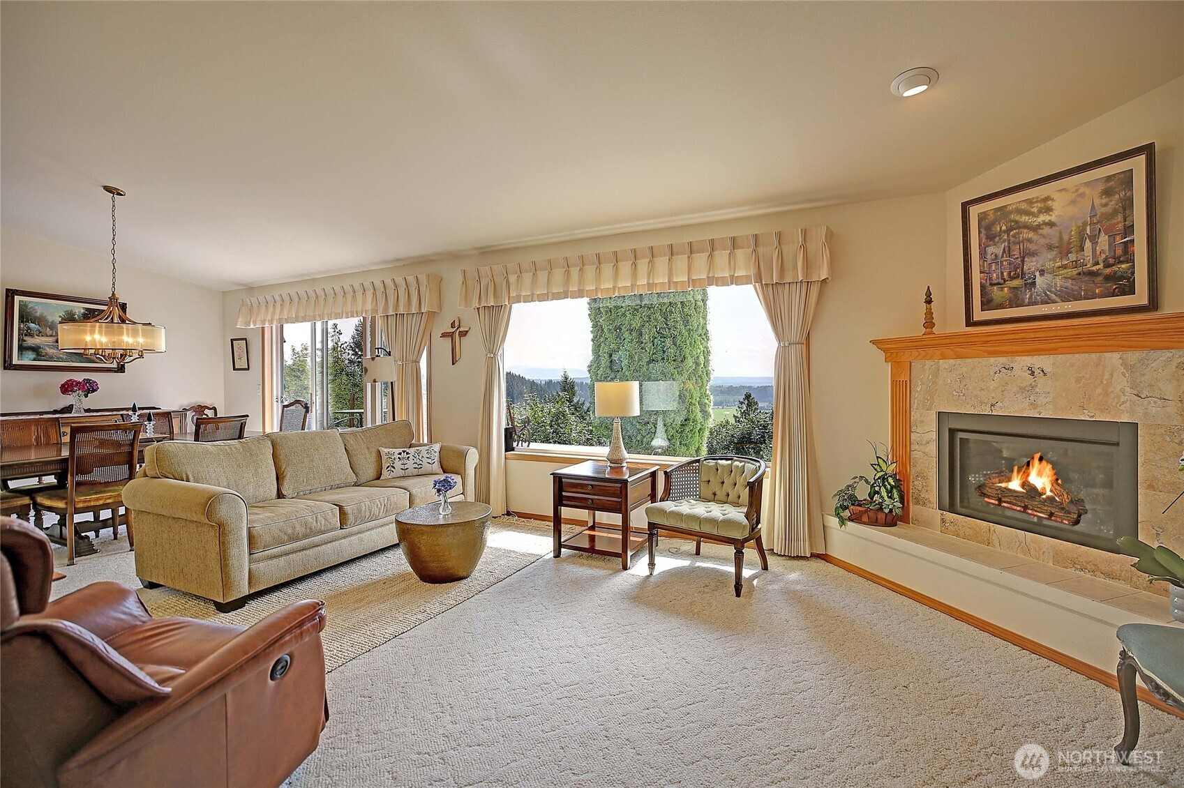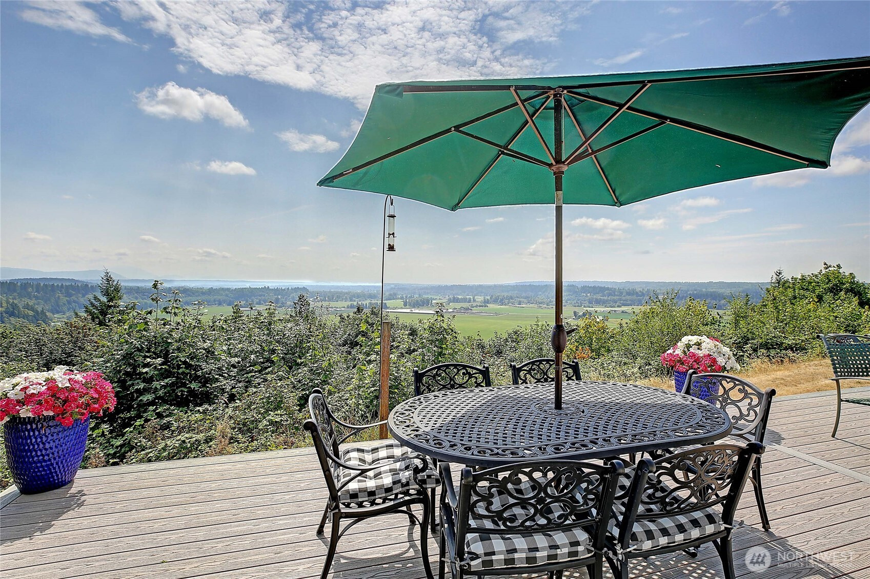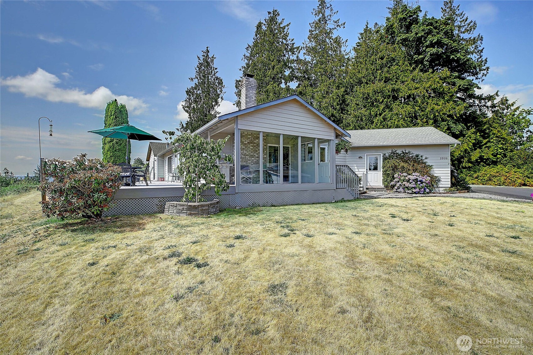 Perched on a stunning bluff with sweeping views of the Cascade Mountains and the picturesque Stillaguamish Valley, this exceptional 3-bedroom, 2.5-bath rambler offers the perfect blend of privacy, beauty, and convenience. Set on 5 acres within a gated community, the home is filled with natural light thanks to expansive windows that frame seamless, breathtaking scenery from nearly every room. Open concept dining room and great room with cozy gas fireplace and slider door opening up onto back deck perfect for large gatherings and BBQs. Home features an additional wood burning fireplace in living room off of the kitchen. Enjoy indoor-outdoor living with a large deck, inviting partially enclosed sunroom, and relaxing hot tub—ideal for taking in the peaceful surroundings. The property also features a 3-car garage with plenty of storage, paved driveway, and multiple sheds and outbuildings for added versatility. All this, just minutes from I-5, making for an easy commute without sacrificing tranquility.