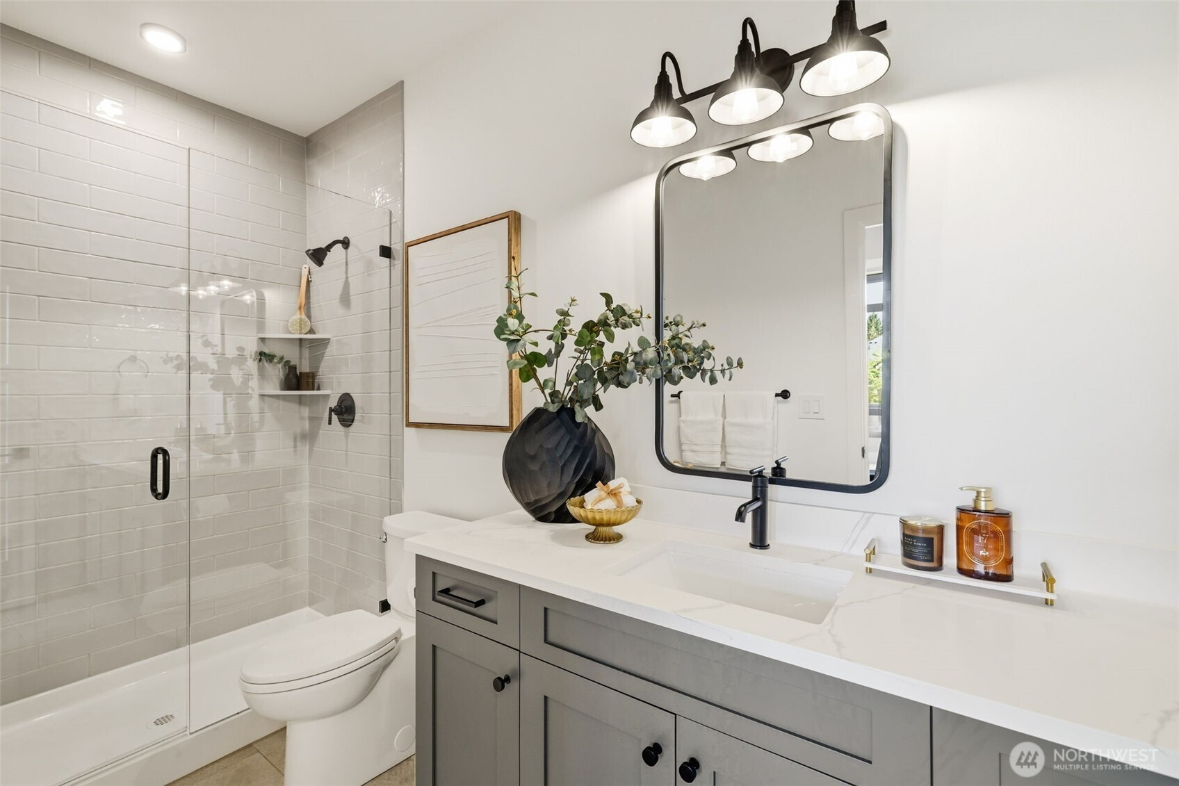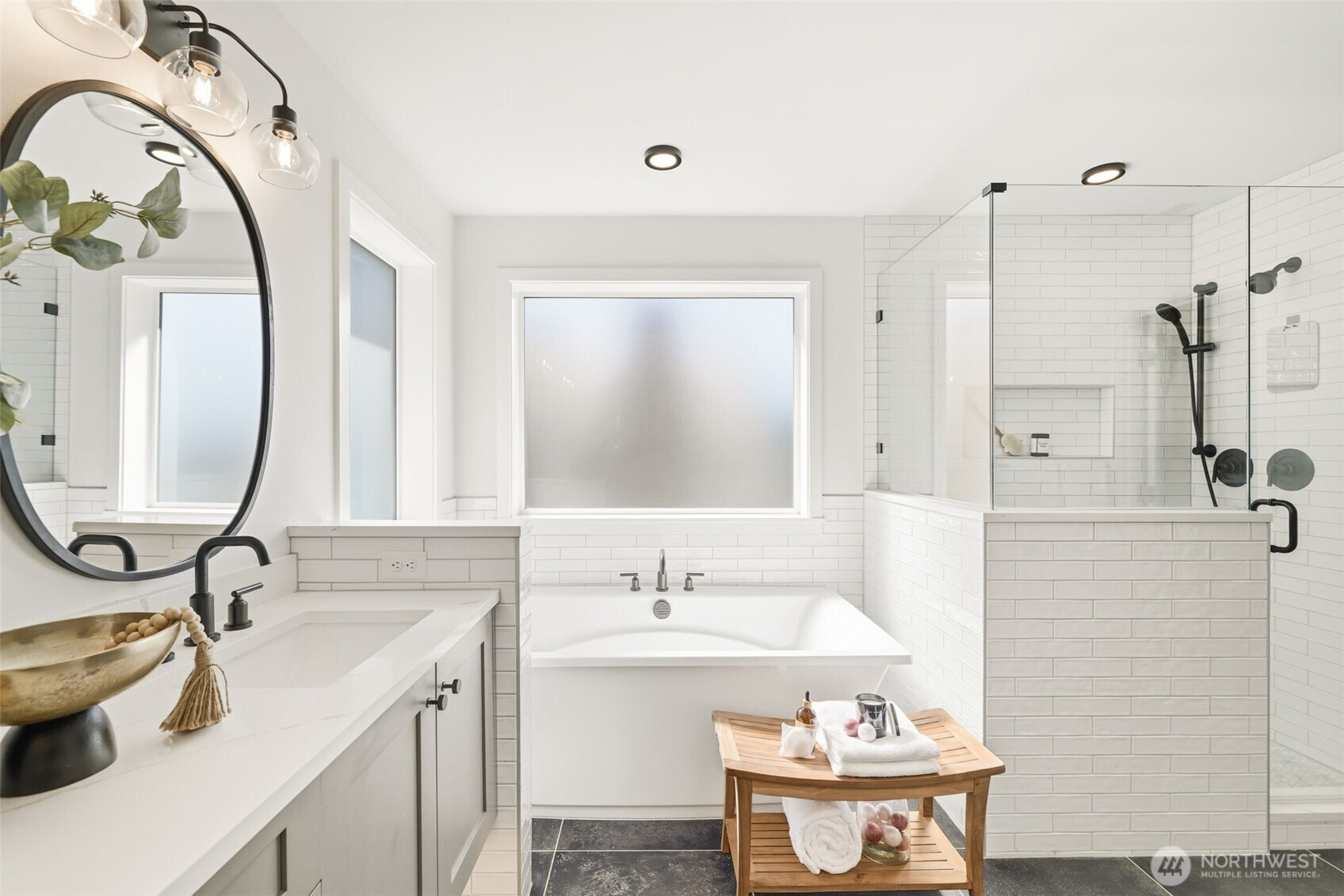 Do you love new construction vibes —but not the price tag? Then This is the house for you. Welcome to this better than new home in the heart of Brier that is sitting on a spacious 1/3 of an acre lot. You will be wowed from the moment you walk in welcomed by this 2 story foyer, stunning Designer kitchen with high-end quartz countertops, high-end SS appliances, oversized island, and walk-in pantry. You will enjoy this Open, airy living space with a cozy gas fireplace, hardwood floors throughout main level & covered patio and peaceful wooded views. And with Over $65,000 in seller’s upgrades everything is already done for you — central A/C, epoxy garage floors, EV charger, smart switches throughout the home, heated bathroom floors and a fully fenced updated backyard. With 5 bedrooms, including a guest suite on the main level, 3 full bathrooms, a home office, and a bonus space, there is room for everyone! Only Minutes to I-5 and 405 and a close proximity to upscale restaurants and your favorite coffee shops! This is brier luxury living at its best, the lifestyle you’ve been waiting for. Pre-inspected & ready to move in!
