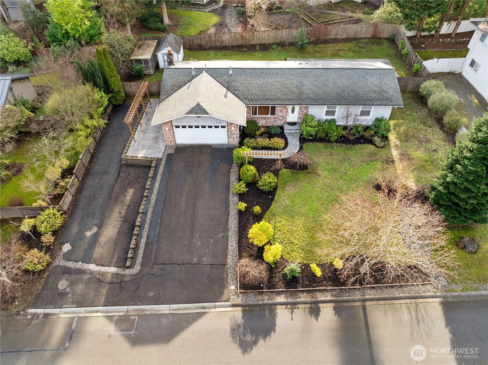 Prime location in sought-after Brier, conveniently located to I-5, transit center, Alderwood Mall, schools and parks. Enter this charming single-level home and find vaulted ceilings, gleaming floors, and a beautifully remodeled kitchen with stainless steel appliances. All appliances stay. Three bedrooms including primary suite with updated ensuite bathroom. Two additional bedrooms and full guest bathroom. Open living room, plus family room with gas fireplace and access to fully-fenced backyard. Backyard retreat is complete with entertainment deck and large patio that can double as a sports court. Shed for additional storage, plus dog run. Two-car attached garage and ample driveway parking, plus additional RV/boat parking. Edmonds School District.