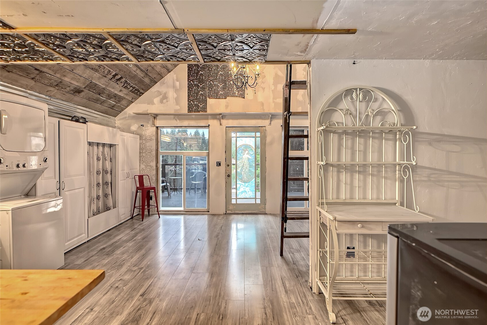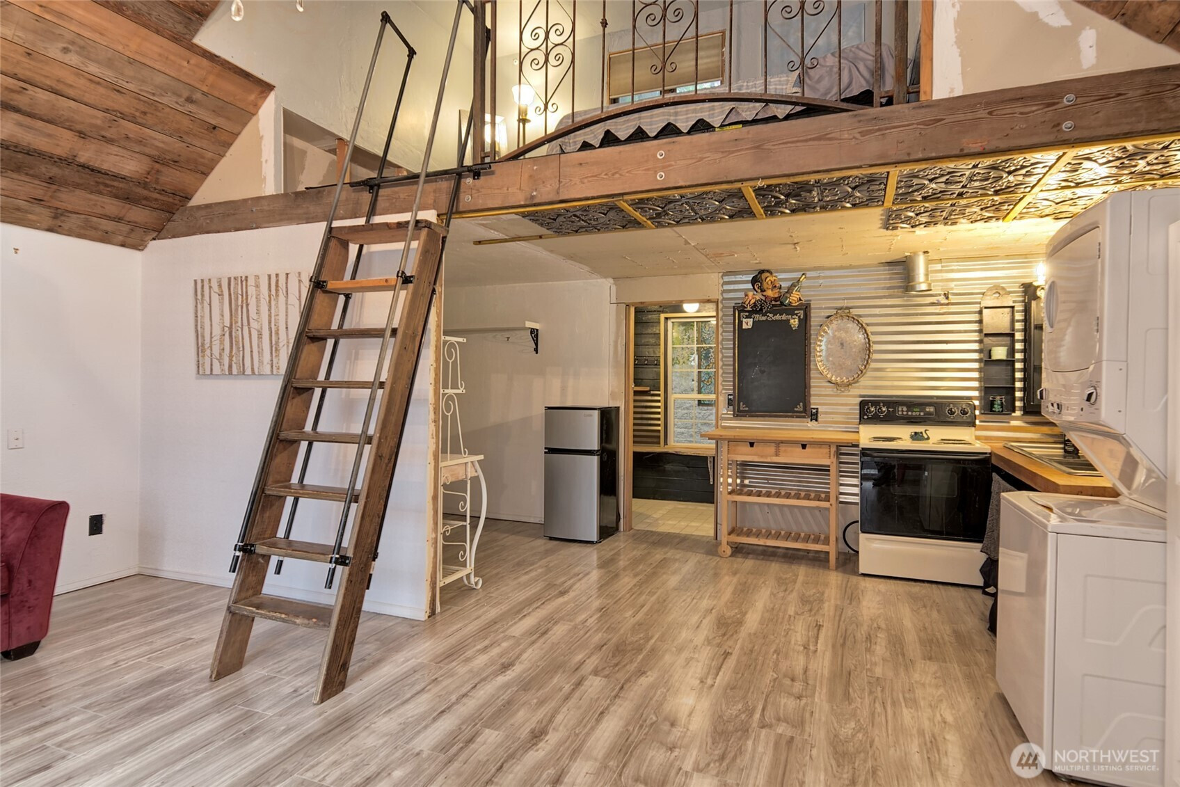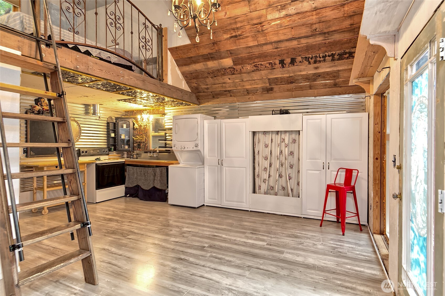 Better than a Condo - Escape the ordinary & embrace a stress-free lifestyle in this charming tiny home, offering spectacular views of Crabapple Lake! Forget the confines of a condo—this unique tiny home provides all the benefits of effortless living with no HOA. Relax with the Stunning Sunsets at Crabapple Lake. Featuring an airy & open studio layout that seamlessly connects the great room & kitchen, creating a cozy & functional space w/ a lofted bedroom, bathroom and stack washer/dryer. Multiple decks & patios create a Gardener's Delight - the elevated property features beautiful, multi-level hardscaped beds, ready for your creative gardening projects. Possible Investment property/Short-term Rental? Close to shopping & medical. MUST SEE!