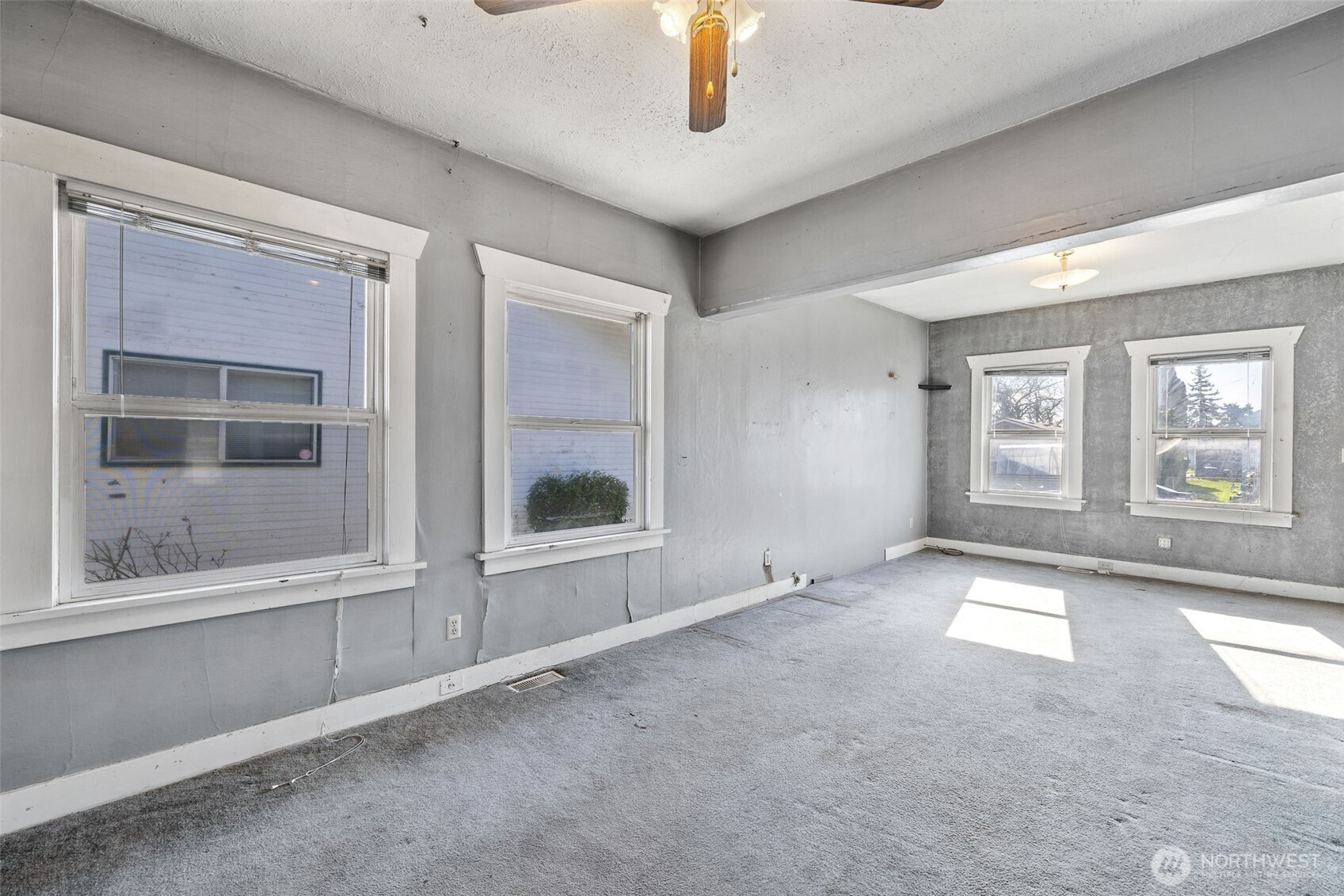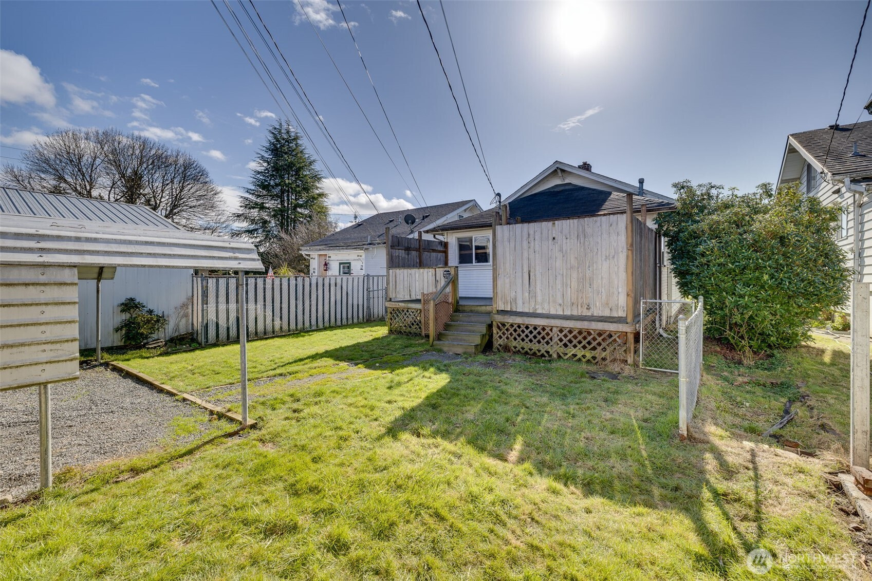Welcome to the Garfield Neighborhood in North Everett. This home is just minutes from Garfield Park, Henry "Scoop" Jackson Park and Legion Golf Course. Bring your imagination, creativity and paint brush. Bring this Charmer into the 21st Century. Just under 950 square feet with 2 beds and full bath. Enter into living and dining area of the home with tons of windows and natural light. Open kitchen with breakfast bar. Additional room adjacent to kitchen. Possible home Office. Full bath with updated cabinets. Large utility room with W&D hook up and sauna. Rear of home has access to large deck, back yard, garden shed, two car covered parking. Gated access to alley. Updates include roof, windows, gutters, water tank, sauna and cabinets. Window and door millwork is original. 100+ plus years craftsmanship. Everett has so much to offer with a vibrant downtown with shopping and dining. Lively waterfront with year round events. Accredited hospital and other amenities. Paine Field. Located with easy access to Southbound I-5. It's a great time to live and invest in Everett.