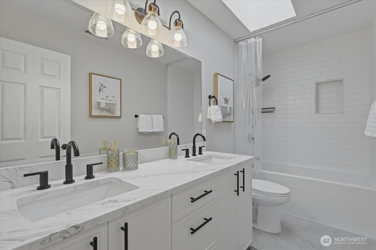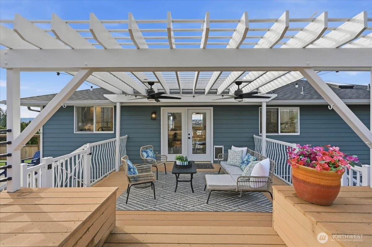 Welcome to one of Lake Stevens' most captivating vantage points – panoramic valley, slough, city, Sound and Olympic Mountain views with sunsets like you've never seen before! Set on a private .47-acre retreat, the grounds feature tranquil waterfalls, ponds, flowers, lush fruit and vegetable gardens with sprinkler systems and multiple outdoor gathering spaces including a breathtaking observation deck – an entertainer's paradise! No detail was overlooked in this impeccably remodeled home. Natural light pours into an open, airy layout designed to capture the horizon like living artwork. At the heart of the home, the chef's kitchen features custom cabinetry and lighting, an oversized island with quartz countertops and abundant storage. Sophisticated and thoughtful luxury touches elevate every space while maintaining warmth and livability. These qualities carry through to the spacious primary suite, which includes a walk-in closet, its own washer and dryer and a spa inspired 5-piece bath with coveted heated floors. The lower level offers a fully appointed mother-in-law suite with its own beautiful kitchen, separate laundry and an additional bonus room ideal for multi generational living, guests or flexible lifestyle needs. Enjoy the blend of privacy and convenience with easy access to Frontier Village, Hwy 9 and I-5. Positioned within the top-rated school district in Snohomish County, this home offers a truly extraordinary lifestyle!