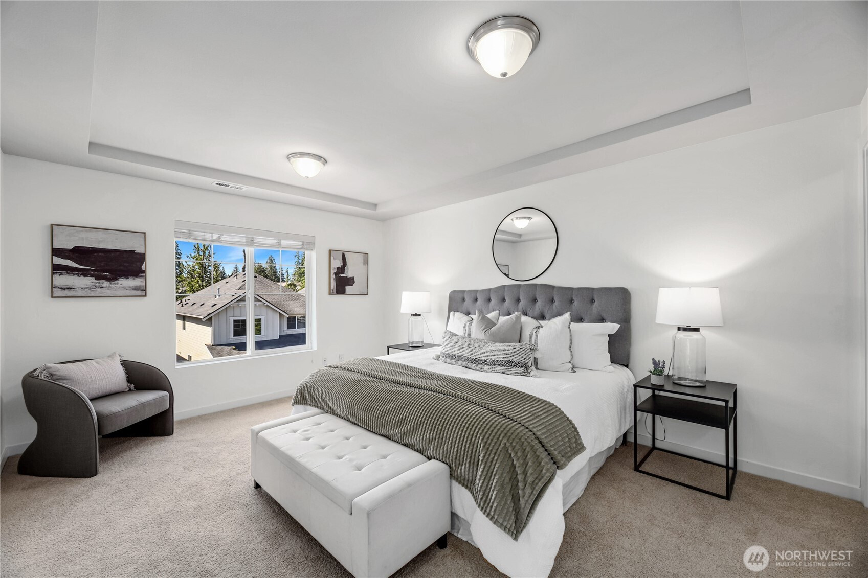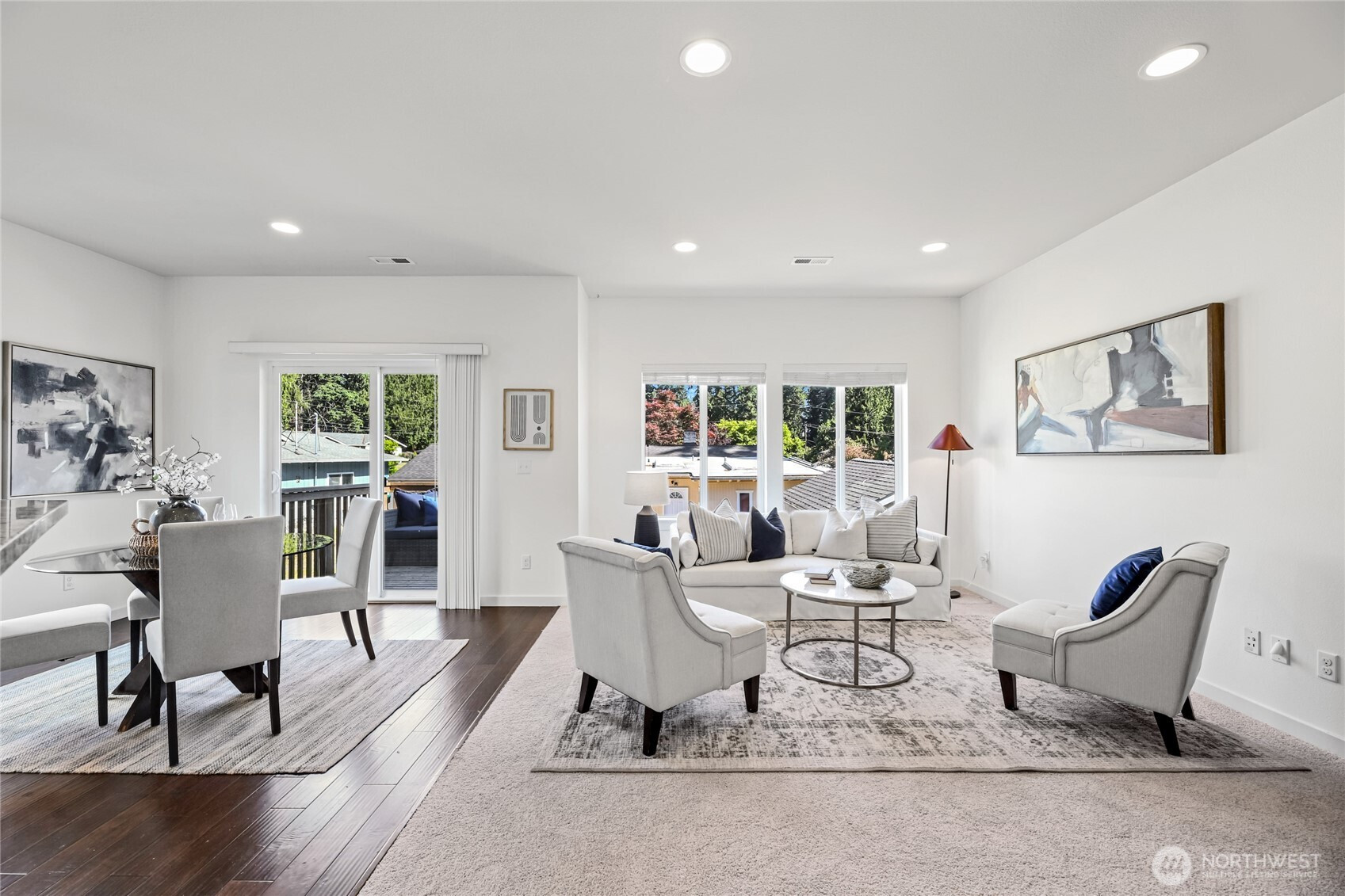 Commuter’s Dream + Turnkey Perfection! Quick access to I-5 & 405 and minutes to Alderwood Mall & Mill Creek Town Center - this location delivers. Vaulted ceilings make a strong first impression, while brand new carpet, rich wood flooring, and fresh paint mean zero work needed—just move in. Sleek kitchen with slab granite + stainless steel appliances opens to the main living space - ideal for entertaining or everyday life. Designer finishes throughout give the home a polished, elevated feel. Spacious primary suite with custom walk-in closet system. Large secondary bedrooms. Lower-level flex room = home office, gym, or 4th bedroom - your call! Oversized 2-car tandem garage + extra reserved guest parking = rare convenience. Deck off the kitchen and low-maintenance yard make outdoor living easy. A/C. Pre-inspected. Smart layout. Prime location. This one checks all the boxes.