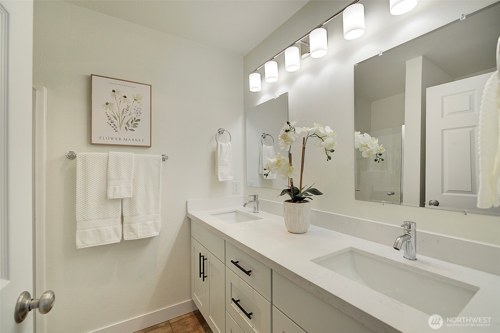 Beautiful remodeled and ready to welcome you home, this serene Townhouse, in desirable Wildwood, will check all your boxes! Main level, open floorplan features spacious living and dining area, with cozy fireplace, walkout patio and new flooring. Updated kitchen boasts gleaming quartz countertops, new stainless appliances, tons of storage and natural light! Upper level is a peaceful retreat. Find a huge Primary bedroom, boasting vaulted ceiling and double closets + En Suite bathroom & bright and spacious 2nd bedroom and full bathroom, with washer & dryer! New flooring, lighting, kitchen cabinets, countertops and appliances + more! Tandem garage and driveway parking, close to commuter routes/lightrail and Alderwood amenities and restaurants! Community features pool, hot tub, exercise room and clubhouse. No rental cap and pet friendly! Welcome home!