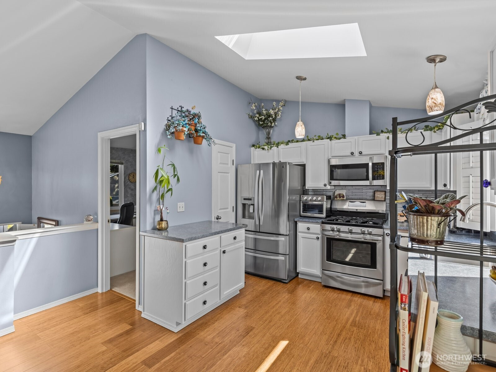 Just moments from Mill Creek Town Center, this Bothell home is on the market for the first time since it was built! Located in a quiet, peaceful neighborhood, you'll enjoy a spacious 1,570 square feet, 2 car garage, 4 bedrooms and 2.5 baths. Your vaulted entry welcomes you in with bright natural light and upstairs you'll find an incredible great room centered around a gas fireplace. This open layout has plenty of space for dining and entertaining, and flows effortlessly onto the deck where you'll have gorgeous mountain views on clear days. The kitchen is perfectly allocated with tons of storage and features white cabinetry, gas stove, and dreamy shutters that overlook your backyard. Rounding out this upper level is a convenient 1/2 bath, a guest bedroom, and your impressive primary suite complete with a 3/4 bath. Downstairs is 2 more bedrooms, a full bath with laundry, and a huge rec room ready for movie or game nights. Easy access to I5 and Bothell Everett highway make this beloved property the total package. Will you be the one to write this home's second chapter? Come check out the possibilities today!