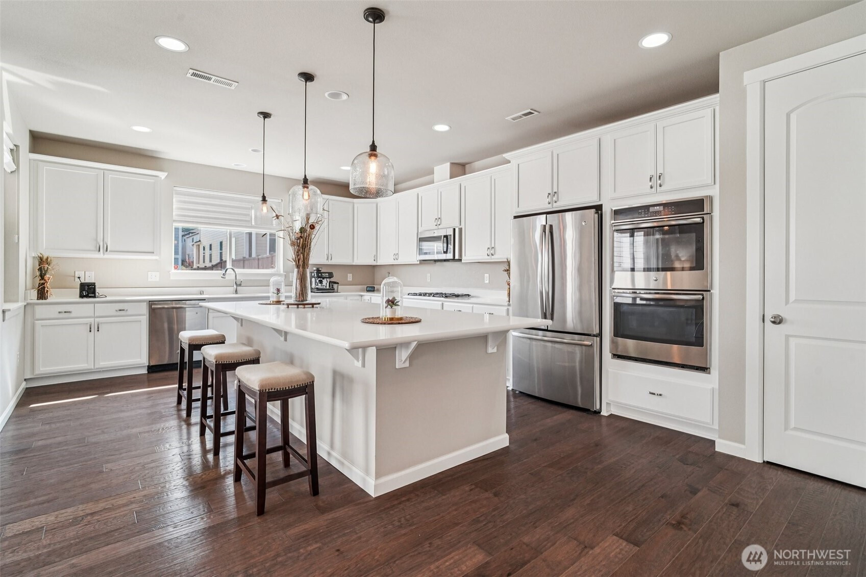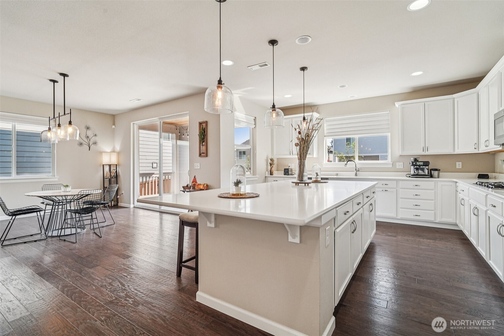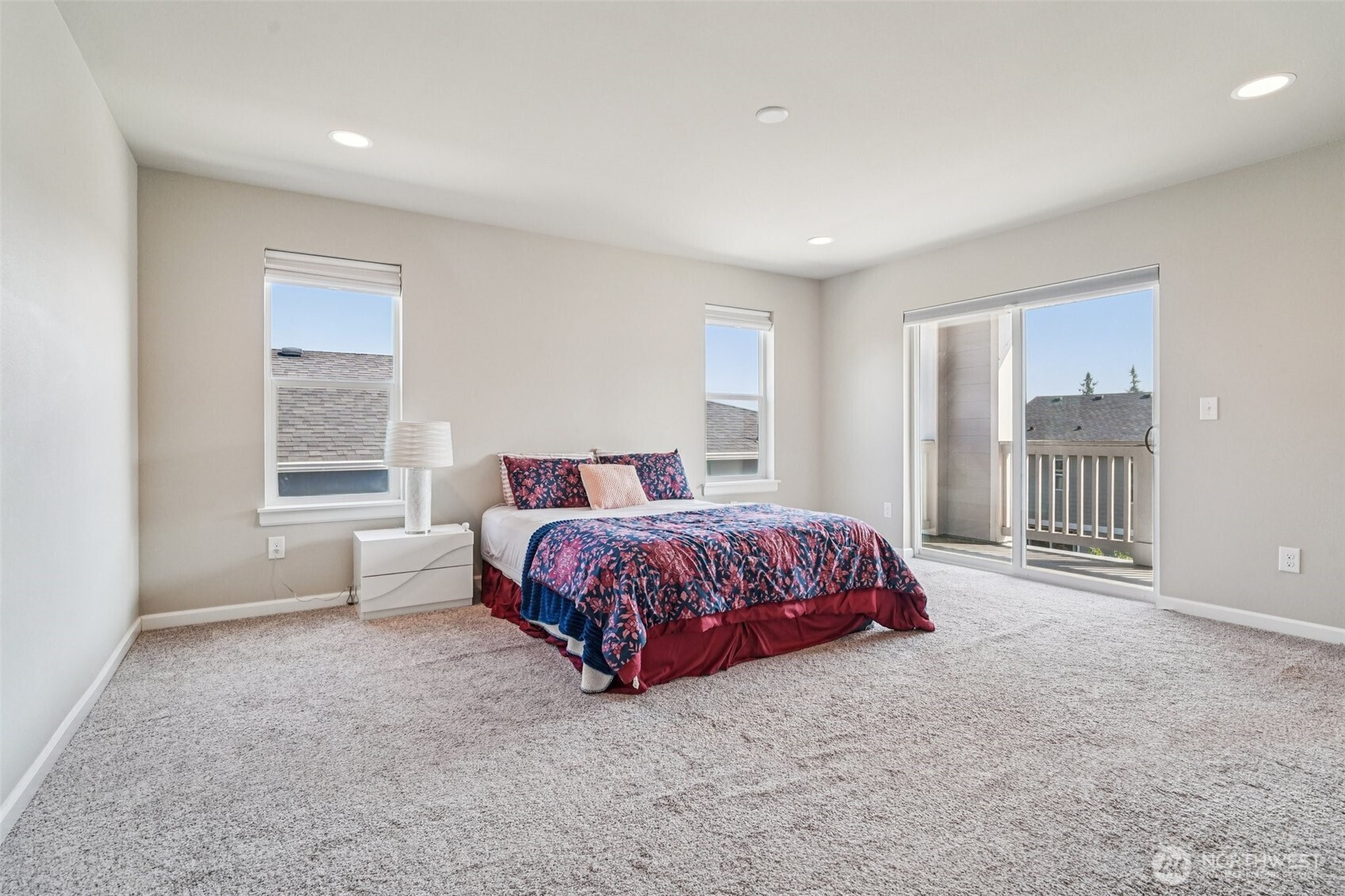 Turn-key and impeccably maintained, with A/C! This stunning modern home in desirable Bothell offers a like-new feel and beautiful mountain views. Built in 2018, the well-designed layout features 9’ ceilings on the main level, three bright bedrooms, and 2.5 baths. The pristine kitchen shines with double ovens, a large island, stainless steel appliances, and ample storage. An upper-level bonus loft provides flexible space for work or play. The primary suite includes a private deck, oversized walk-in closet, soaking tub, and large shower. Enjoy a fully fenced, low-maintenance backyard with an extended patio—perfect for relaxing or entertaining. EV charging. Convenient access to I-405 and I-5, plus nearby shopping, dining, and entertainment.