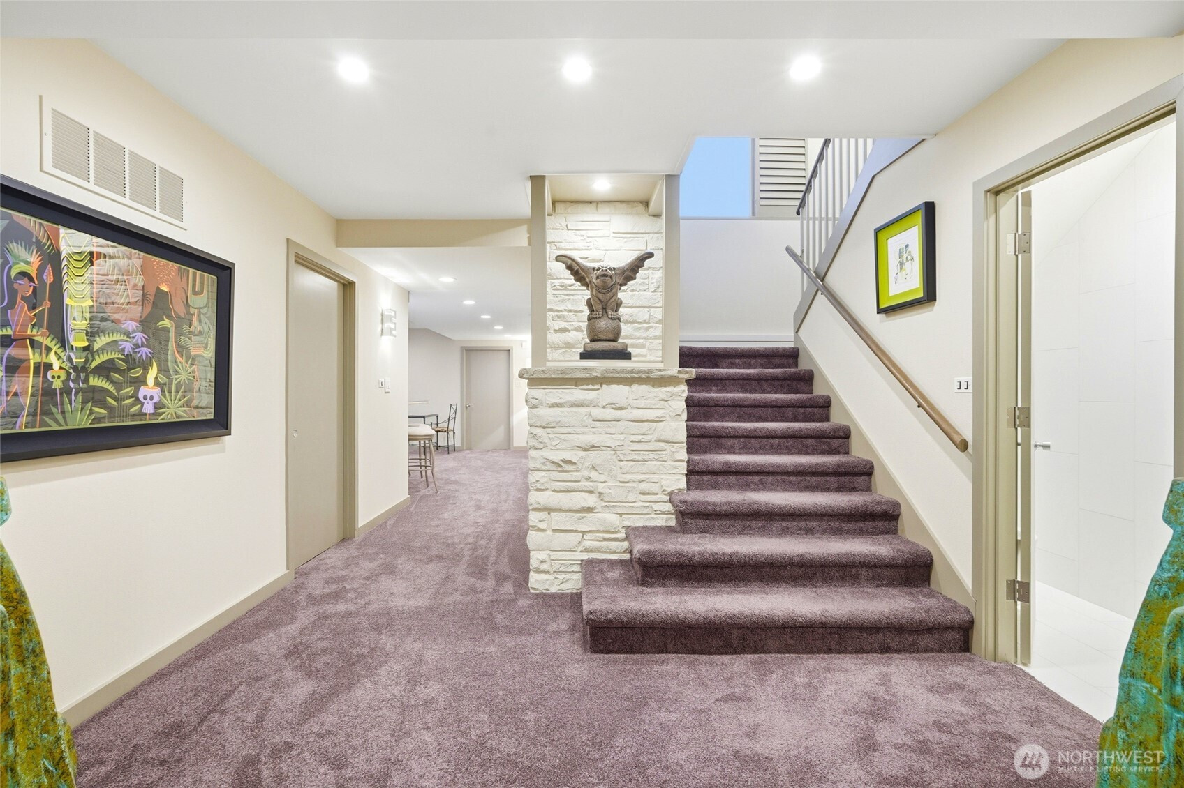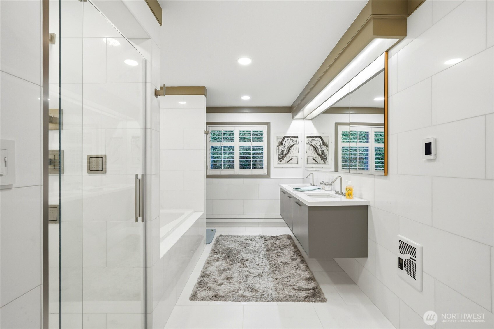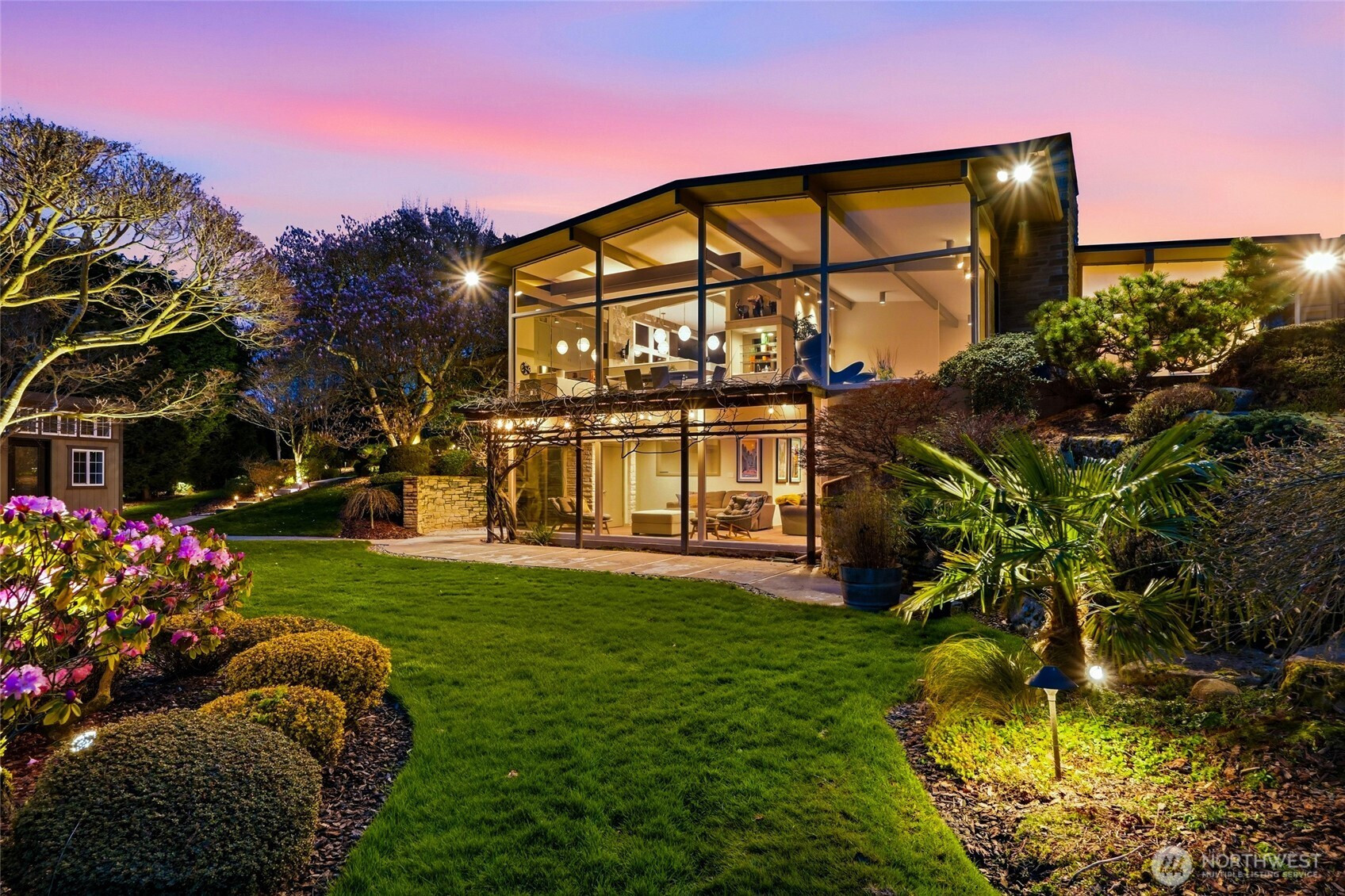 Spectacular views highlight this mid-century rambler with a daylight basement, ideally located in View Ridge on nearly two acres of private, serene grounds. Offering more than 3,500 square feet on the main level, this home showcases expansive living spaces, soaring ceilings, and stunning new floor-to-ceiling windows that capture the surrounding scenery. The updated kitchen features quartz countertops, new cabinetry, and modern finishes, while recent upgrades including a new roof, heat pump, and hot water tanks provide comfort and peace of mind. The spacious primary suite with view and beautiful bathroom completes the main floor retreat. Downstairs, the fully finished daylight basement adds another 3,500 square feet with a large rec room and wet bar that also enjoys views of Puget Sound. In addition, there is a second rec room, an exercise room, an office, a work shop, and abundant storage—offering excellent potential for a second living space. Two attached garages with four total stalls complete this exceptional property.