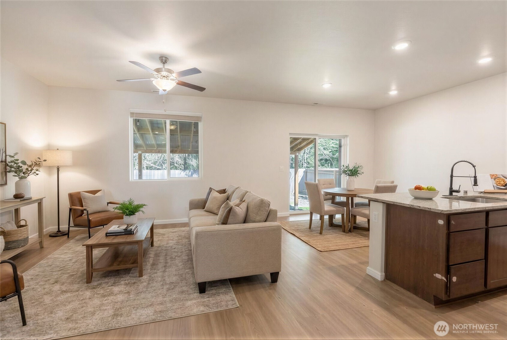 Priced to sell! Tucked into the natural beauty of Sultan, this charming 3-bedroom, 2-bath home offers the perfect blend of comfort, privacy, and modern living. Built in 2021, the 1,273 square foot layout feels fresh and functional, with an open-concept design that makes everyday living and entertaining effortless. Step outside to your covered back patio and enjoy peaceful mornings or evening gatherings, all while backing to serene wooded views that create a true sense of retreat. The fully fenced backyard is perfect for pets, play, or weekend BBQs, and with low HOA dues, you'll enjoy added value without the extra cost. Conveniently located with easy access to Everett and the greater Seattle area, this home is also just minutes from premier outdoor recreation featuring hiking at Wallace Falls State Park and the Sultan River Canyon Trail, extensive motorized trails in the Reiter Foothills Recreation Area, whitewater rafting on the Skykomish River, rock climbing near Index, and family-friendly outings at Osprey Park.