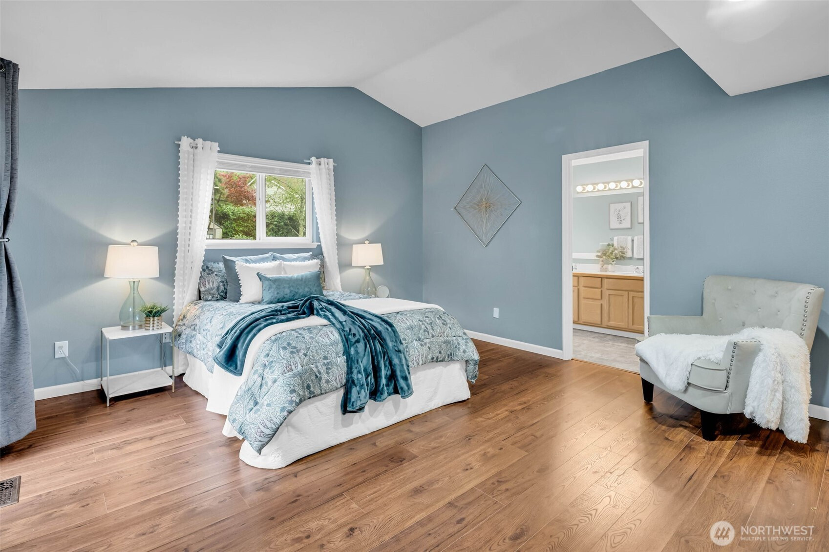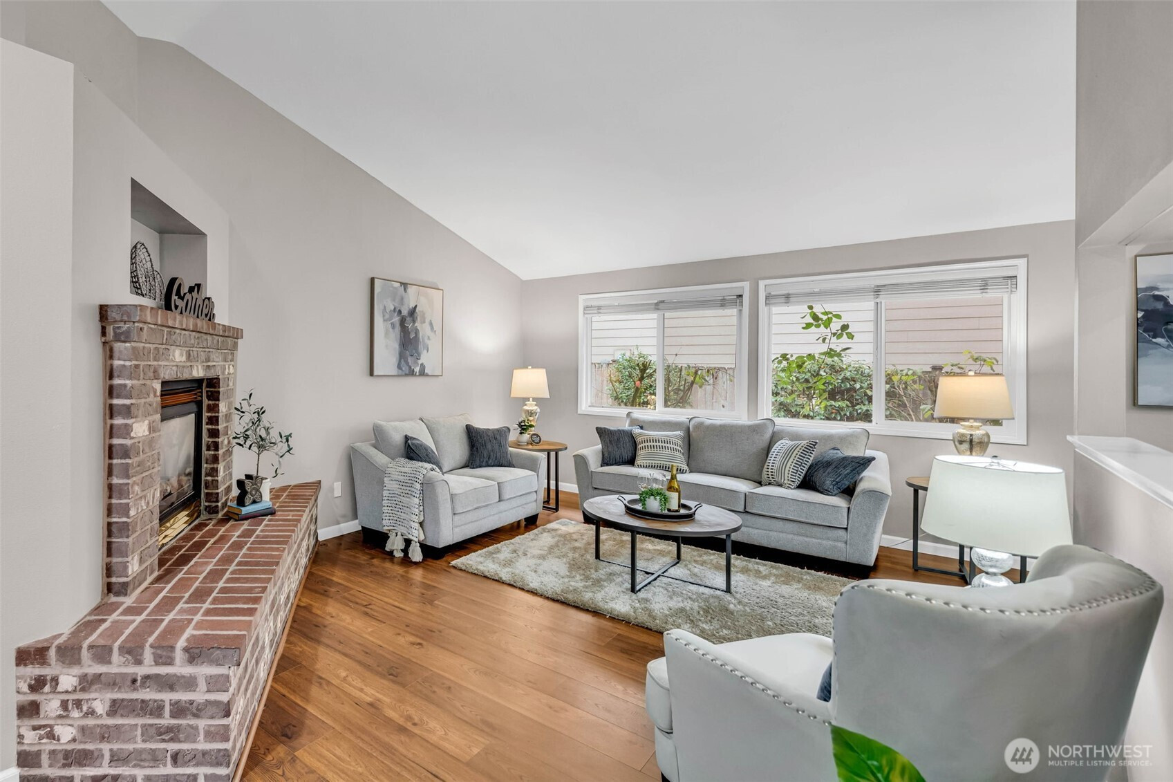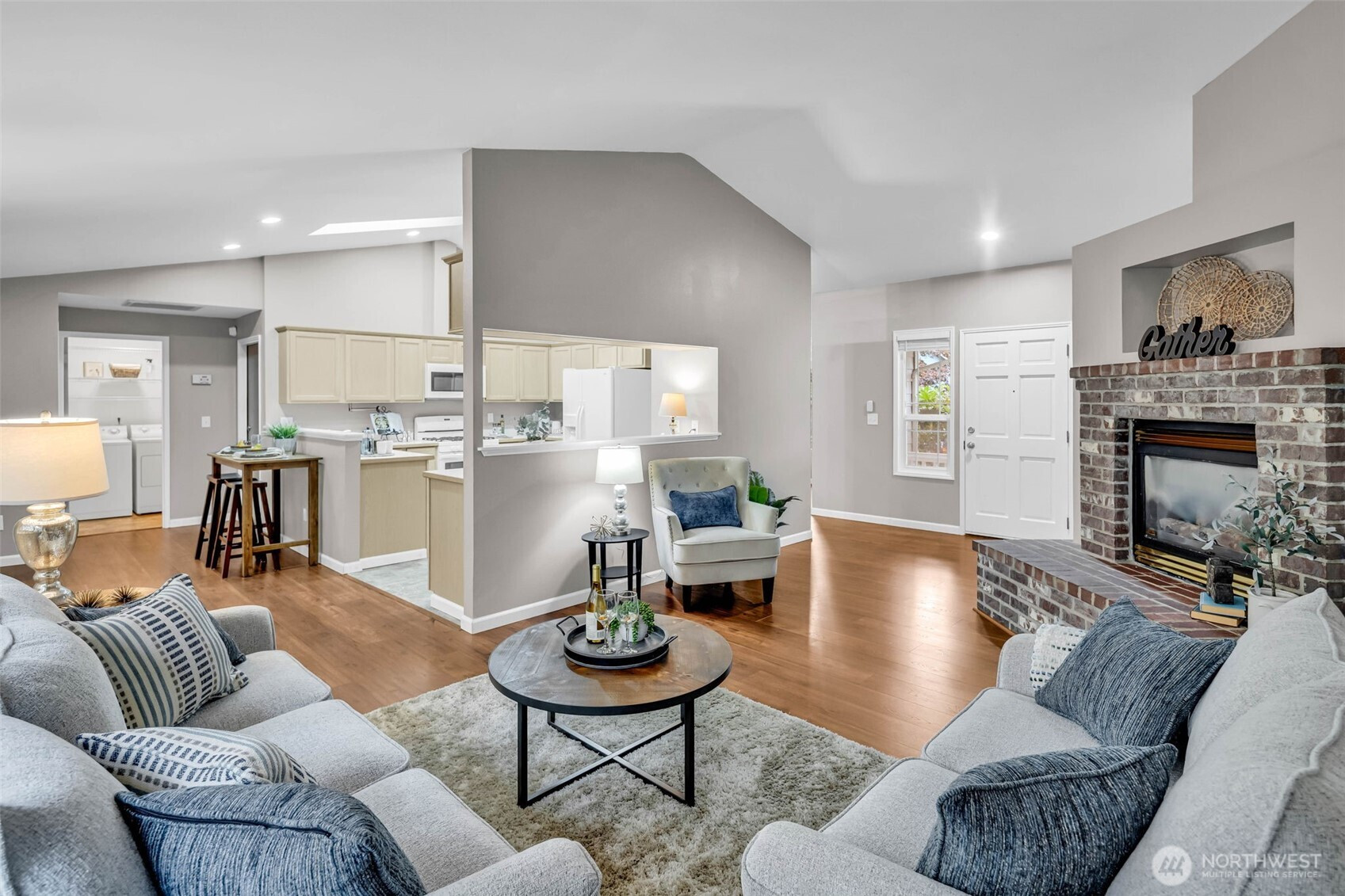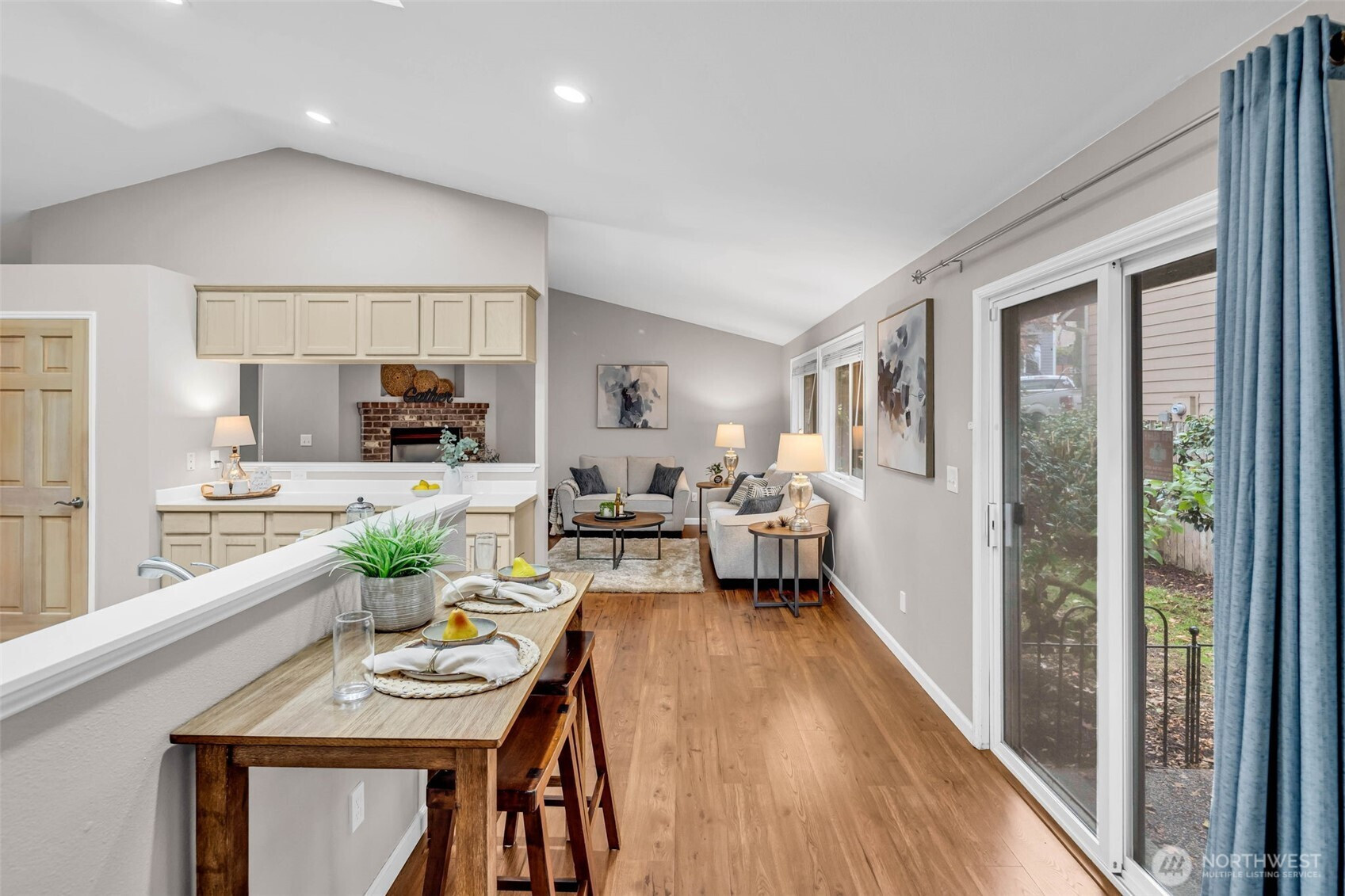 Wonderful 3 bed/2 bath single level home in the heart of desirable Chestnut Trails community! This quintessential corner lot home on tree-lined street offers warm & inviting living room with gas fireplace, separate dining room, & eat-in open kitchen with vaulted ceilings, spacious countertops, pantry & ample storage. Primary bedroom features attached 5-pc bath, walk-in-closet & slider to backyard. 2 add'l bedrooms, linen storage & full bath are located on the opposite side of the house for privacy. Fully-fenced yard with garden space, pear & plum trees, Japanese umbrella pine, camellias, lilacs, & more. Attached 2-car garage with storage loft. Northshore schools; approx. 1 mi to shopping at Thrasher's Corner. Several pocket parks nearby.
