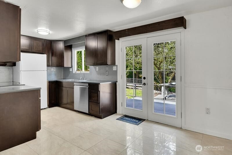RAMBLER in excellent condition has been well maintained and cared for. Location is central between Lake Stevens & Snohomish as well as terrific for commuters and Costco shoppers! Enjoy the ease of stairless living. Spacious living room. Updated easy '3 step' U shaped kitchen. The primary bedroom has an updated 3/4 bath.Two secondary bedrooms and full bath are located on the opposite wing. French doors off dining/kitchen open to deck overlooking beautiful private backyard. Driveway parking on north side of house beyond gate. Circular driveway provides for additional parking. Situated on a deadend quiet street of well maintained homes.
