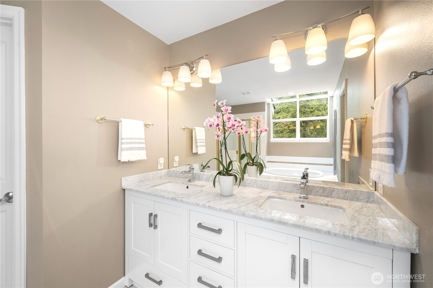 Welcome to this beautiful home in Mill Creek Meadows perched on a quiet cul-de-sac. The primary suite offers a walk-in closet and ensuite bath. Shower on main floor. Open-concept living area. A cozy family room with gas fireplace. New Carpet. Kitchen fully remodeled and premium upgrades include-quartz countertop and backsplash; Samsung dishwasher and induction range with double oven; farmhouse sink; LED lightings; waterproof wood-based laminate floor; a ton of counter space and cabinet space. Utility room with a soaking stainless sink. Fully fenced backyard. Garden space and fruit trees. Newer roof and gutters. New main floor water pipes. A/C. Garage with extra storage space. Highly rated schools. Full list of upgrades available upon request. Refrigerator in the garage stays with home. Minutes to Mill Creek Town Center. Pre-inspected and move-in ready.