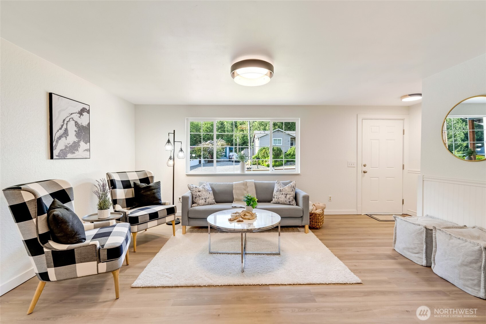 Welcome to this beautifully updated 1-story home near Lake Goodwin, offering the perfect blend of comfort and modern style. Inside, you’ll find new luxury vinyl plank flooring, fresh interior and exterior paint, and a stunning new kitchen with new cabinets, quartz counter top, under mount tub sink, and stainless steel appliances. With 3 bedrooms plus an office or 4th bedroom and 3 baths, there's space for everyone. All bathrooms have been thoughtfully renovated with today's finishes. Large Entertainment wrap around deck is perfect. Situated on a level lot with ample room for RV or boat parking, this home combines convenience & lifestyle. Enjoy peaceful living just minutes from the lake, with all the upgrades already done—move in and enjoy!