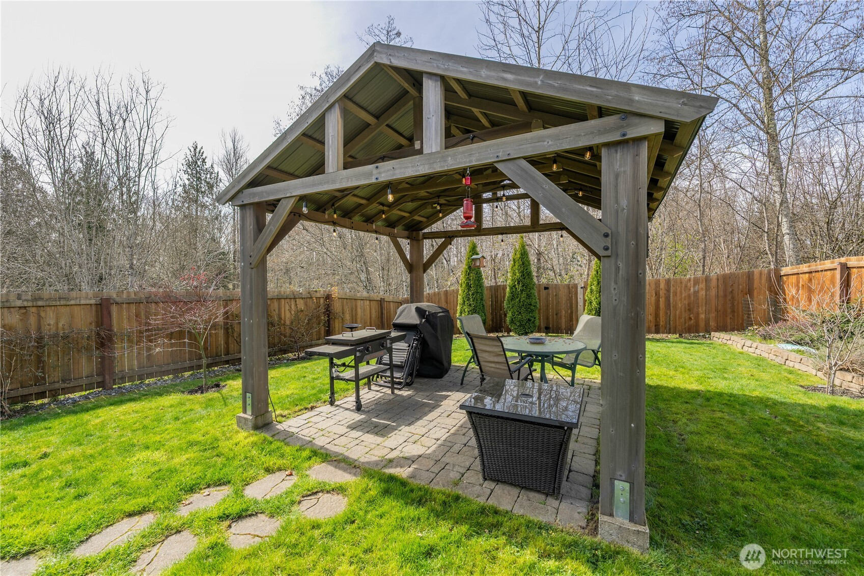 Charming Craftsman Retreat in Sultan's Daisy Landing Community! Built in 2019, this beautifully maintained single-story Craftsman home offers the perfect blend of modern comfort and Pacific Northwest charm. Nestled at the end of a quiet dead-end street, this 3-bedroom, 1.75-bath gem spans 1,319 sq ft of thoughtfully designed living space — all on one level for easy, convenient living. Step inside to discover an open, light-filled layout featuring luxury laminate and vinyl flooring, cozy wall-to-wall carpet in the bedrooms, and a kitchen with eating space perfect for gathering. The primary suite includes a private bath and walk-in closet, while double-pane windows and a high-efficiency forced air system keep you comfortable year-round. Exterior features include a fully fenced yard with patio, gazebo, garden space, and fruit trees. Attached 2-car garage provides parking and storage. HOA includes playground and common areas. Property offers convenient access to the US-2 corridor, shopping, dining, and local amenities.