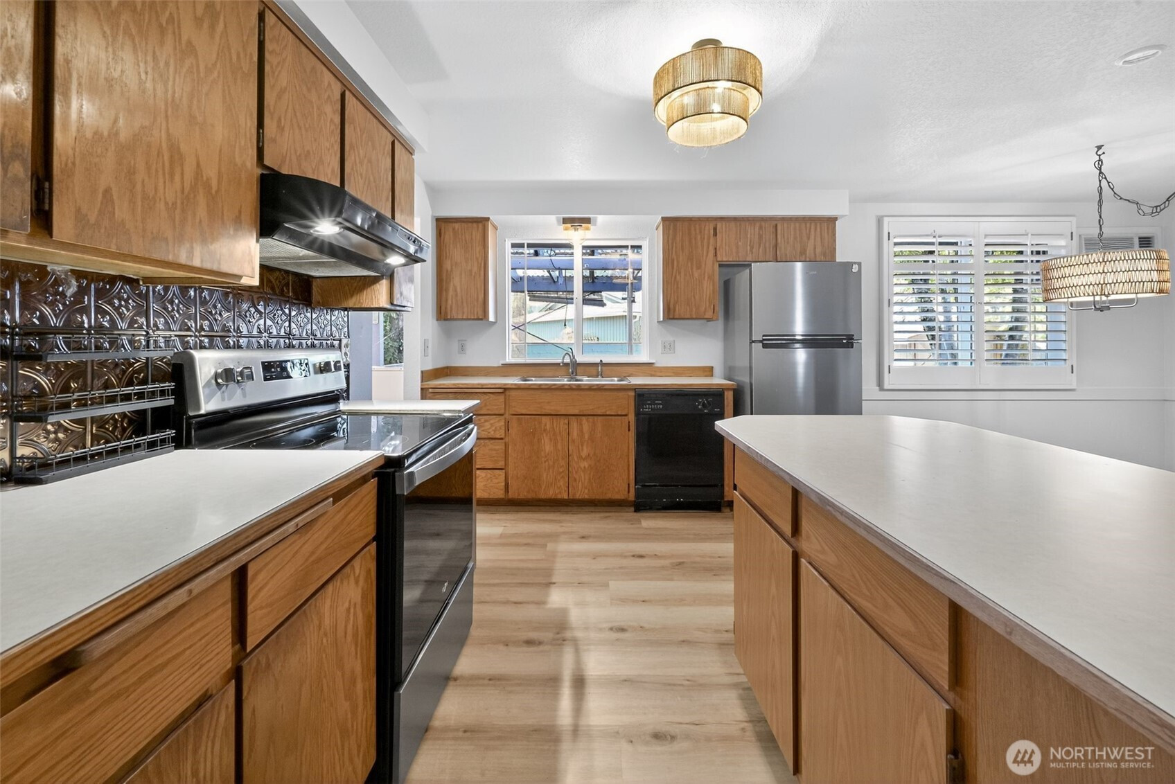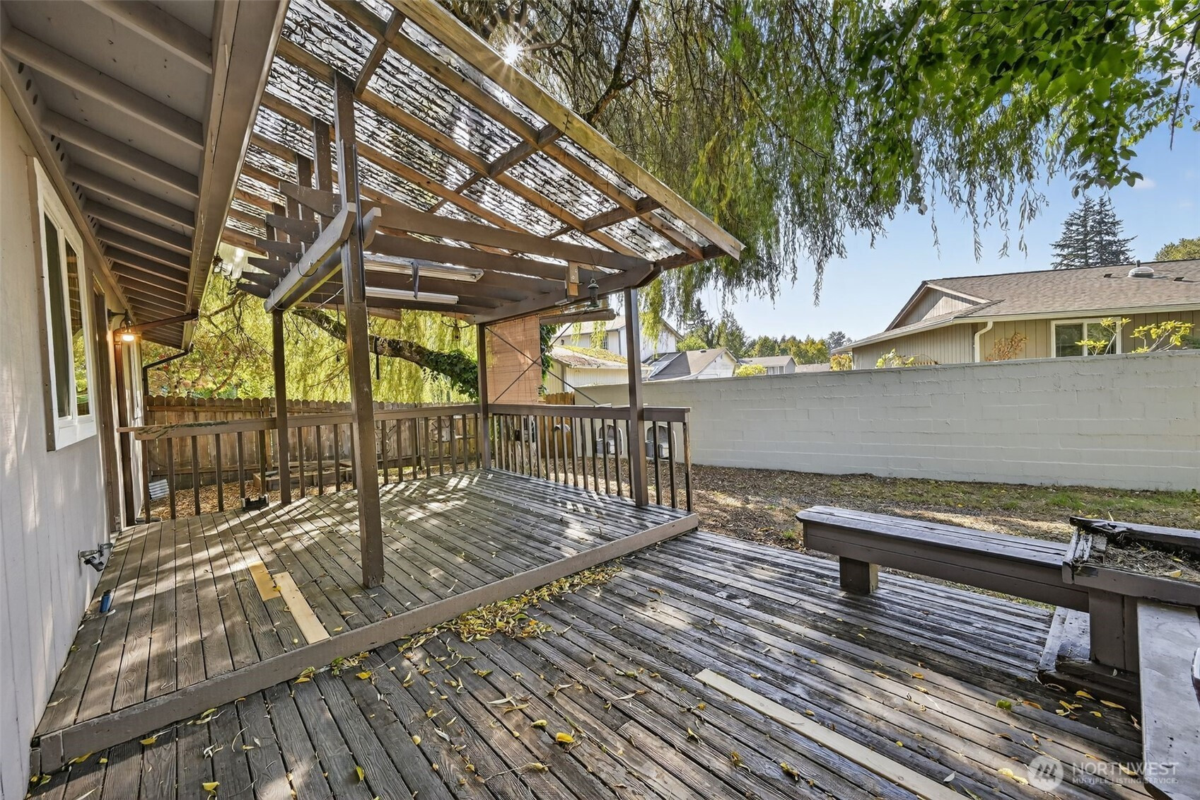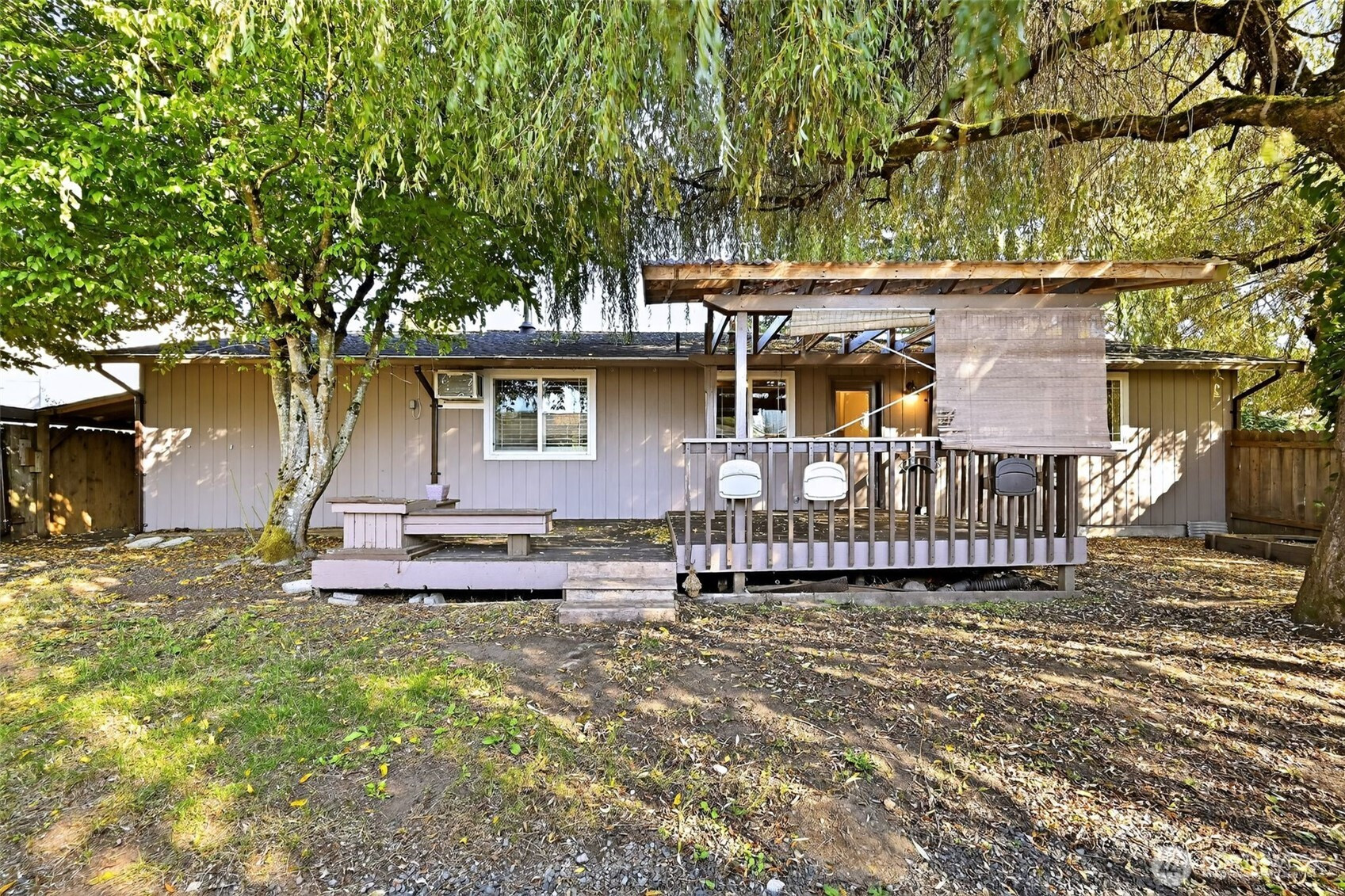 Fantastic opportunity to own lovely & light filled rambler in the heart of Lake Stevens! Featuring a comfortable single level layout, this charming 3 bed, 1.5 bath home on sizable corner lot will leave you wanting for nothing! Living room offers newer vinyl windows w/louvered shutters, energy efficient pellet stove, new LVP flooring + interior paint thru-out! Kitchen features plenty of cabinet space, ornamental backsplash, & updated light fixtures. Primary suite boasts private half bath. Fully fenced backyard w/large covered deck is perfect for outdoor gatherings. Nearby a plethora of amenities; Frontier Village Shopping, restaurants, schools, parks, Davies beach & more! Welcome to your slice of paradise w/no HOA and New Roof as of 2025!