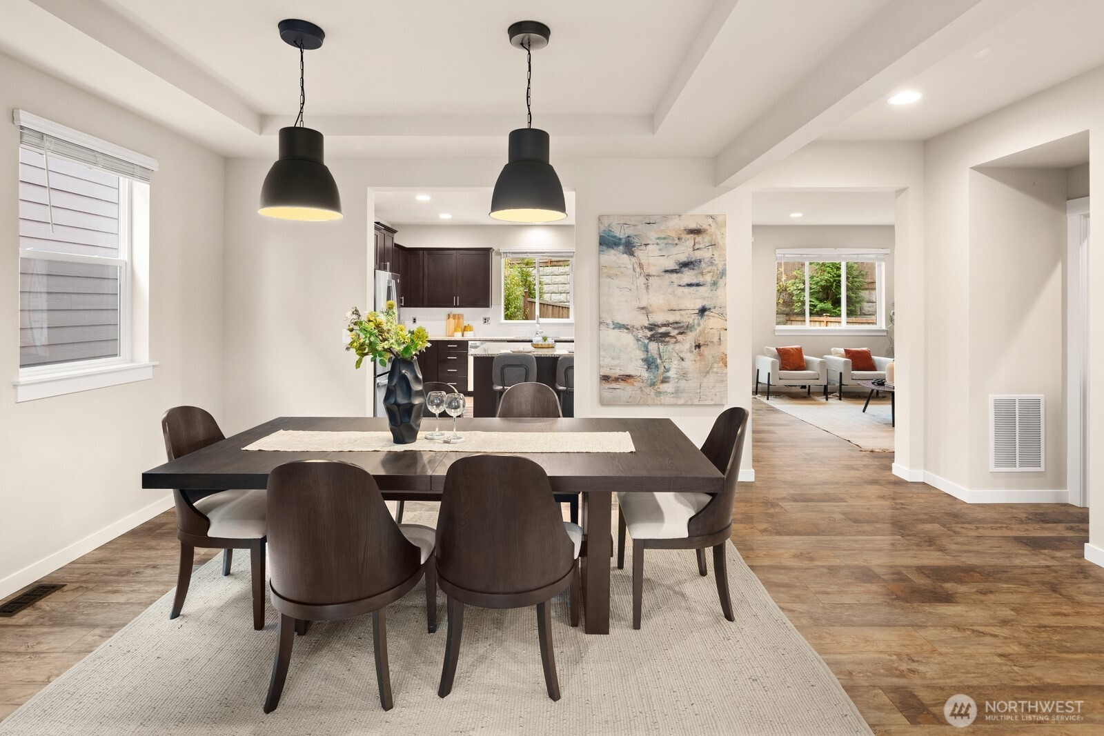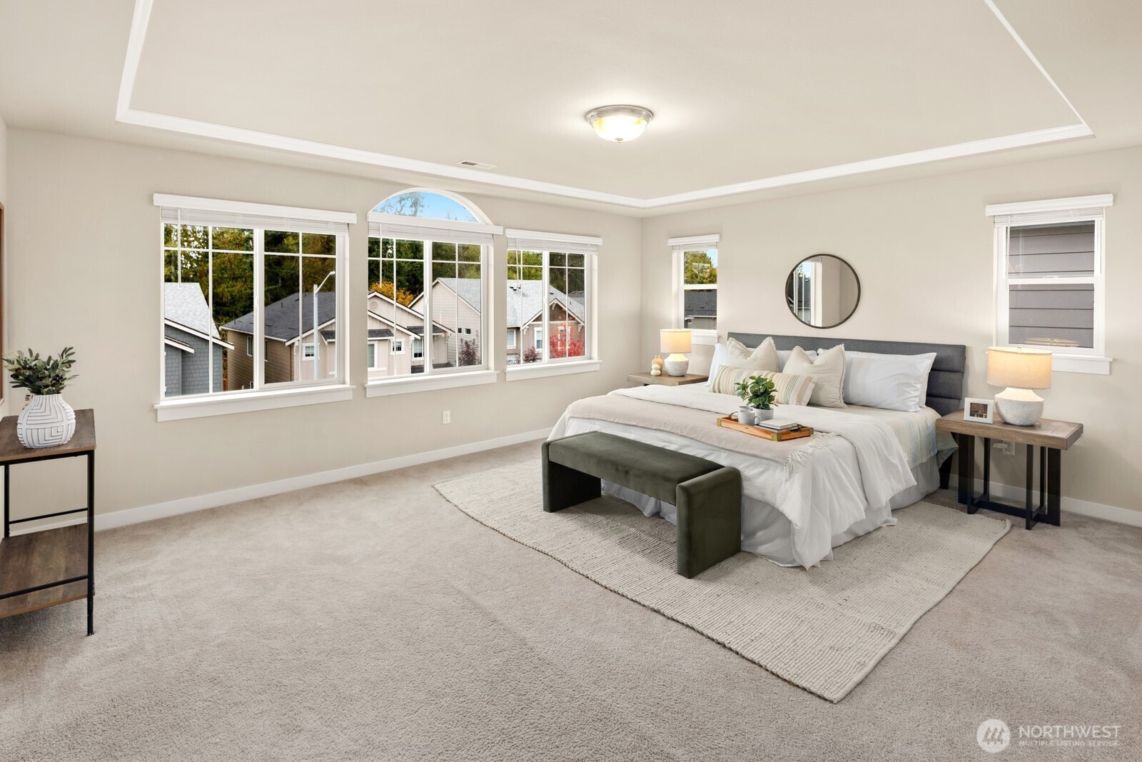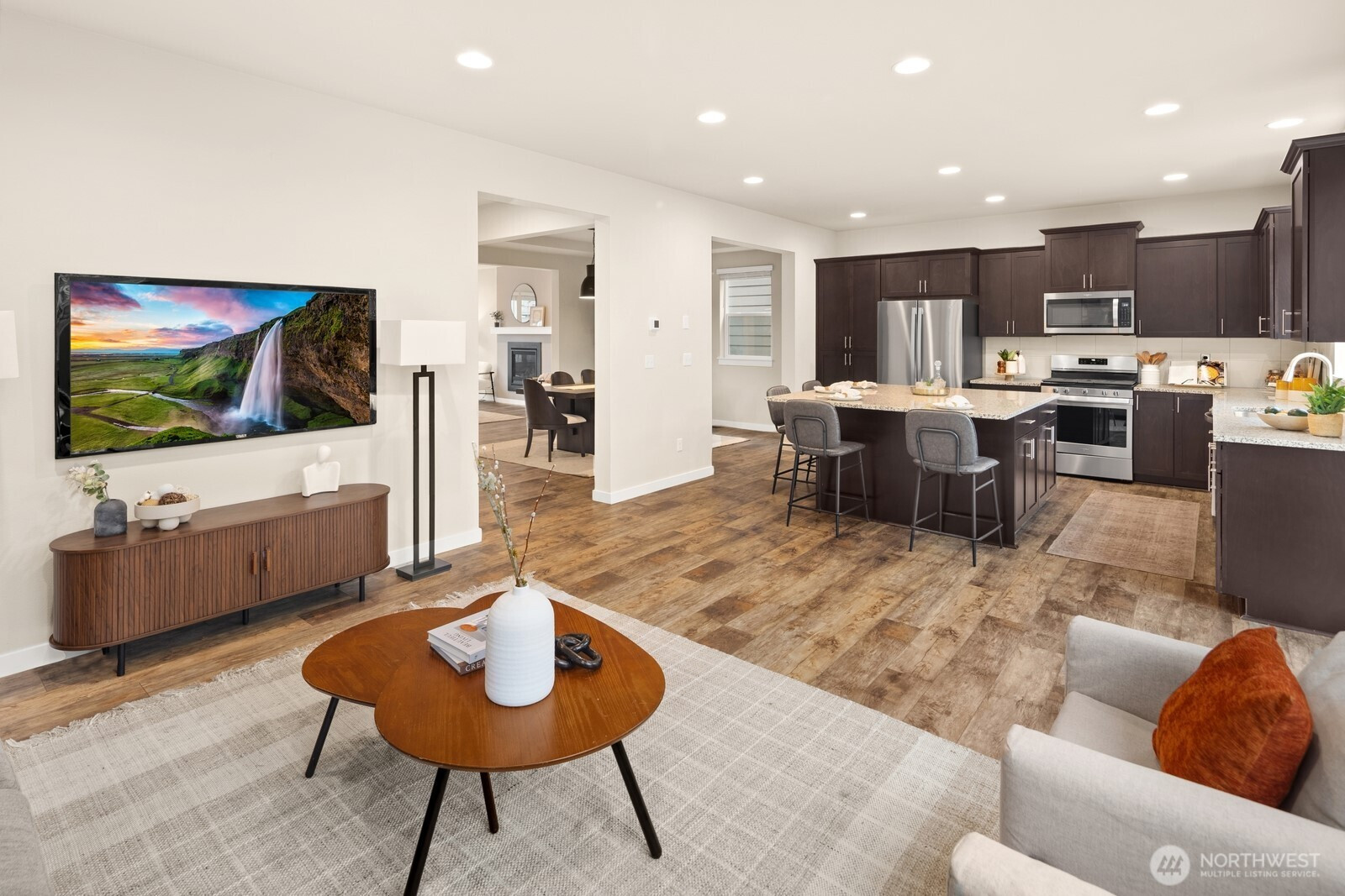 Modern west-facing 2020 DR Horton home in the premier Timbers Community of Lake Stevens. 3,421sq ft. Features 4 bedrooms, 3.5 bathrooms +den. Private, fully fenced backyard and attached 2 car garage. Brand new s/s fridge & washer/dryer. Enjoy 9-foot ceilings and an open, airy floor plan connecting the kitchen, great room, dining, and family areas. Backyard patio attached to kitchen. The expansive primary suite features a luxurious 5-piece ensuite with a soaking tub beneath a chic chandelier and custom closet organizers. The lower level offers a media room, ¾ bath, and bedroom—perfect for multigenerational living or potential rental income. Large neighborhood park. Top rated Lake Stevens SD. Pre-inspected and move-in ready—Welcome Home!