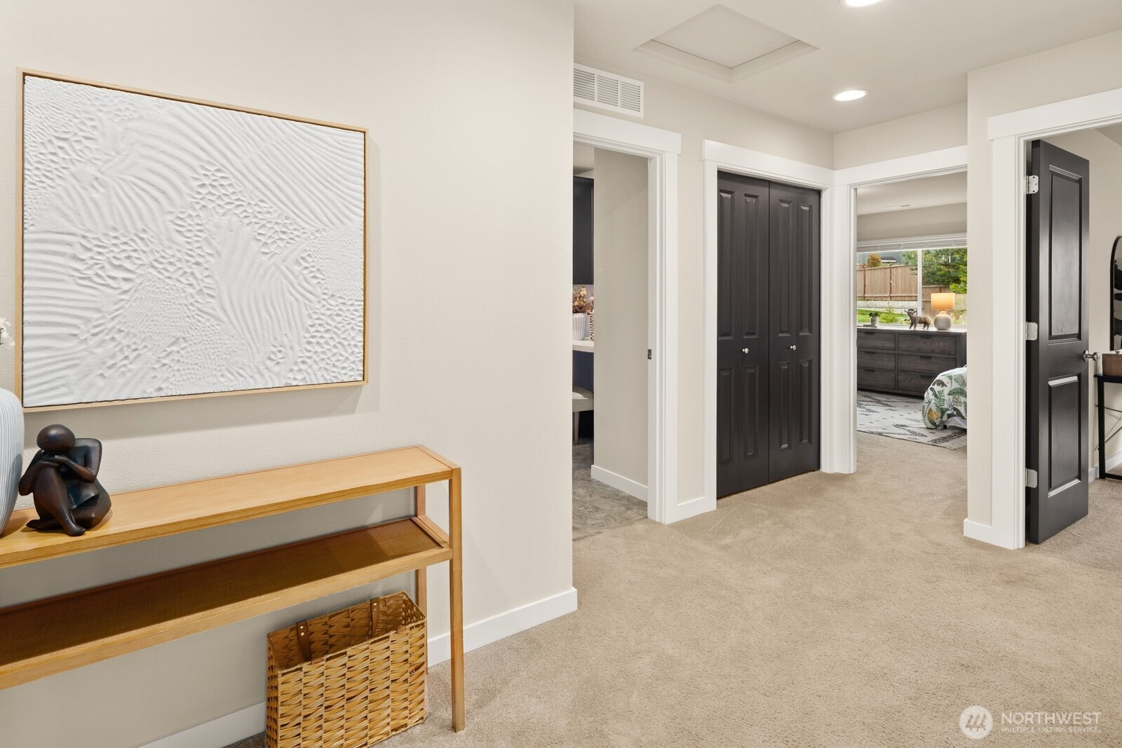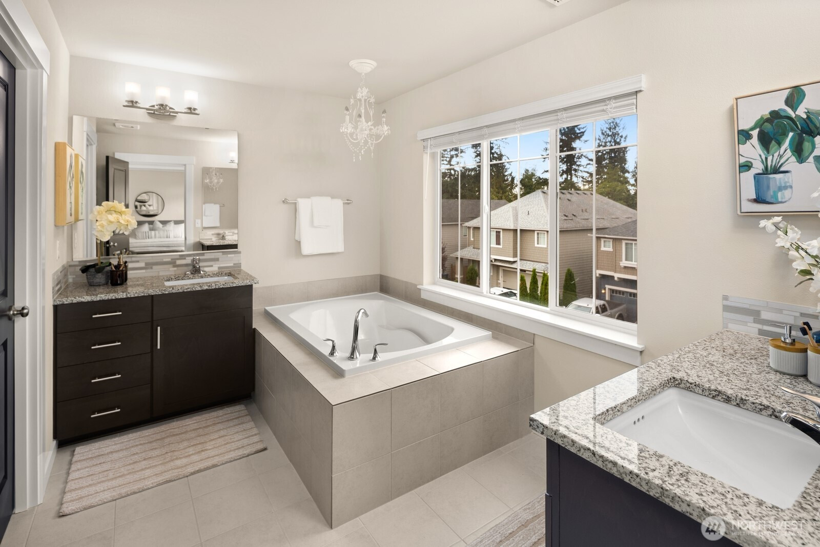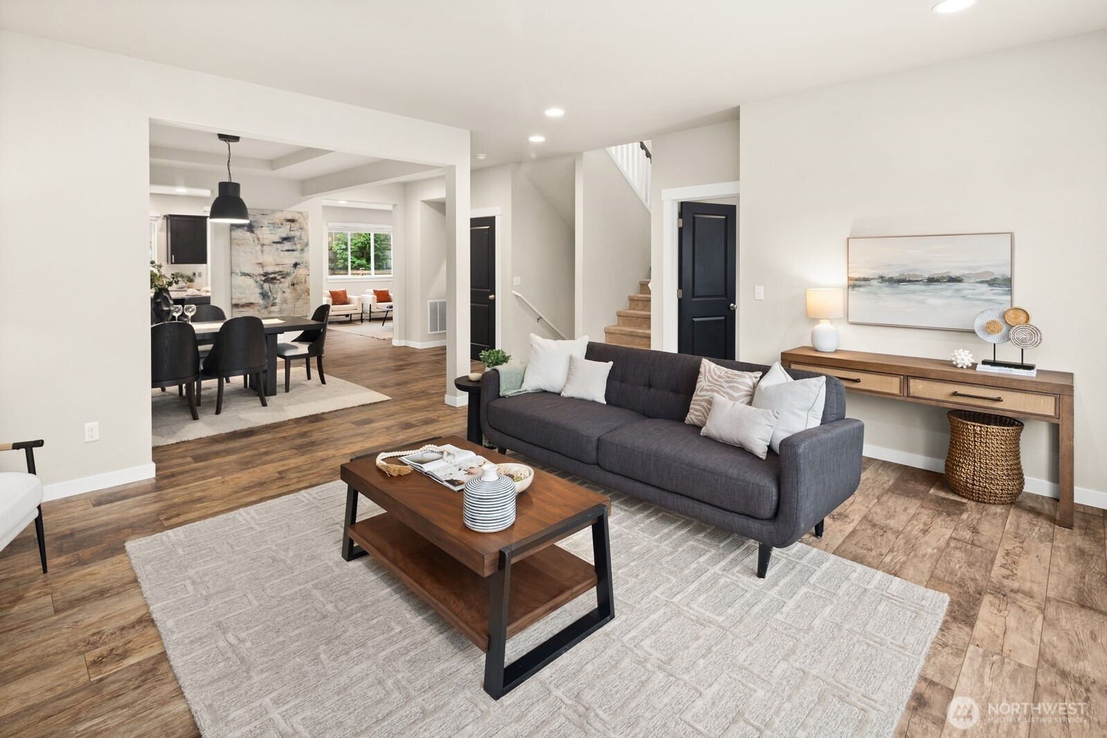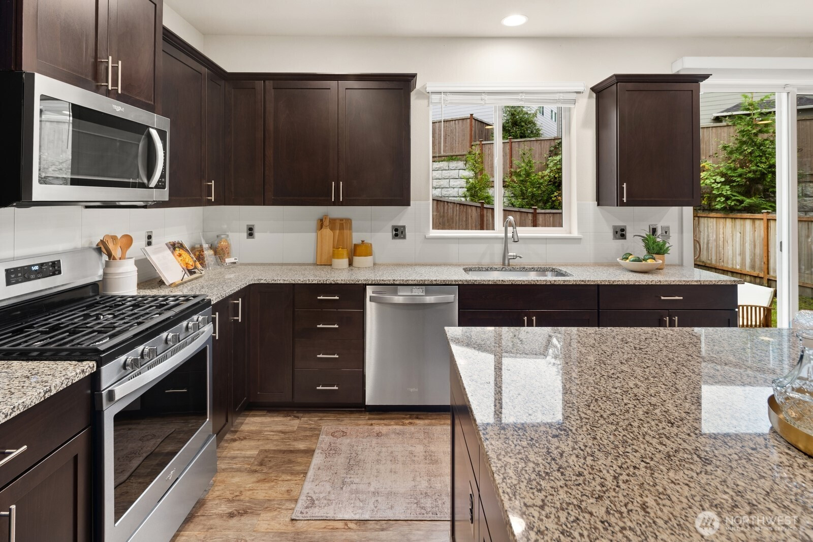 Modern west-facing 2020 DR Horton home in the premier Timbers Community of Lake Stevens. 3,421sq ft. Features 4 bedrooms, 3.5 bathrooms +den. Private, fully fenced backyard and attached 2 car garage. Brand new s/s fridge & washer/dryer. Enjoy 9-foot ceilings and an open, airy floor plan connecting the kitchen, great room, dining, and family areas. Backyard patio attached to kitchen. The expansive primary suite features a luxurious 5-piece ensuite with a soaking tub beneath a chic chandelier and custom closet organizers. The lower level offers a media room, ¾ bath, and bedroom—perfect for multigenerational living or potential rental income. Large neighborhood park. Top rated Lake Stevens SD. Pre-inspected and move-in ready—Welcome Home!